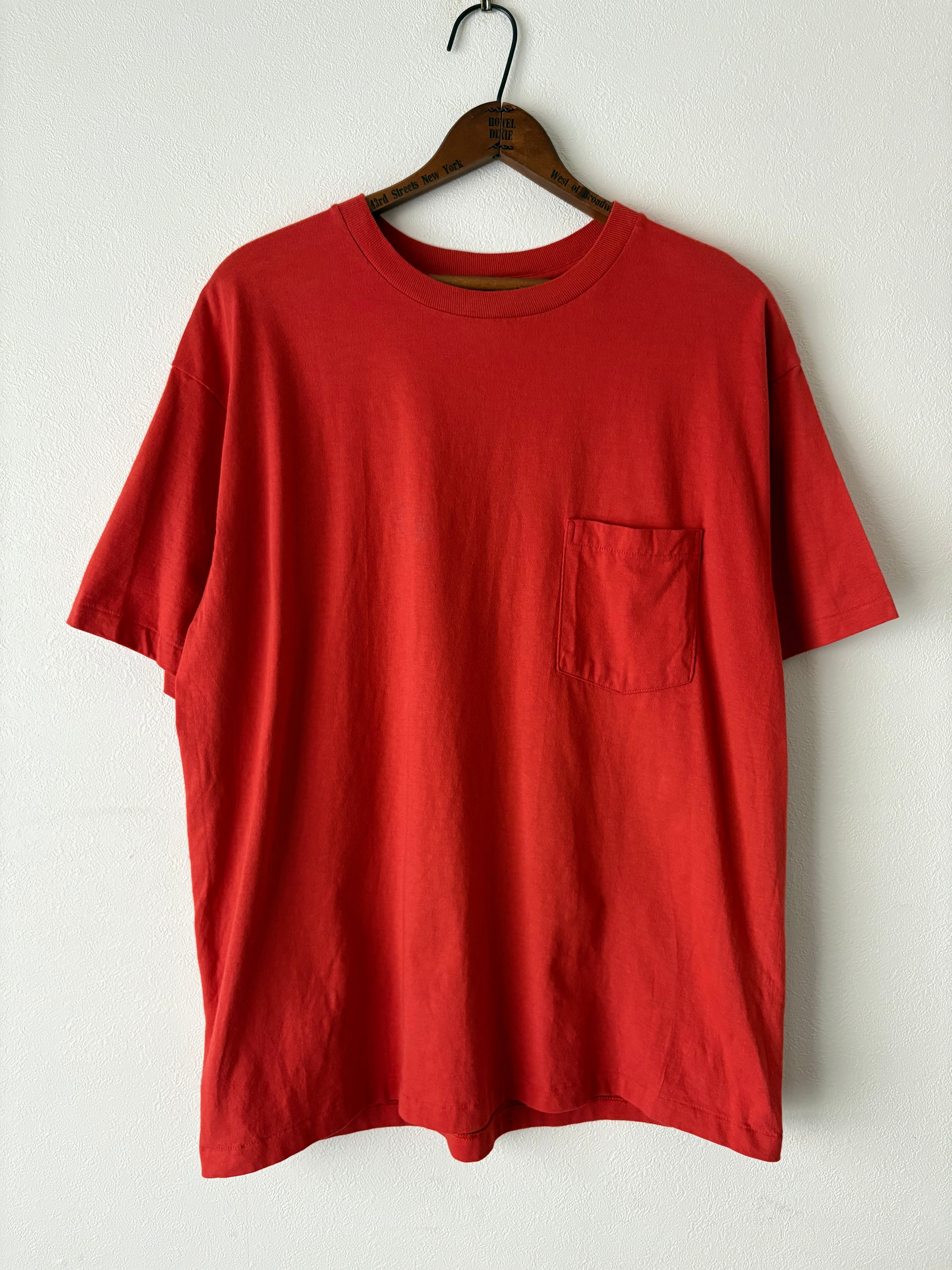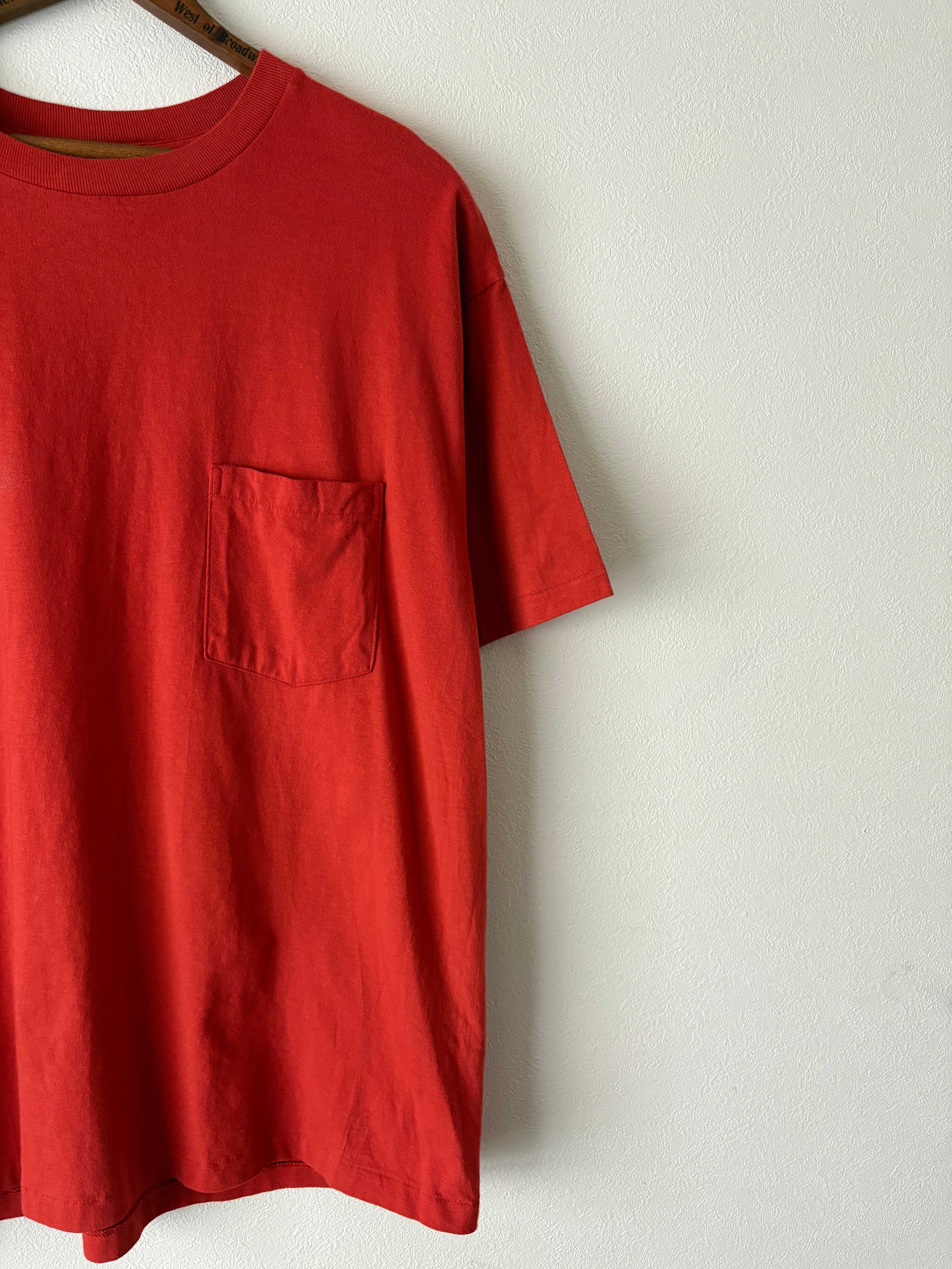 なかなかなさそうな柿色のボディ。ボックスシルエットのベーシックなTシャツです。