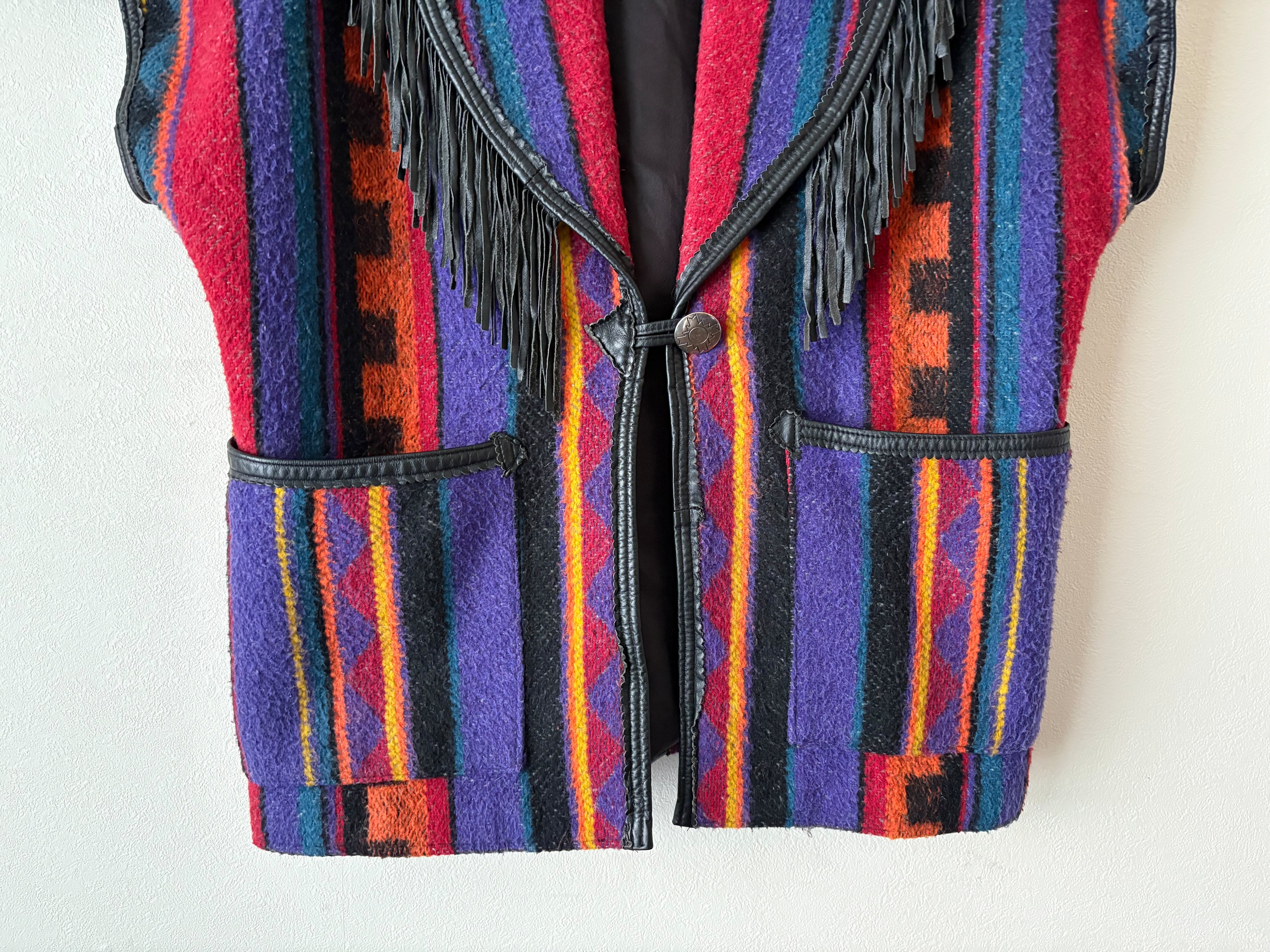 80s PIONEER WEAR レザーパイピング ネイティブ柄 ベスト