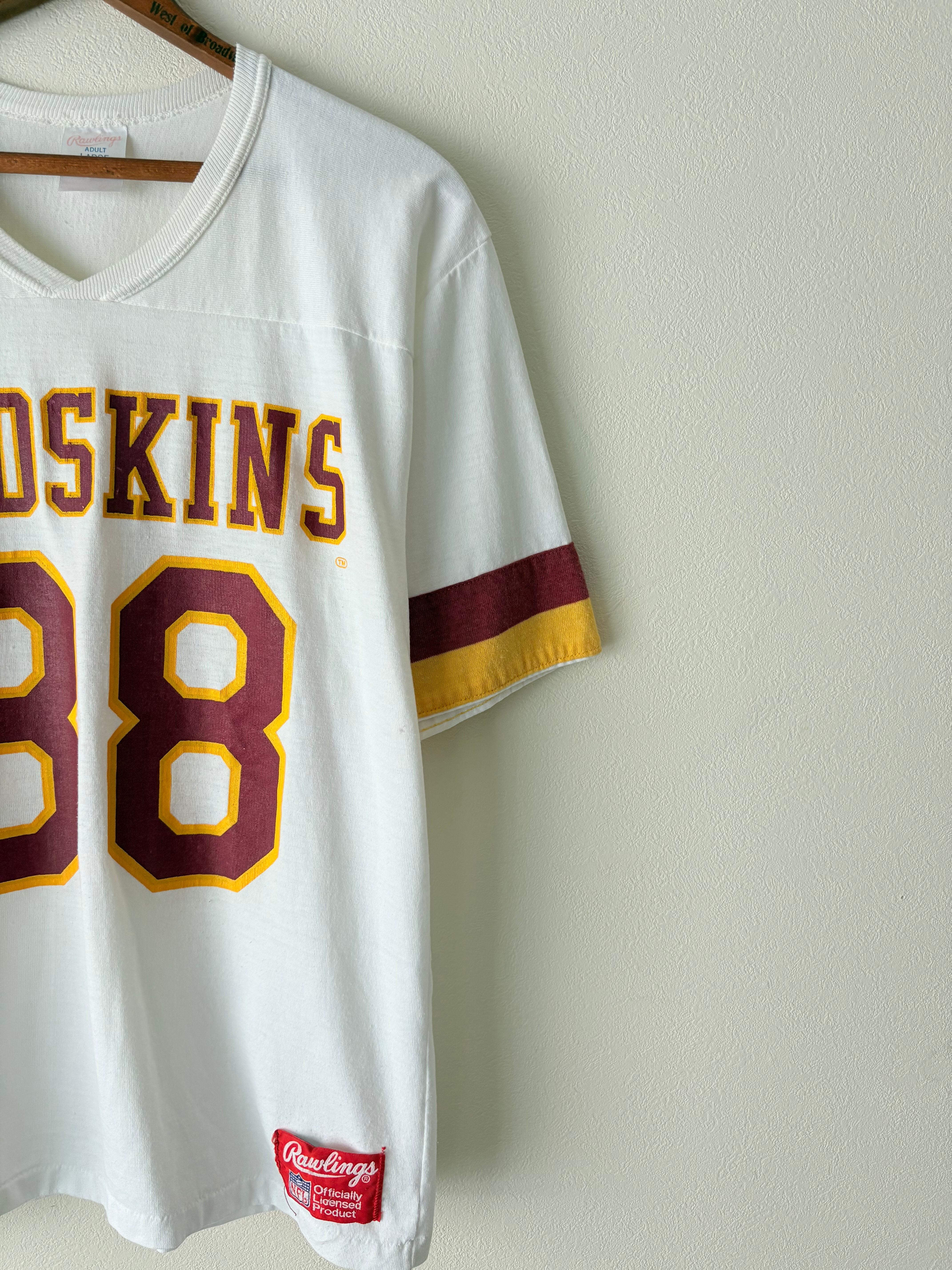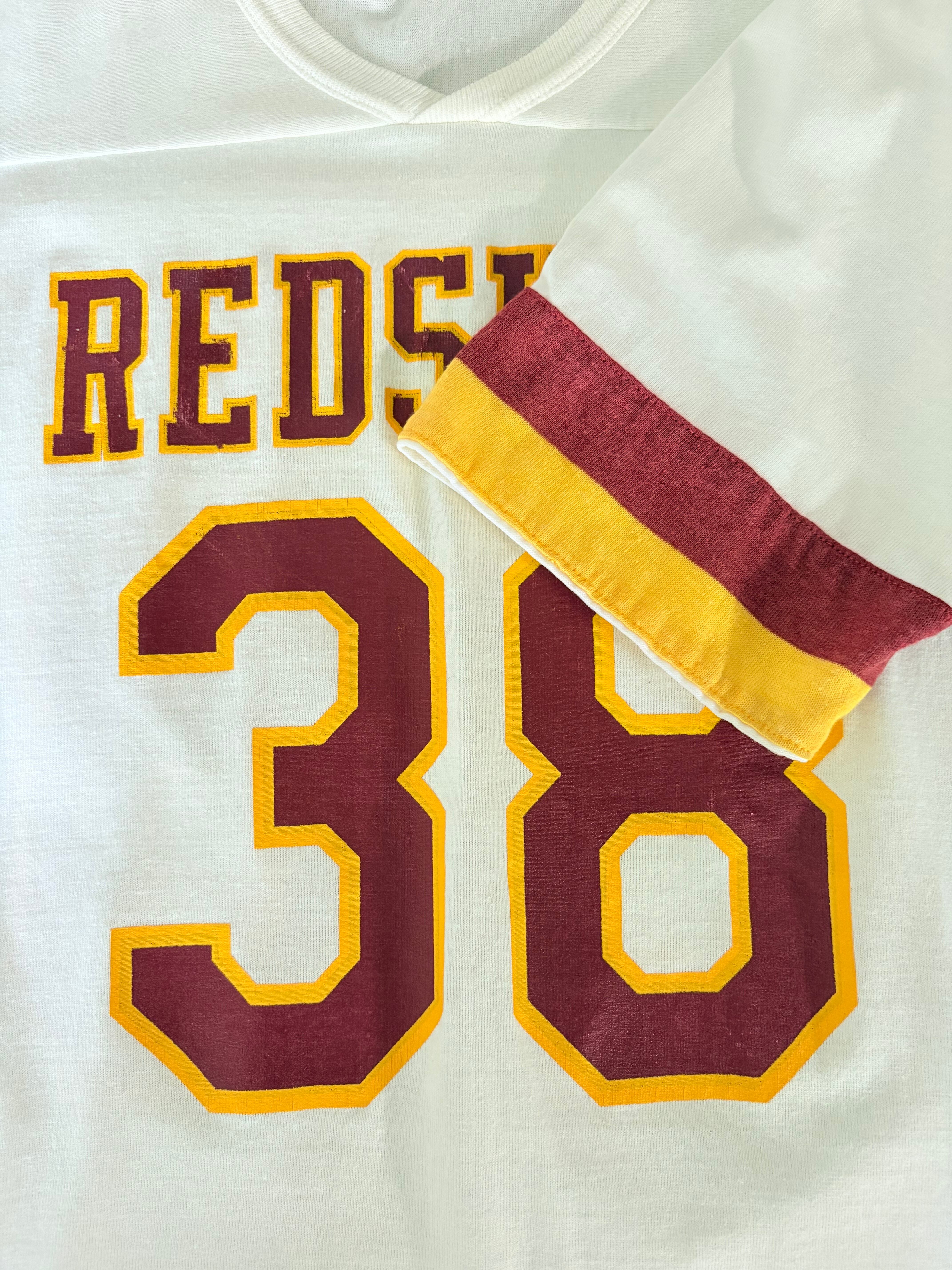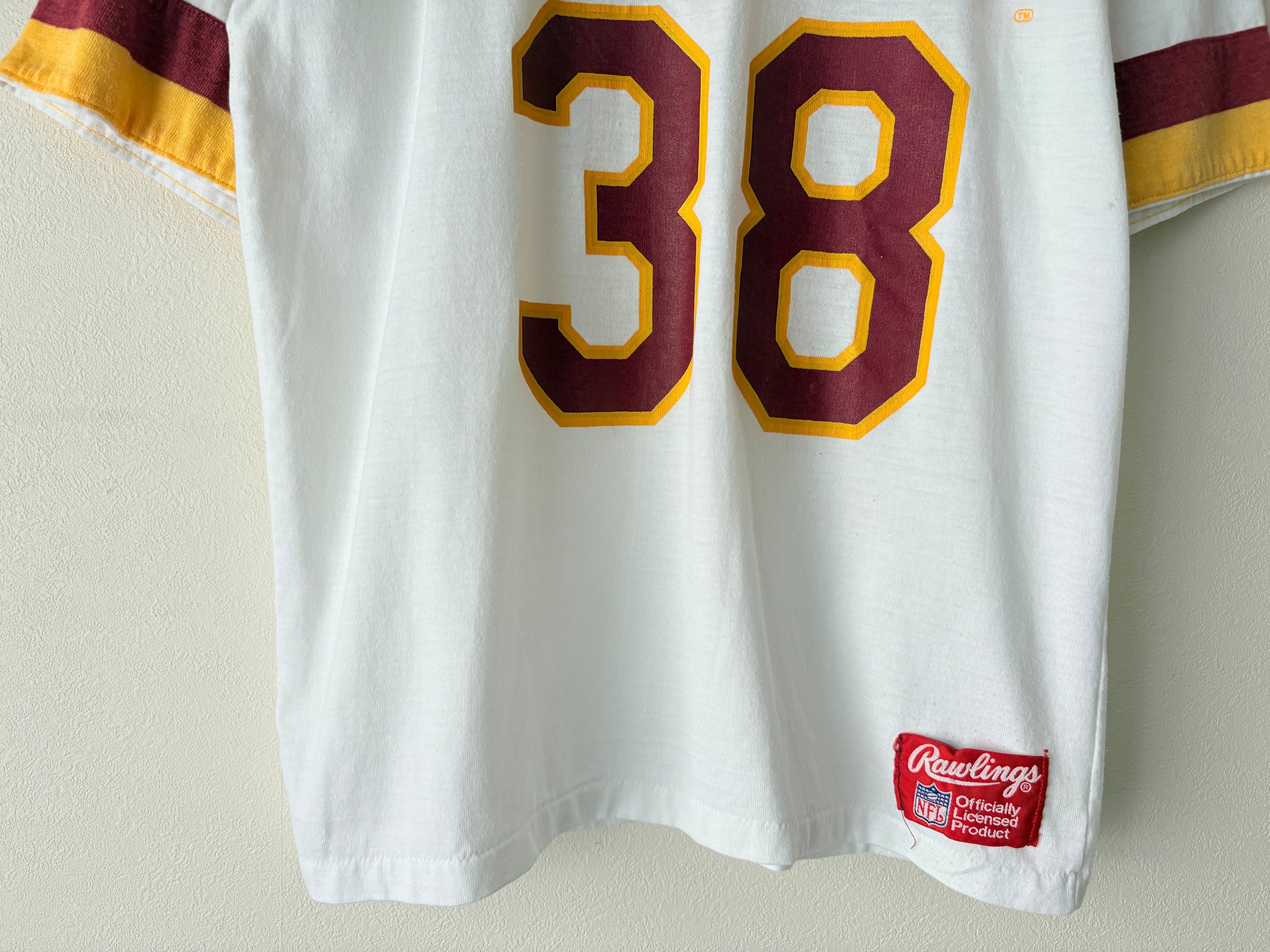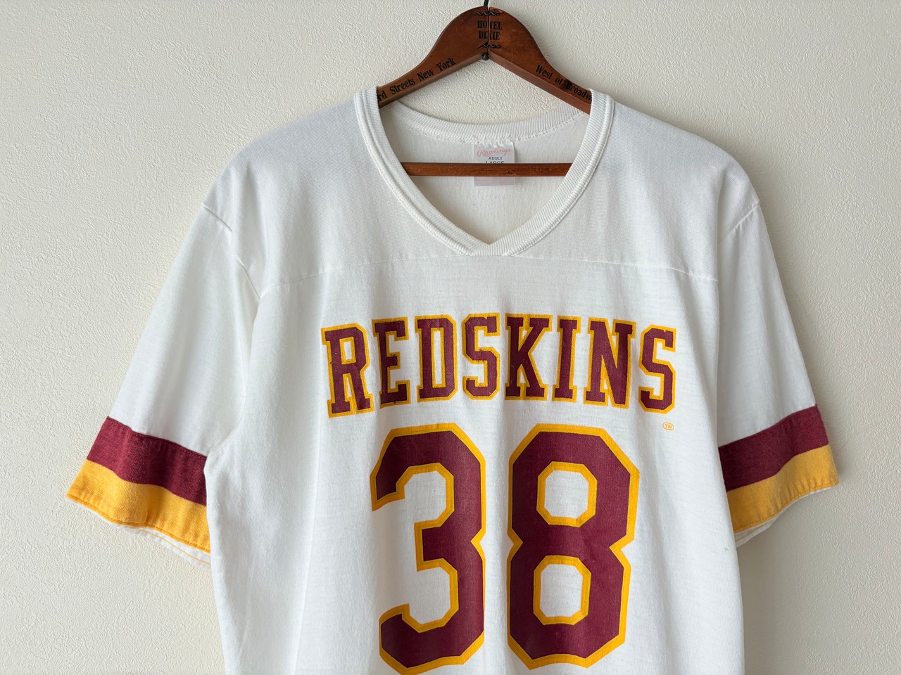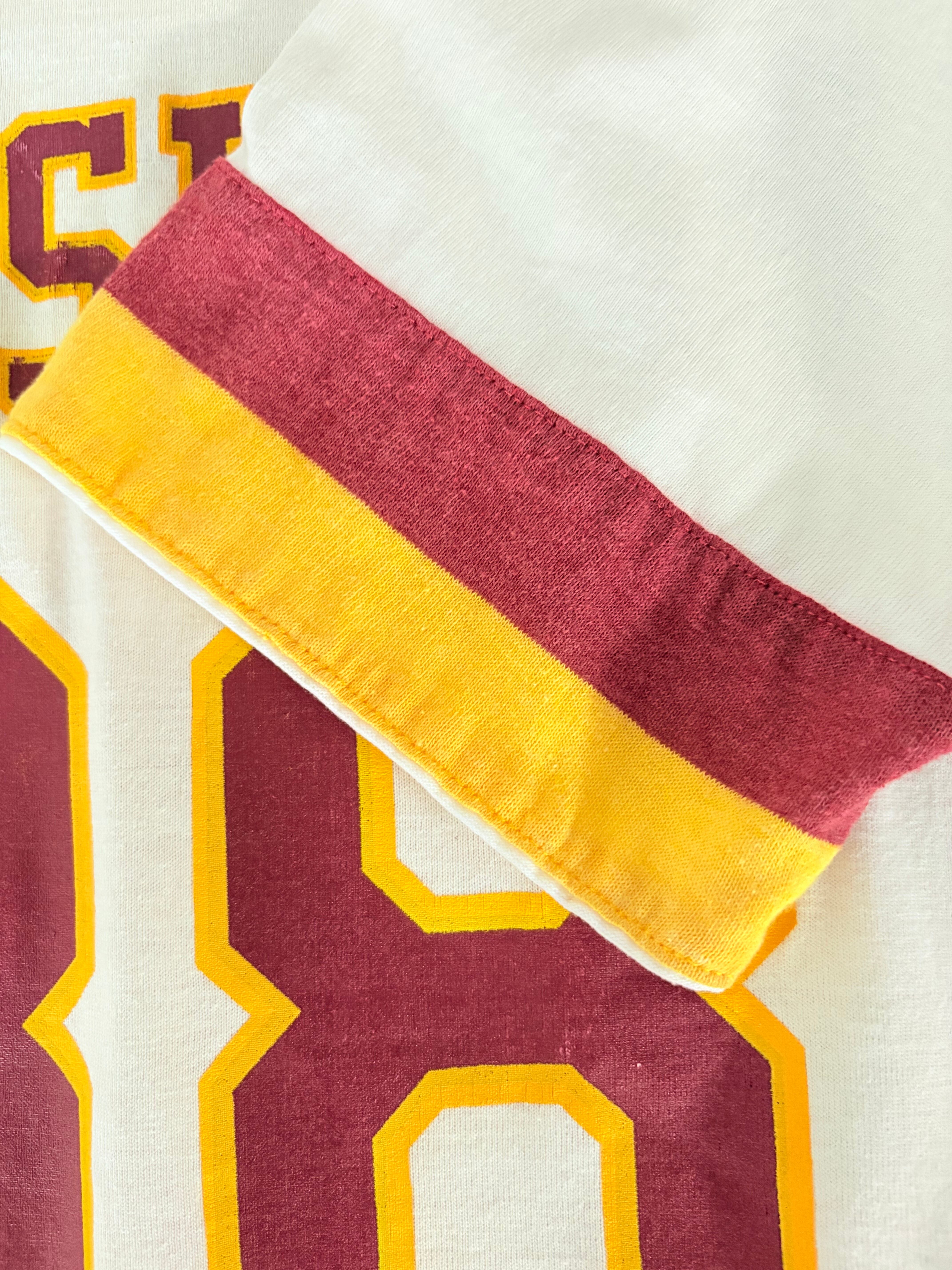 身幅が細すぎないので合わせやすいフットボールTです。袖のラインは後付けで縫われています。