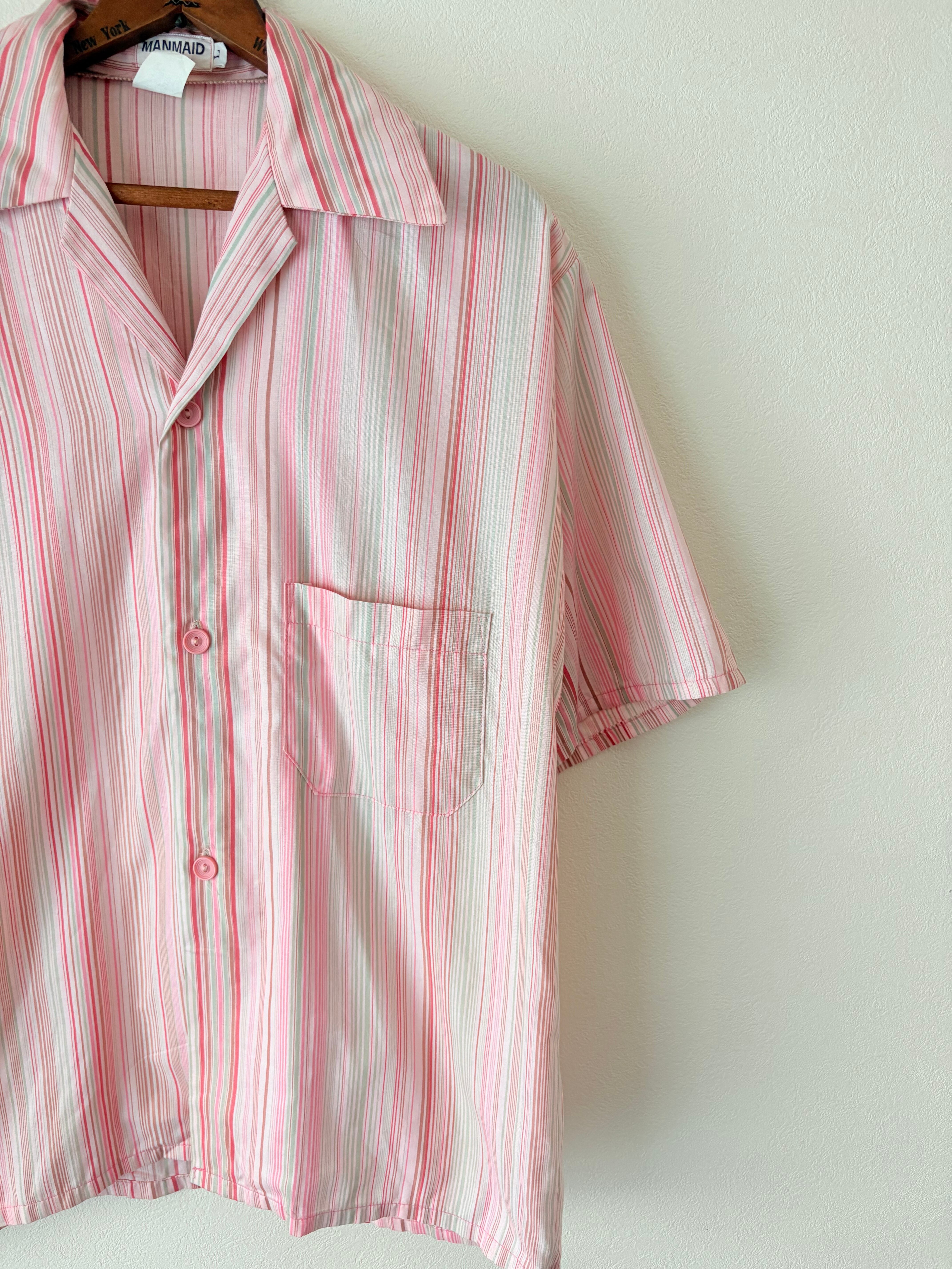 70s オープンカラーストライプS/Sシャツ