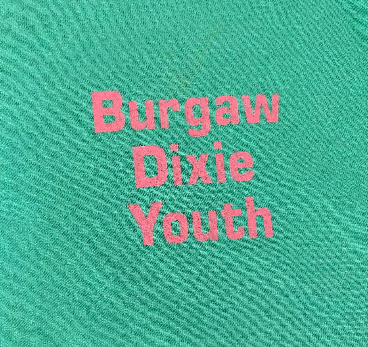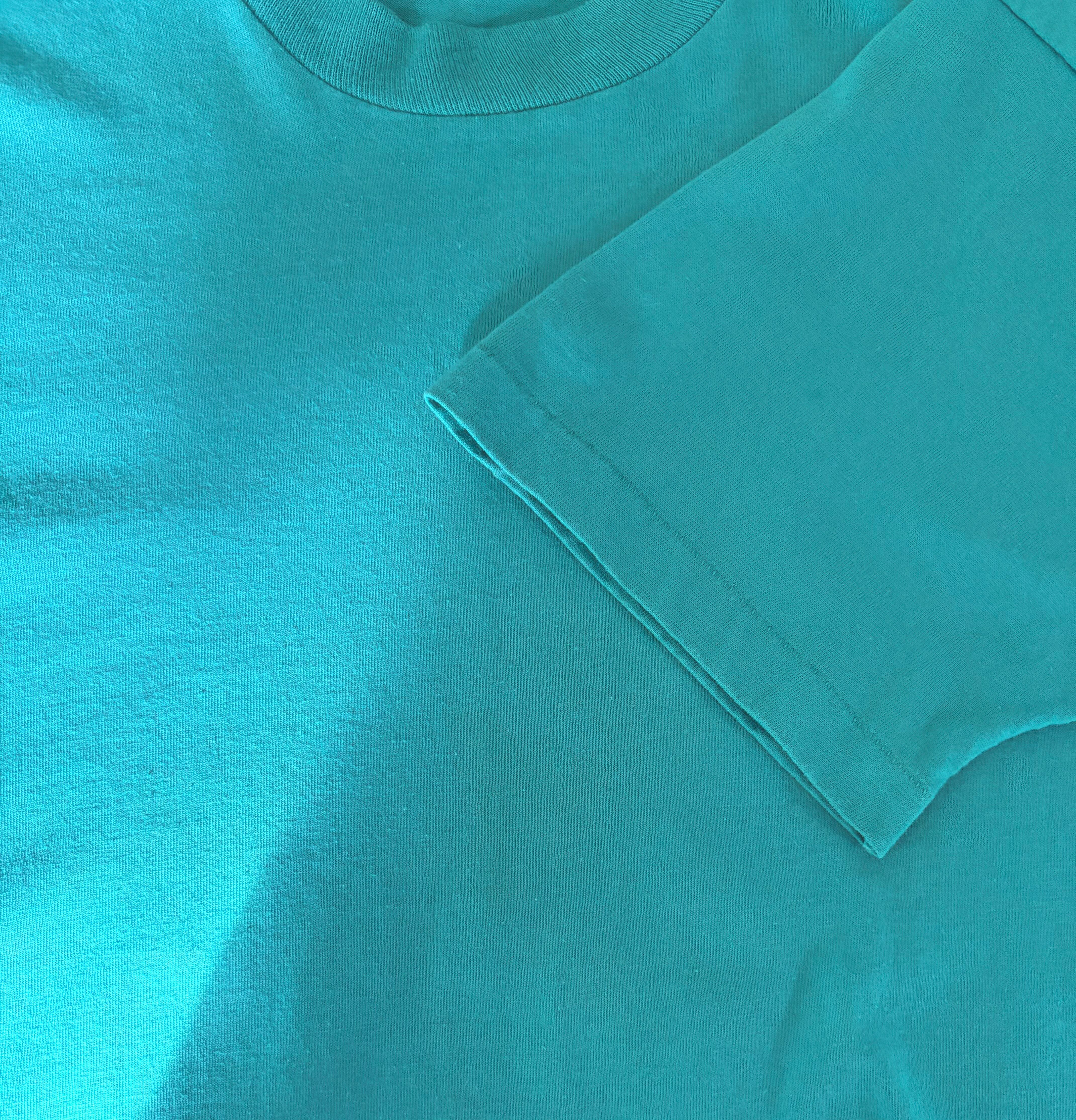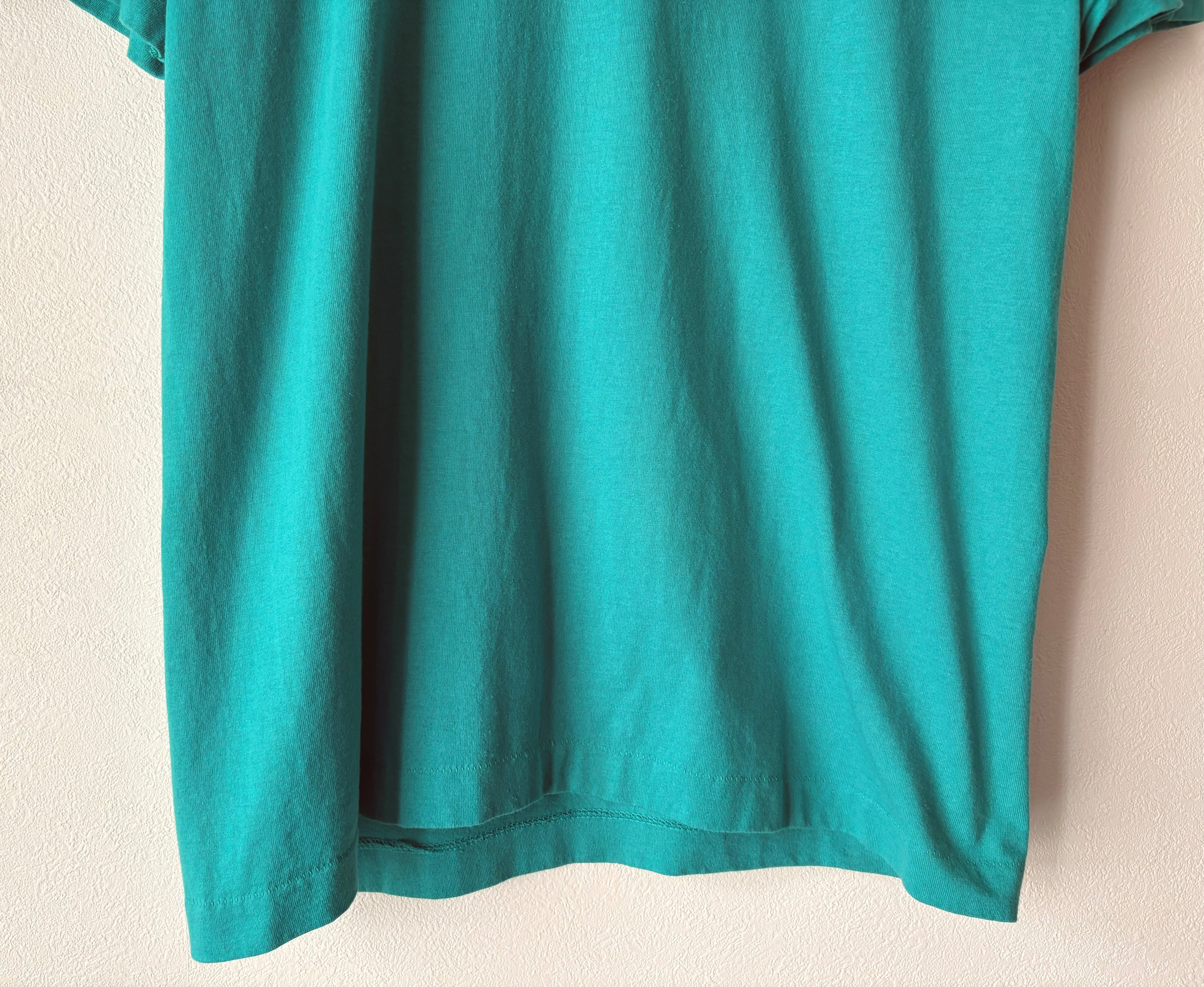 アメリカ南部のリトルリーグ関連のTシャツです。ブルーグリーンのボディにピンクのプリントの色合わせがオシャレです。絵柄も80年代くらいのタッチでプリントのかすれ具合と相まってレトロ感があるかわいいアイテムです。サイズ感もLくらいの合わせやすい大きさです。