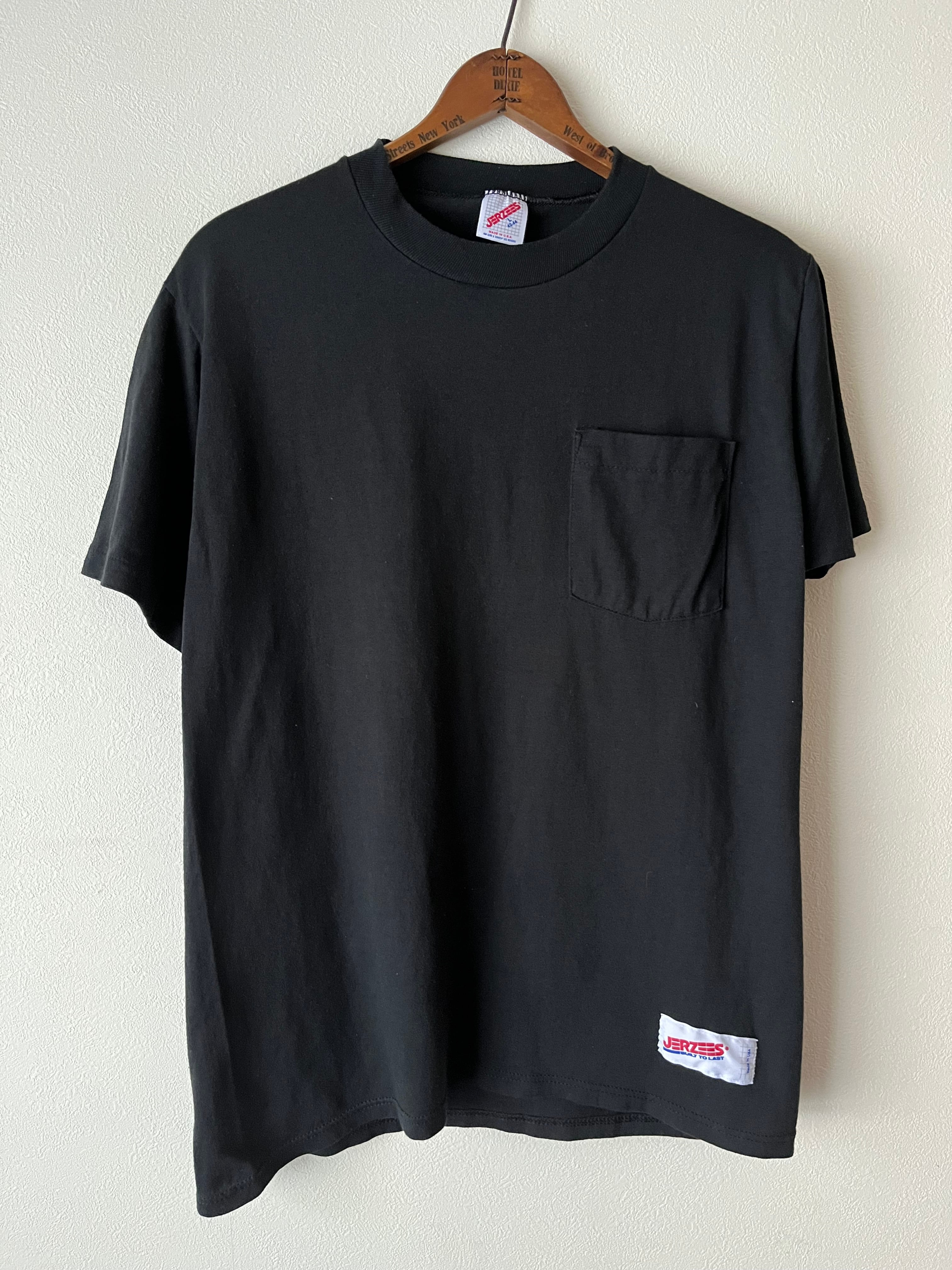 USA製 80s JERZEES 無地 黒ポケットTシャツ ジャージーズ ポケT 古着 アメリカ製