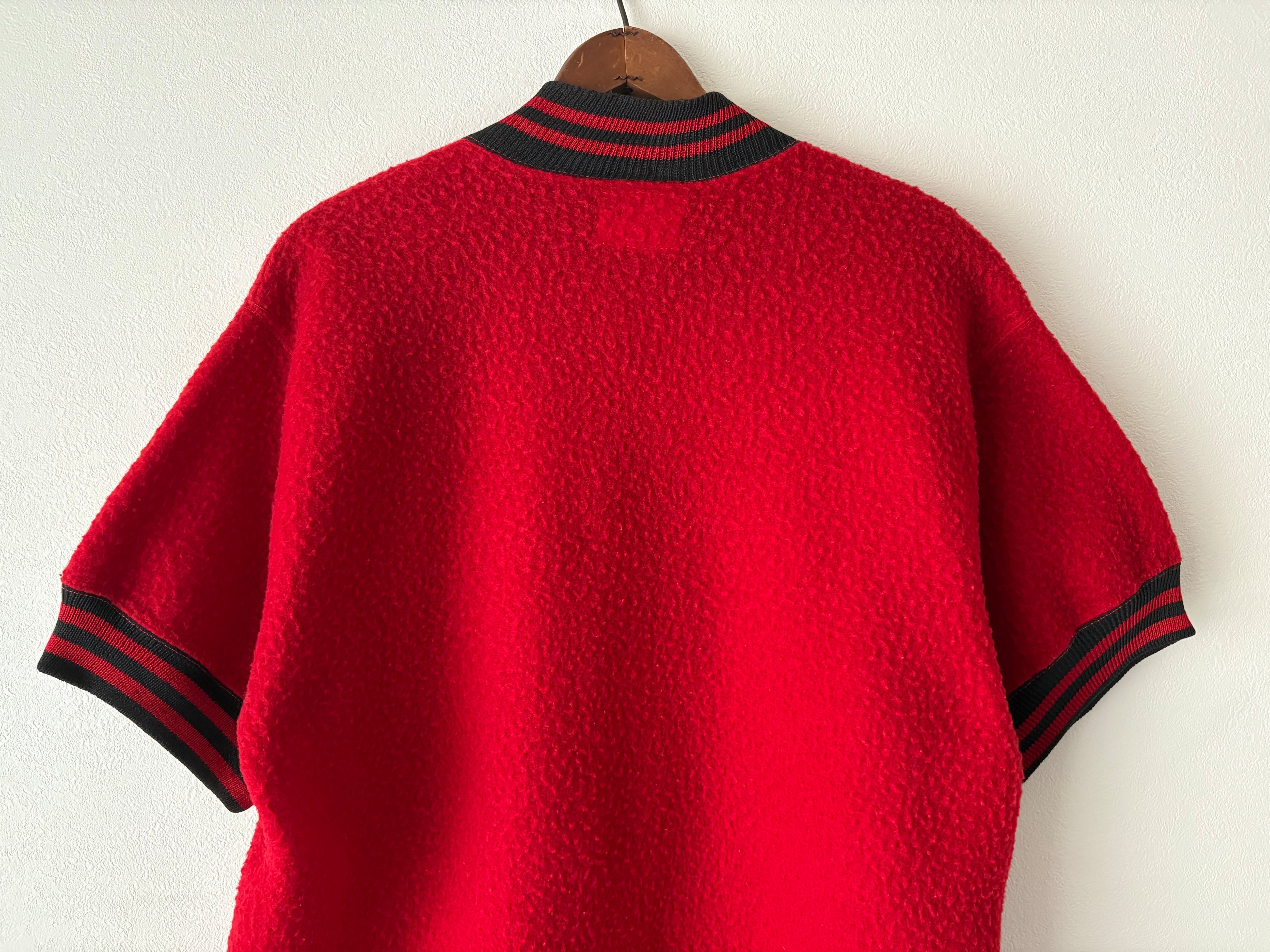 珍しいショートスリーブのスタジャンです。目立ったほつれ等もなく状態は比較的キレイです。裏地はないですが、生地は厚みがあります。半袖Tシャツなどの上から羽織ったり、ロンTとのレイヤードスタイルもオススメです。アメカジスタイルを少し捻ったスタイリングを楽しみたい方に是非。