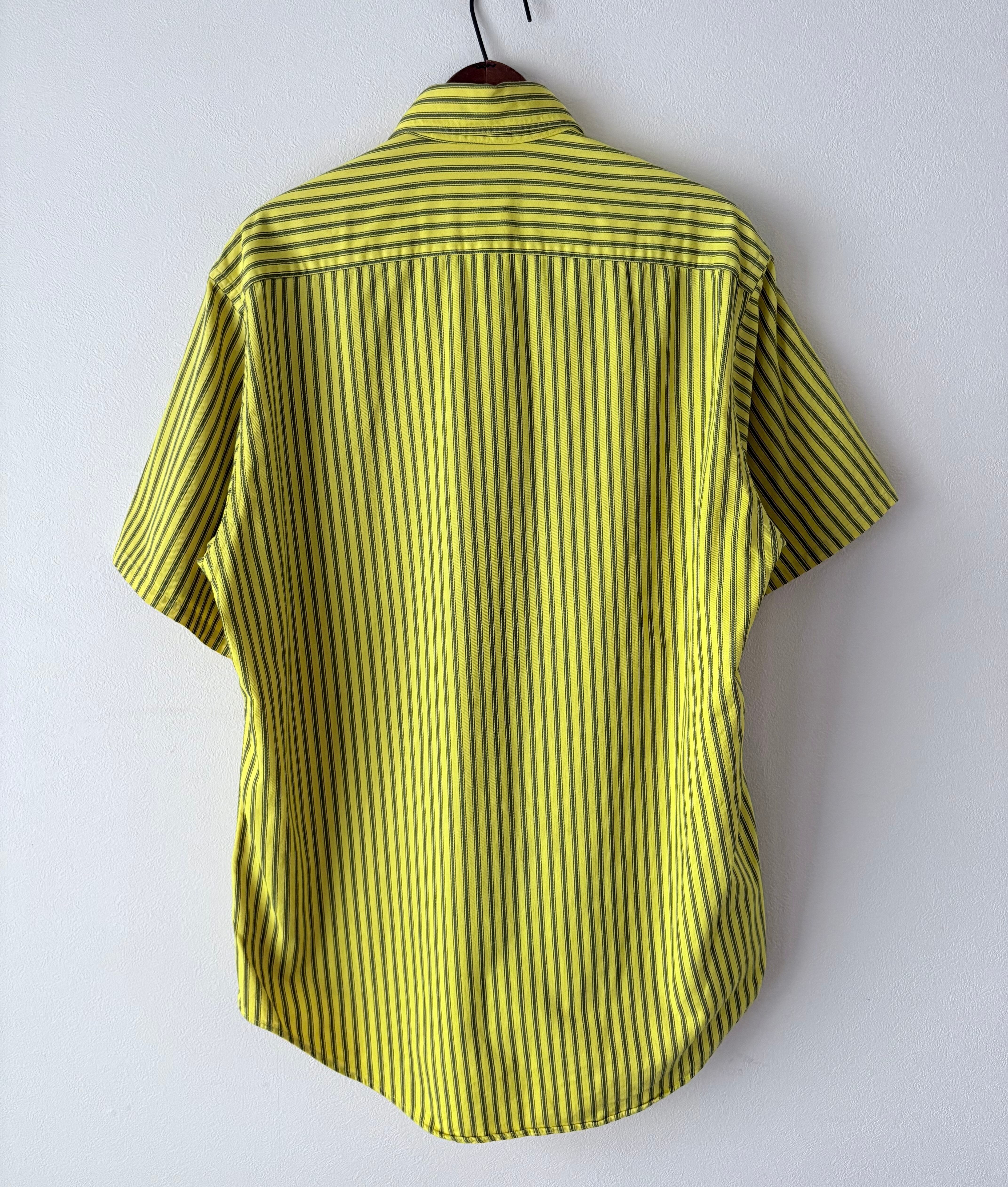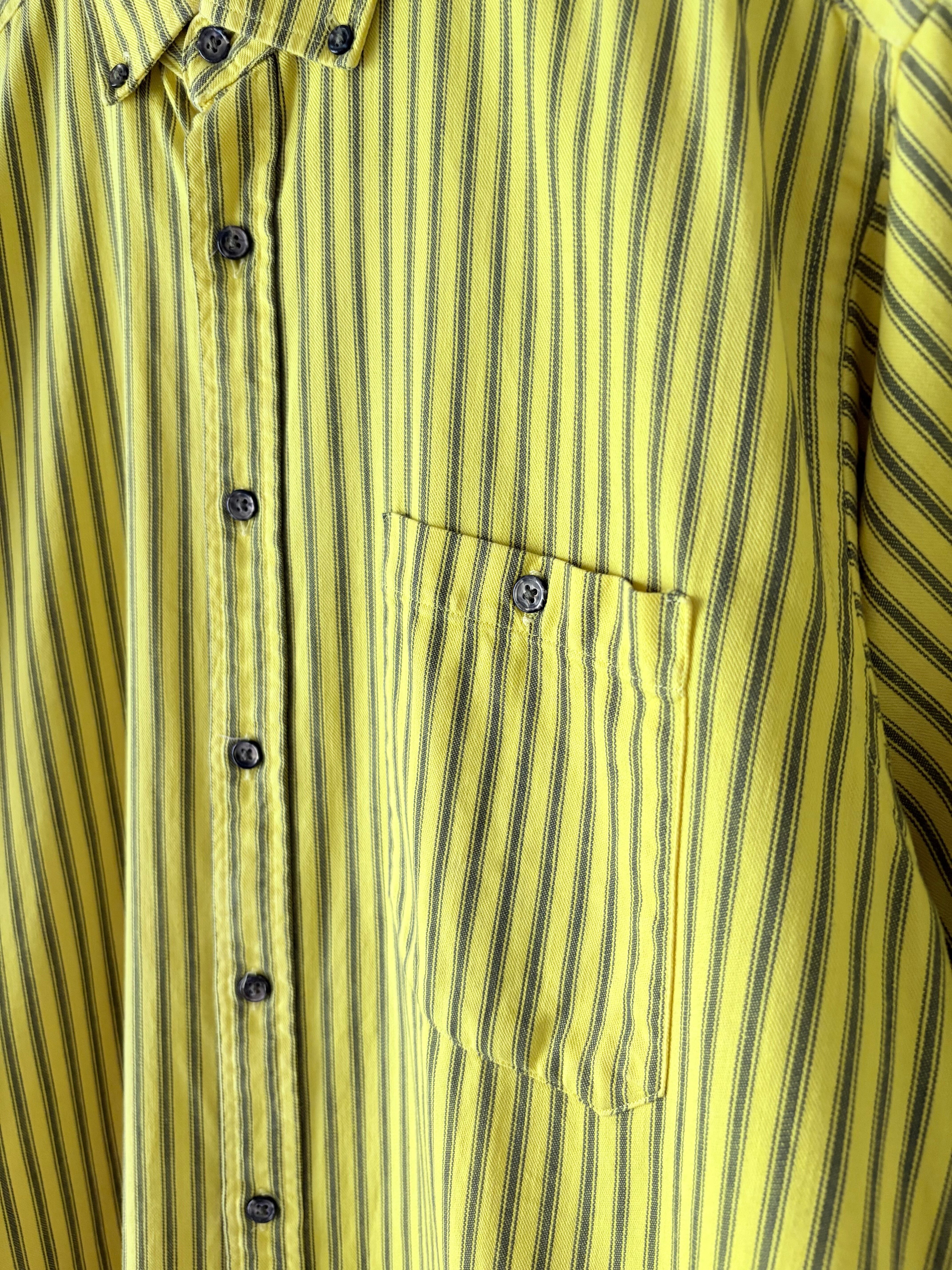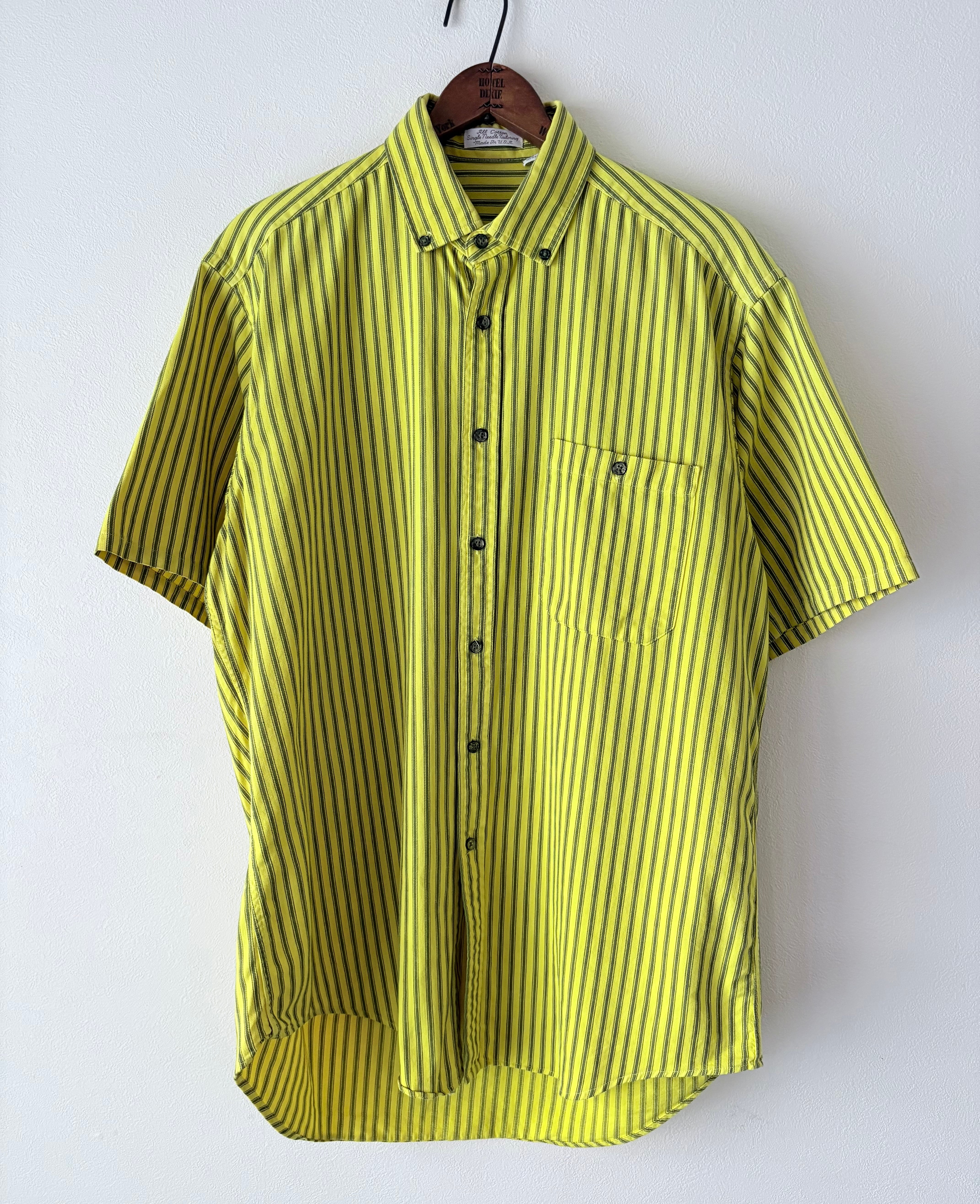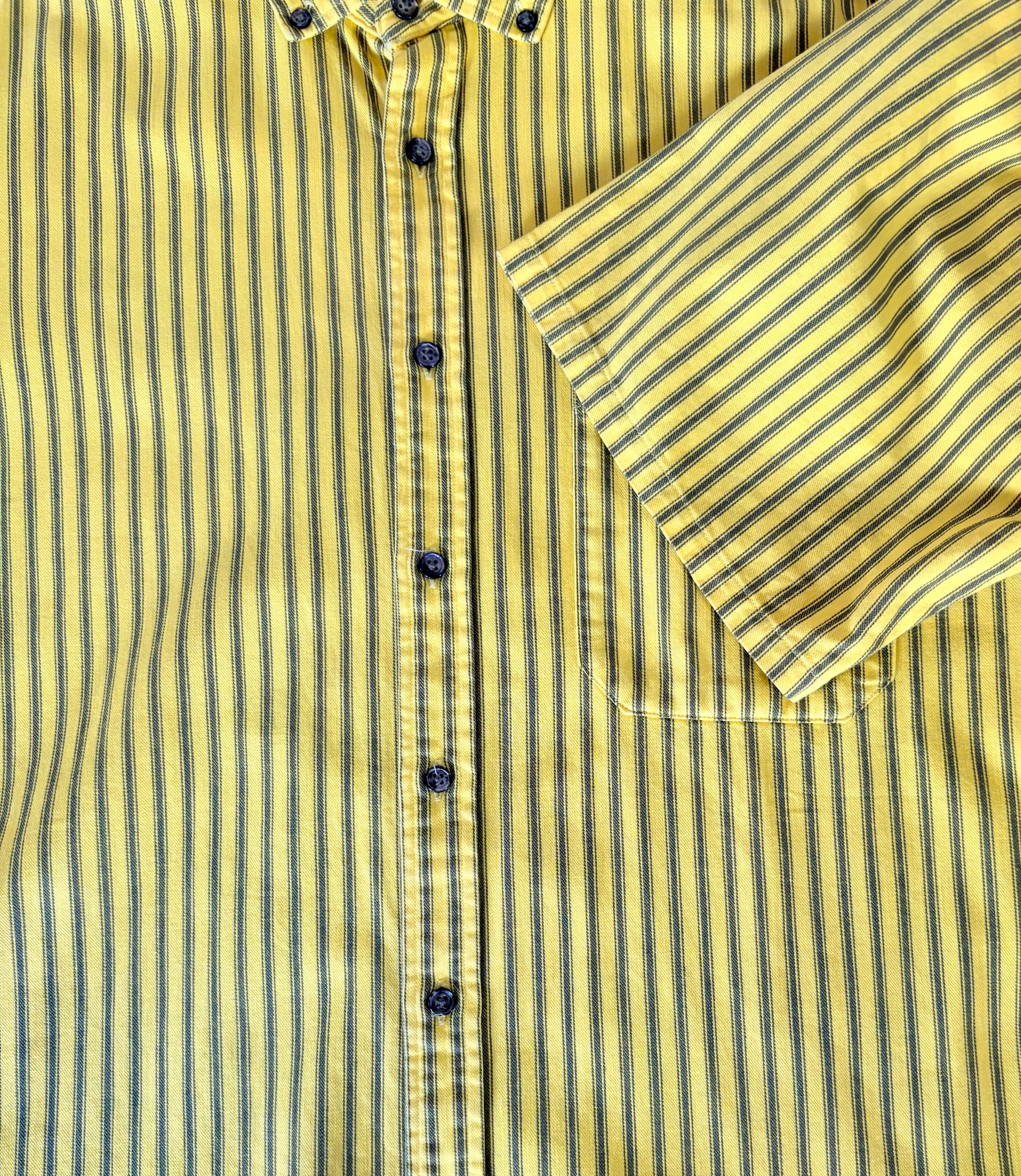 NYのお店で仕立てられた上質なシャツです。縫製のピッチが細かく縫われていたり、細部まで丁寧に作られたことがわかります。袖の折り返しも浅めでディテールから上品な雰囲気も感じられます。柔らかいコットンなので肌触りもよく、発色も明るい黄色ですがギラギラしておらず、いい具合の色合いが魅力的です。