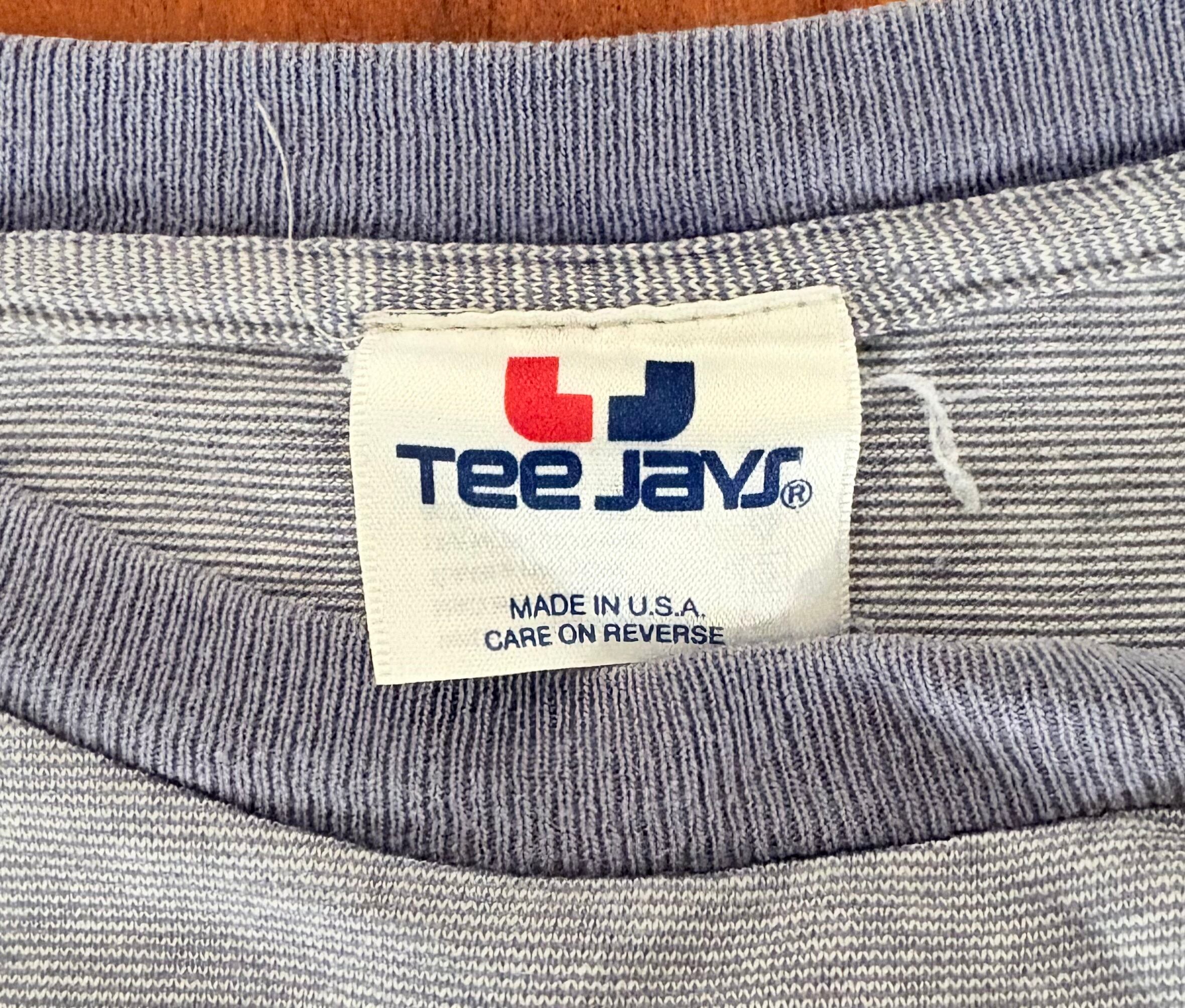 全体的に少しフェードしており優しい色合いになっています。大きめでゆったりしたシルエットで90sのストリートスタイルなどに合わせやすそうな少しレトロな風合いのTシャツです。