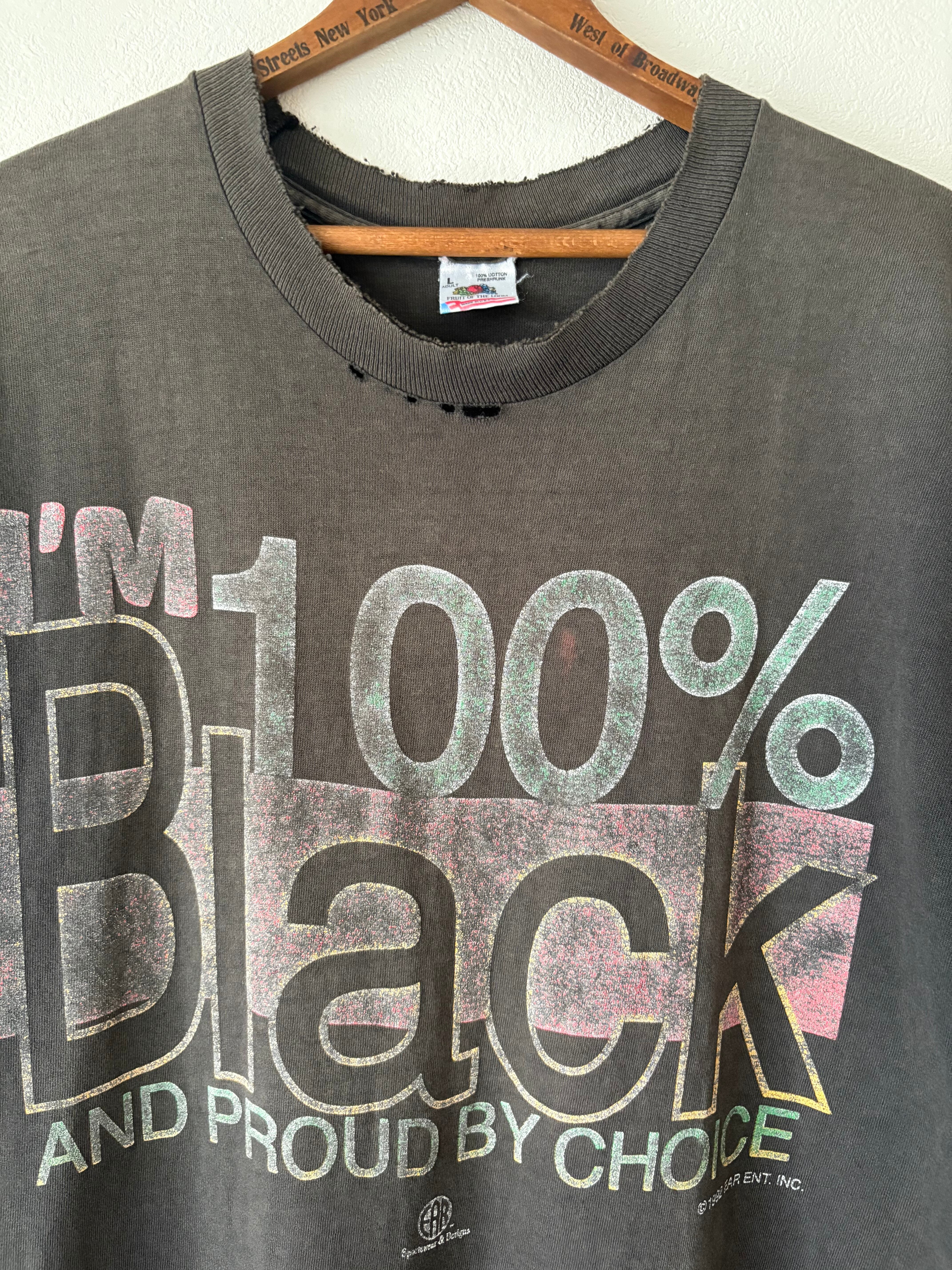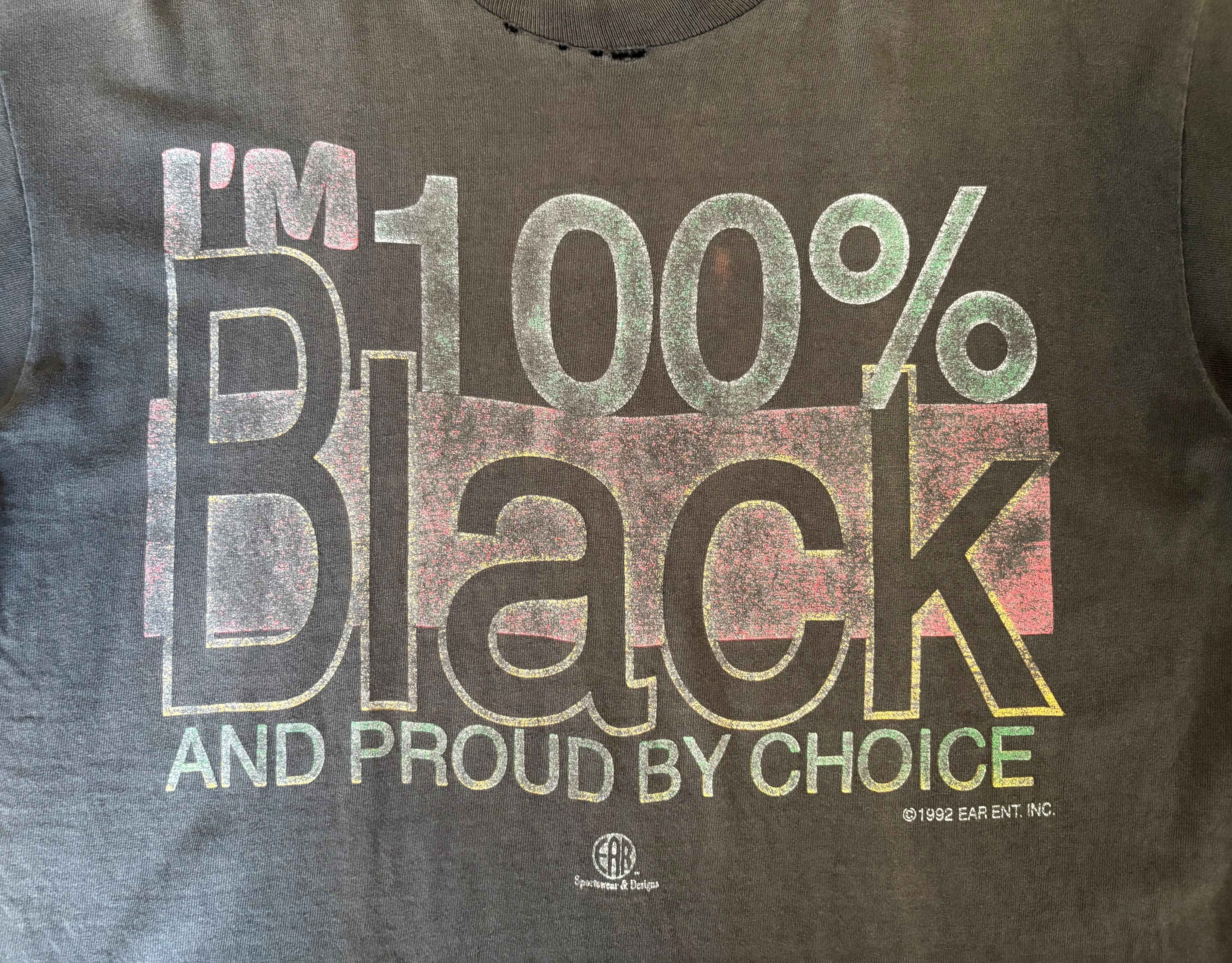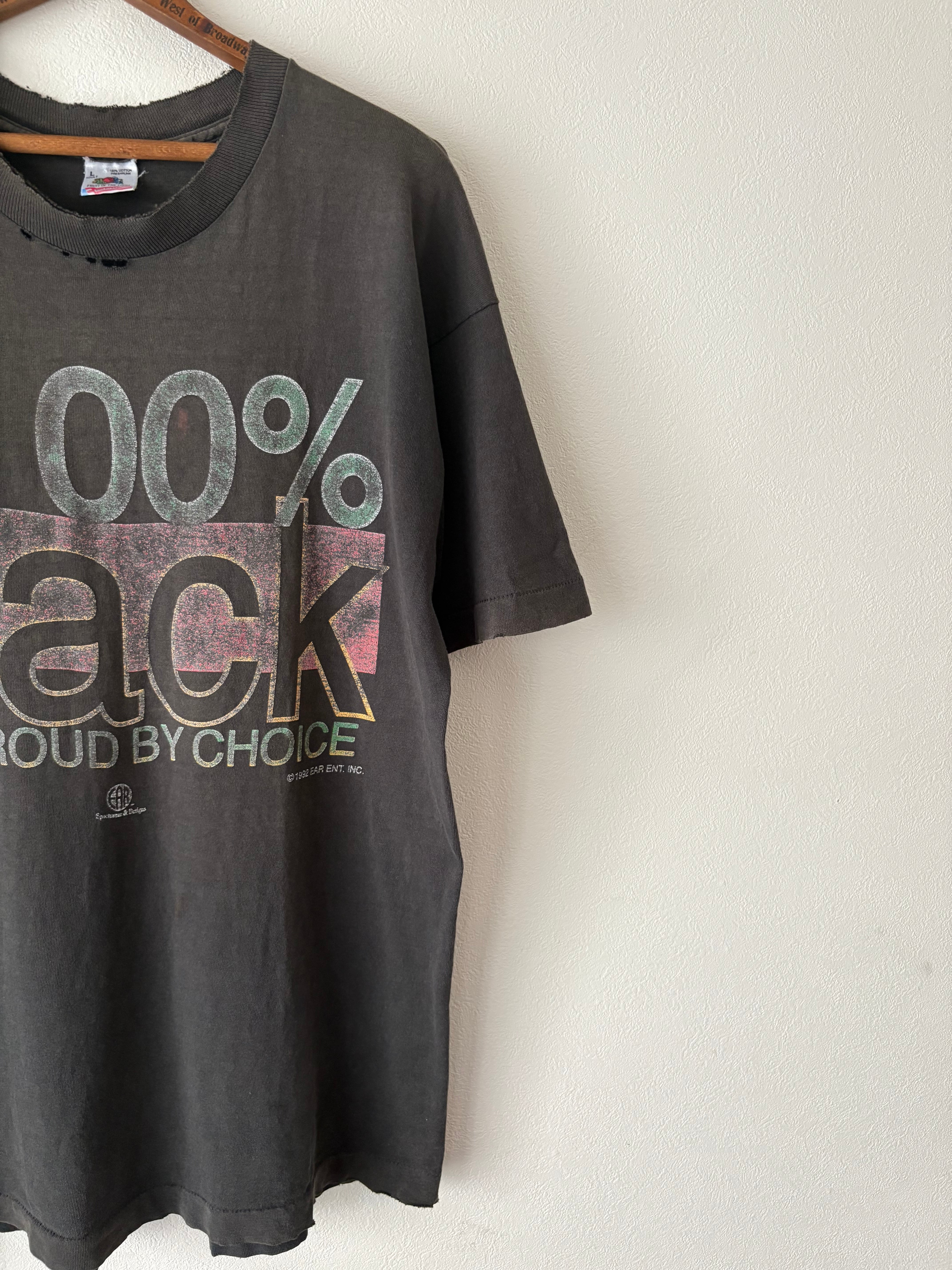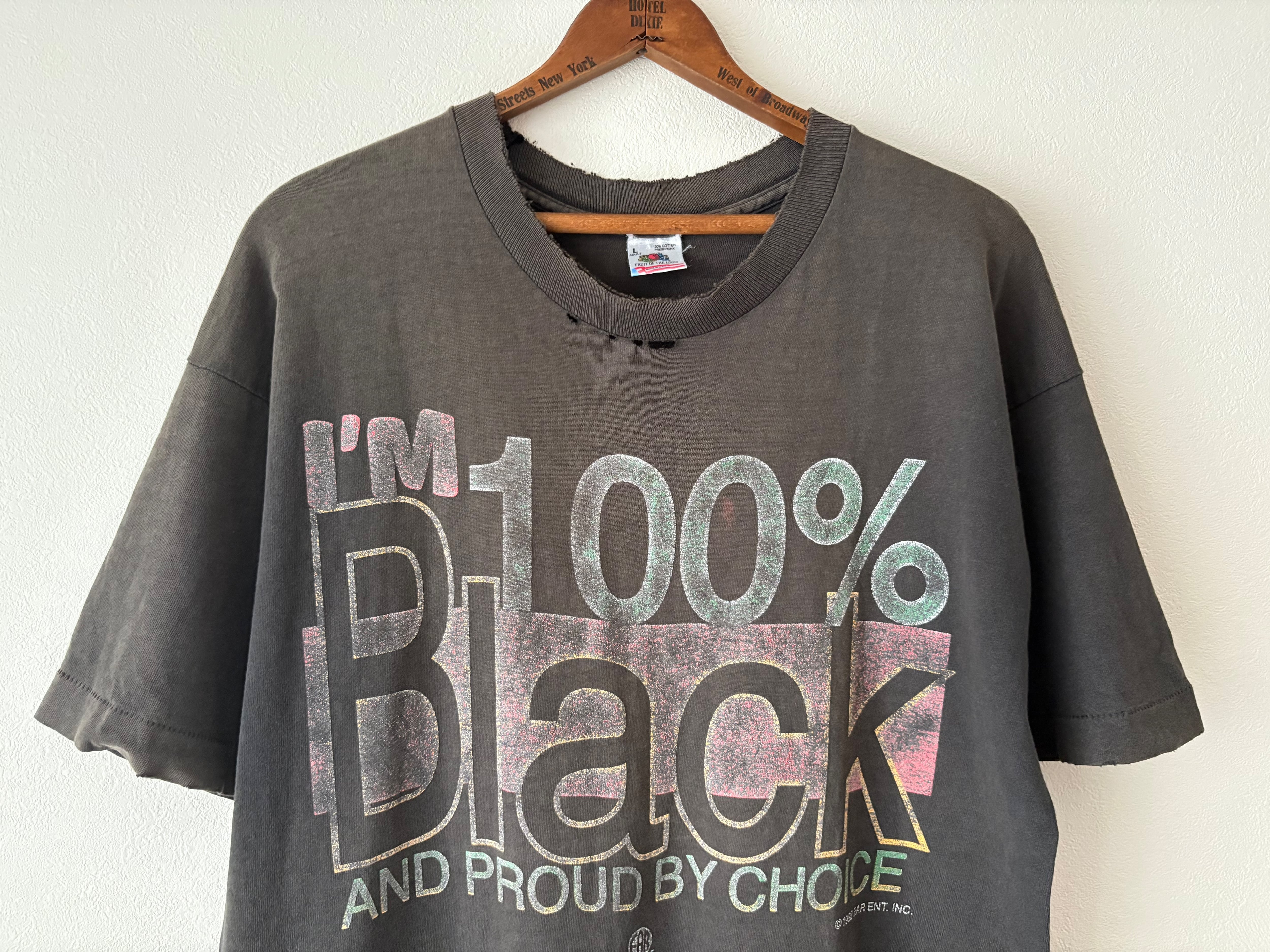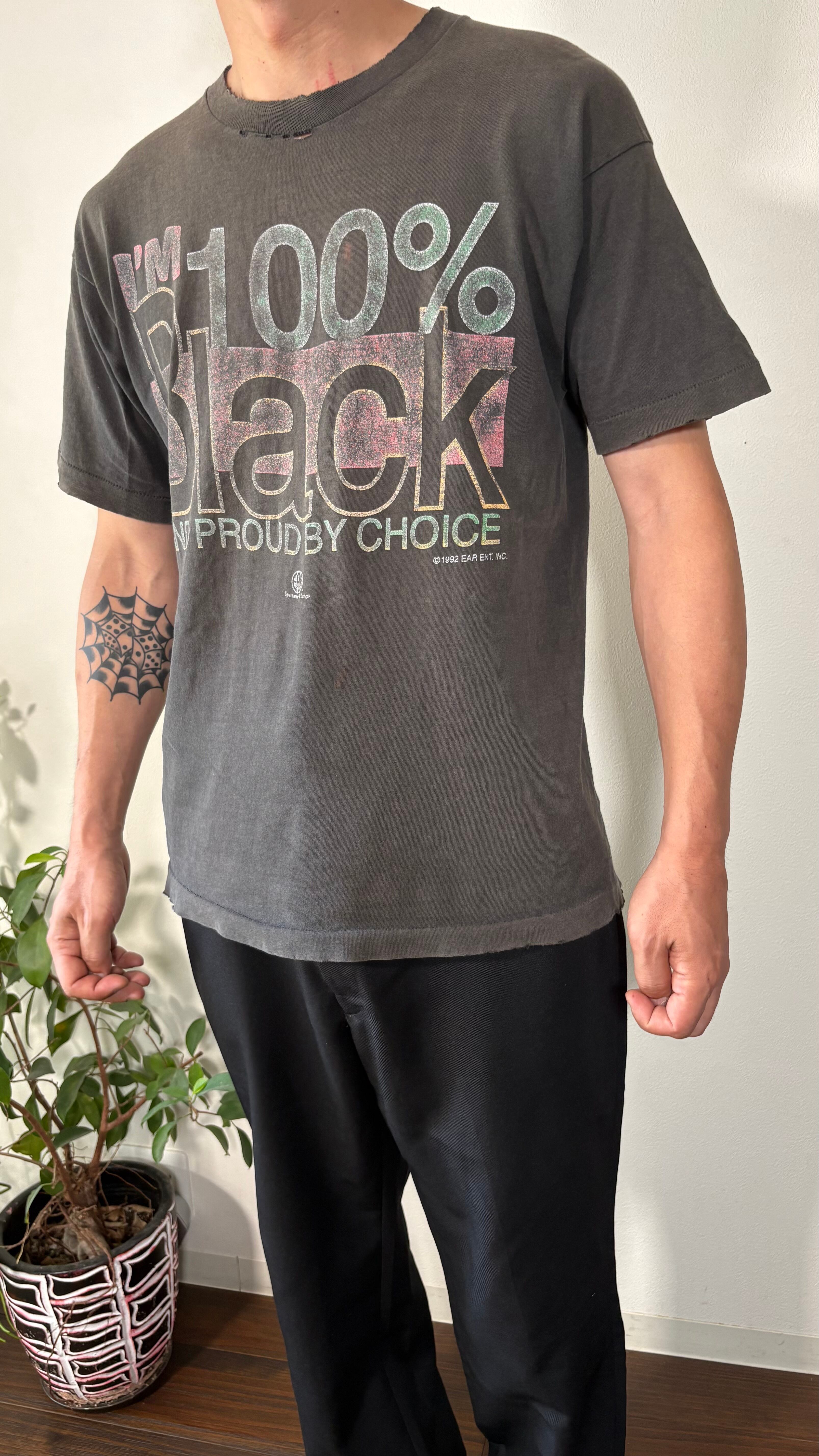 アフリカ系アメリカ人に関するメッセージ性の強いプリントが入っています。プリントが擦れているにも関わらず力強くインパクトがあるプリントが魅力的です。アイテム全体の雰囲気もロックテイストが感じられるとてもかっこいいTシャツです。