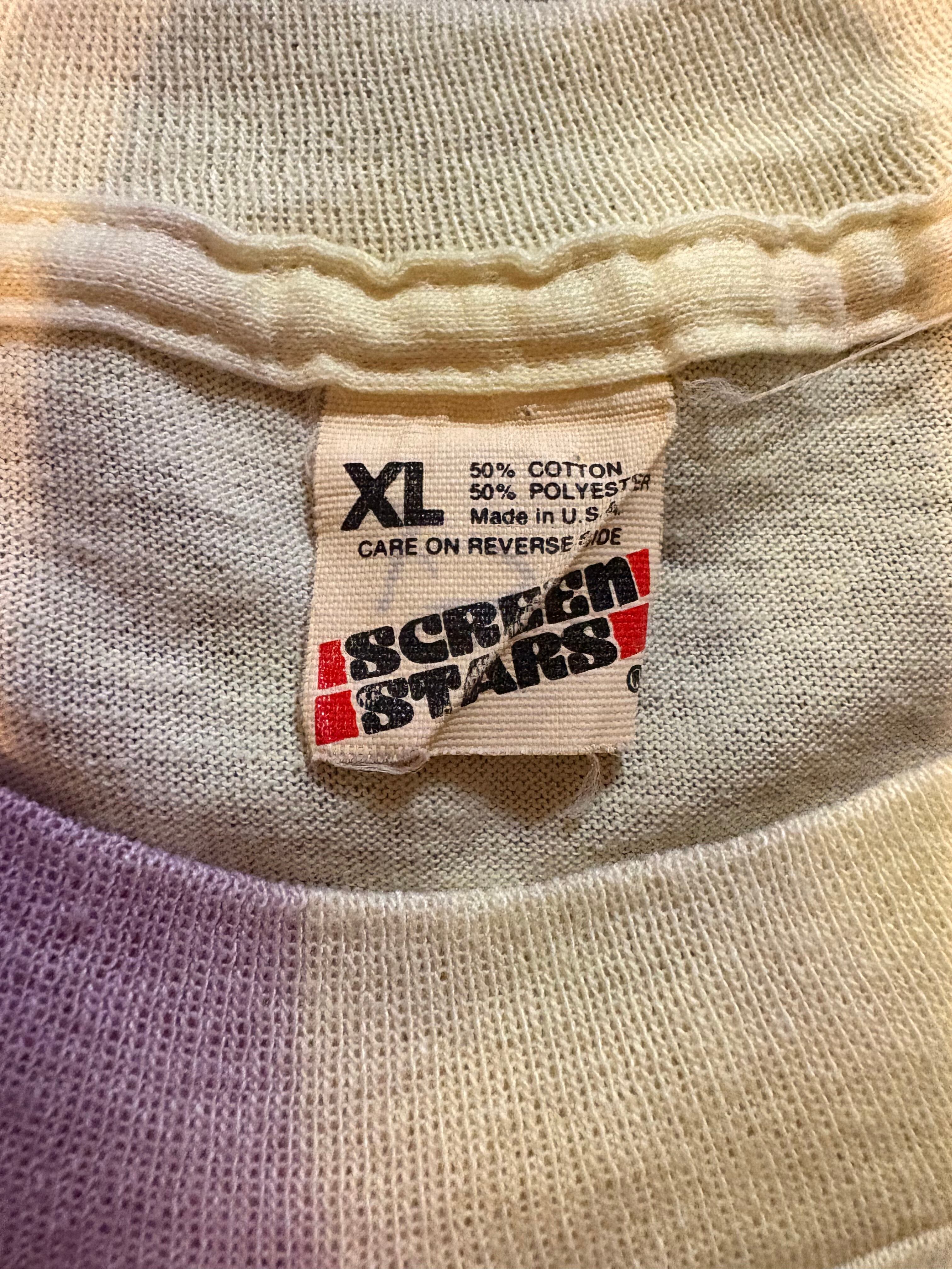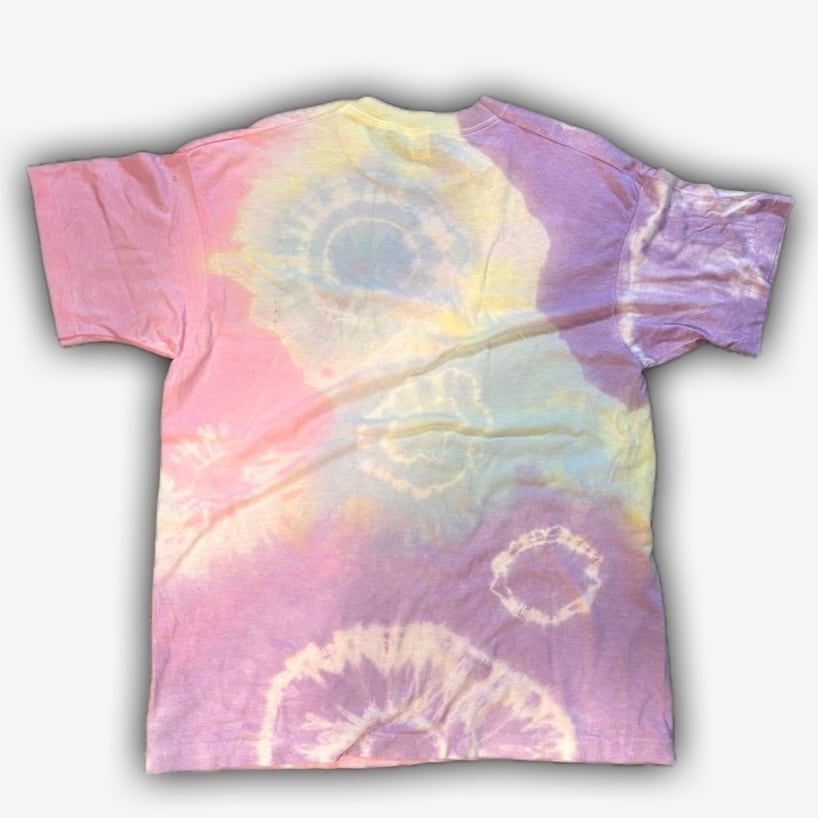 全体的にふんわりした色合いのタイダイTシャツです。主張があまり激しくないタイダイ柄なのでシンプルなデザインに感じられます。生地感は薄めなので、サラッと着やすく、ベストやTシャツの重ね着のインナーにも使用しやすく、ユニセックスで着ていただけるアイテムです。