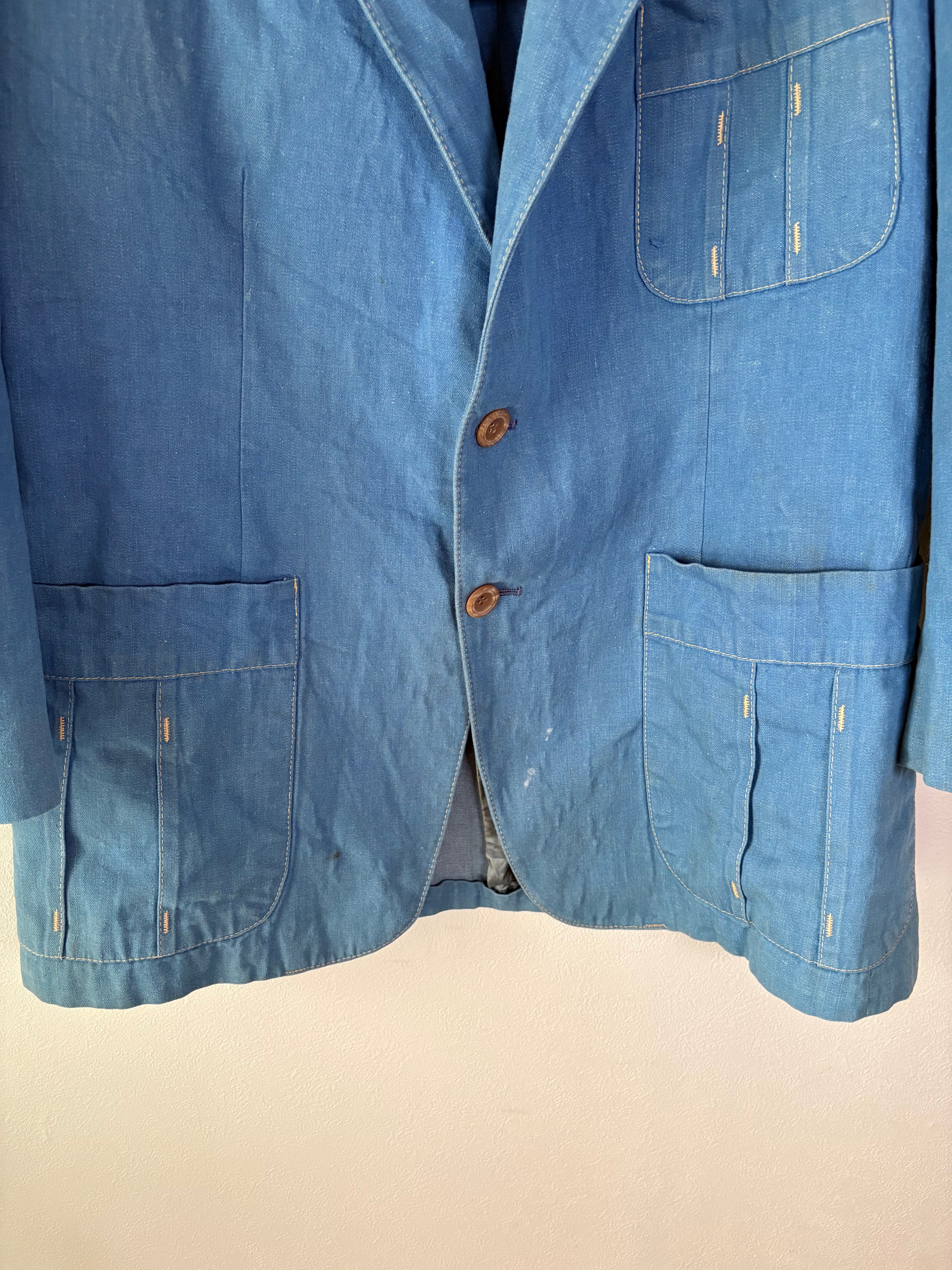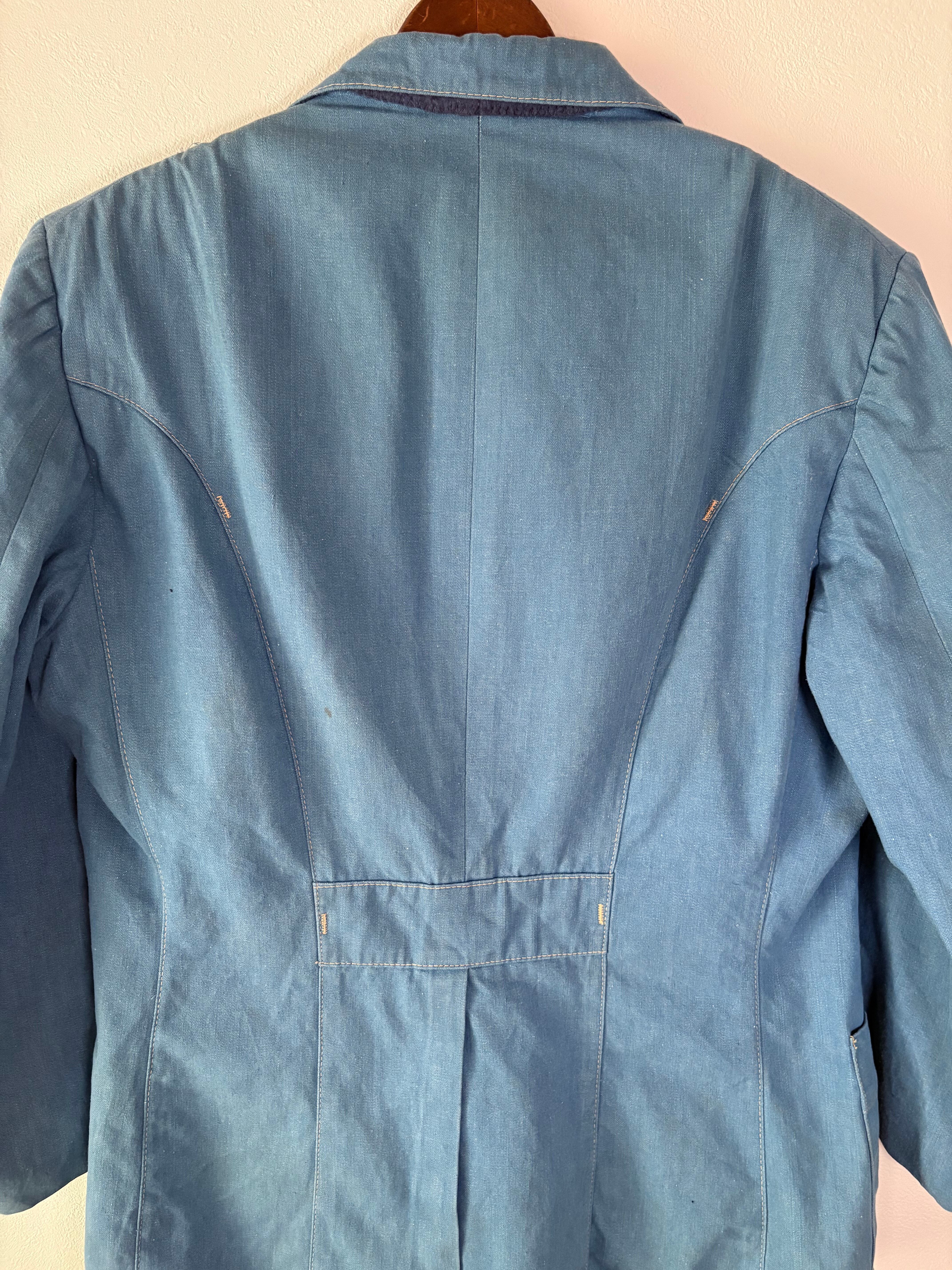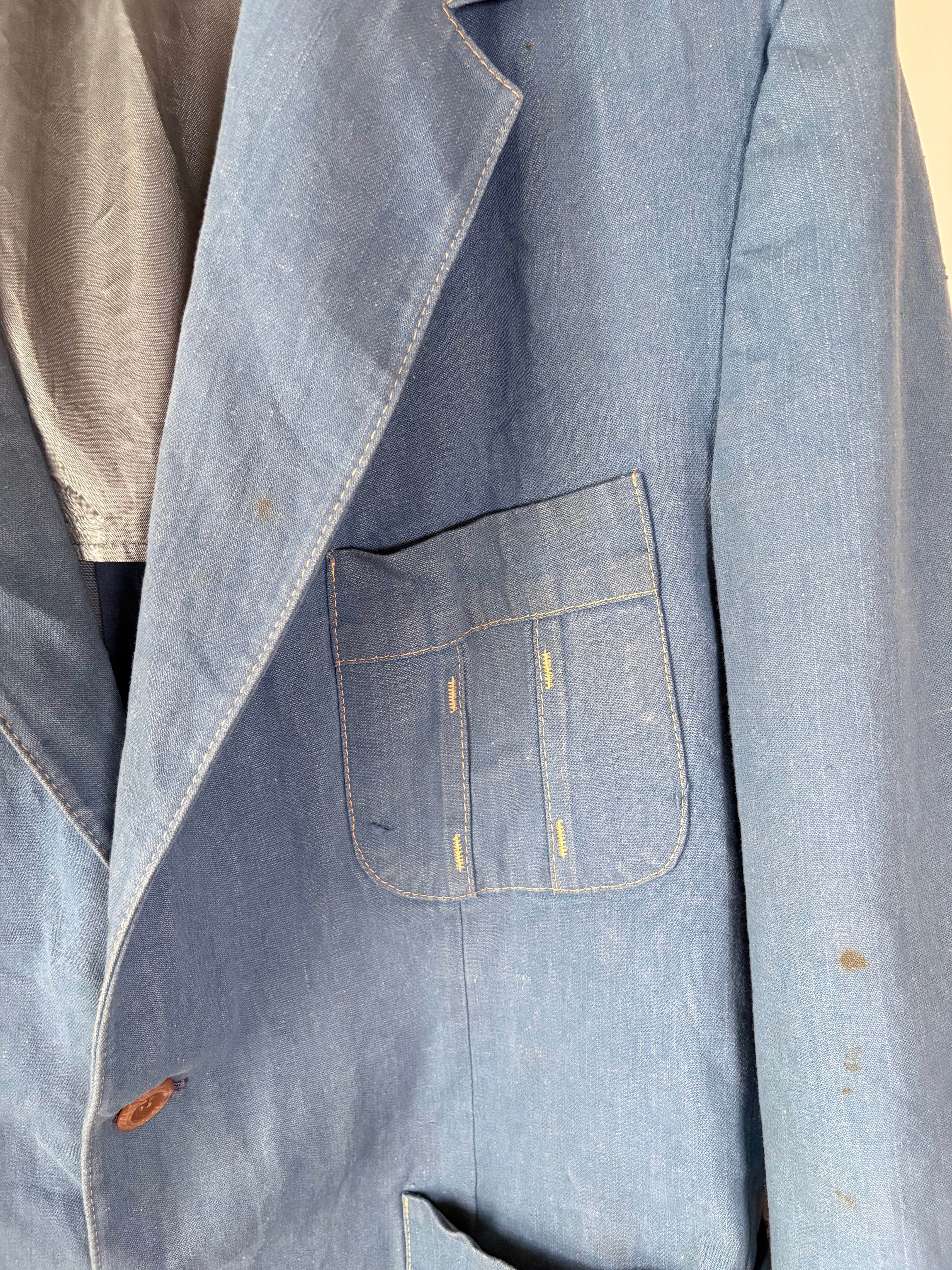 シャンブレーの様な色味のブルーデニムで仕立てられたジャケットになります。