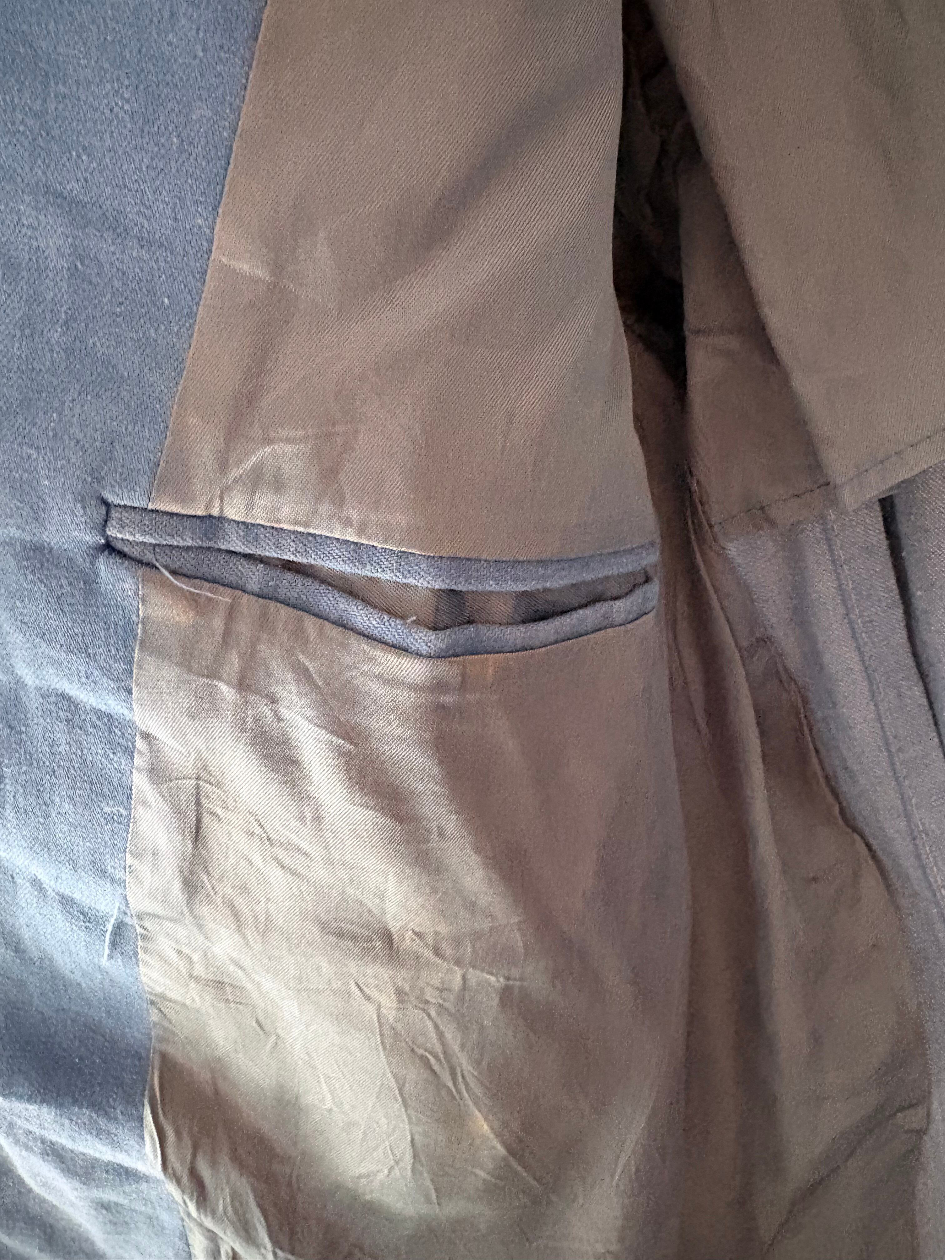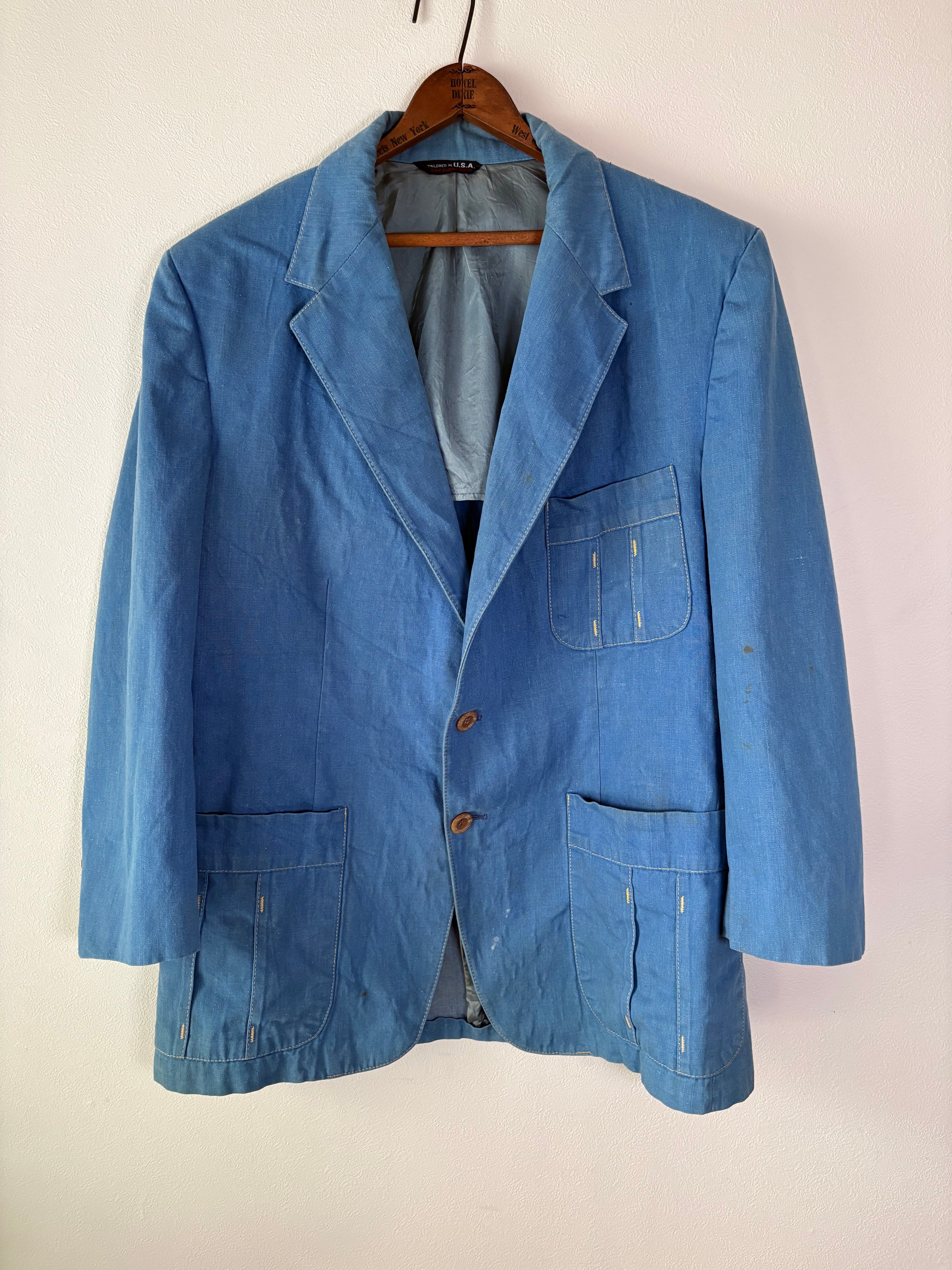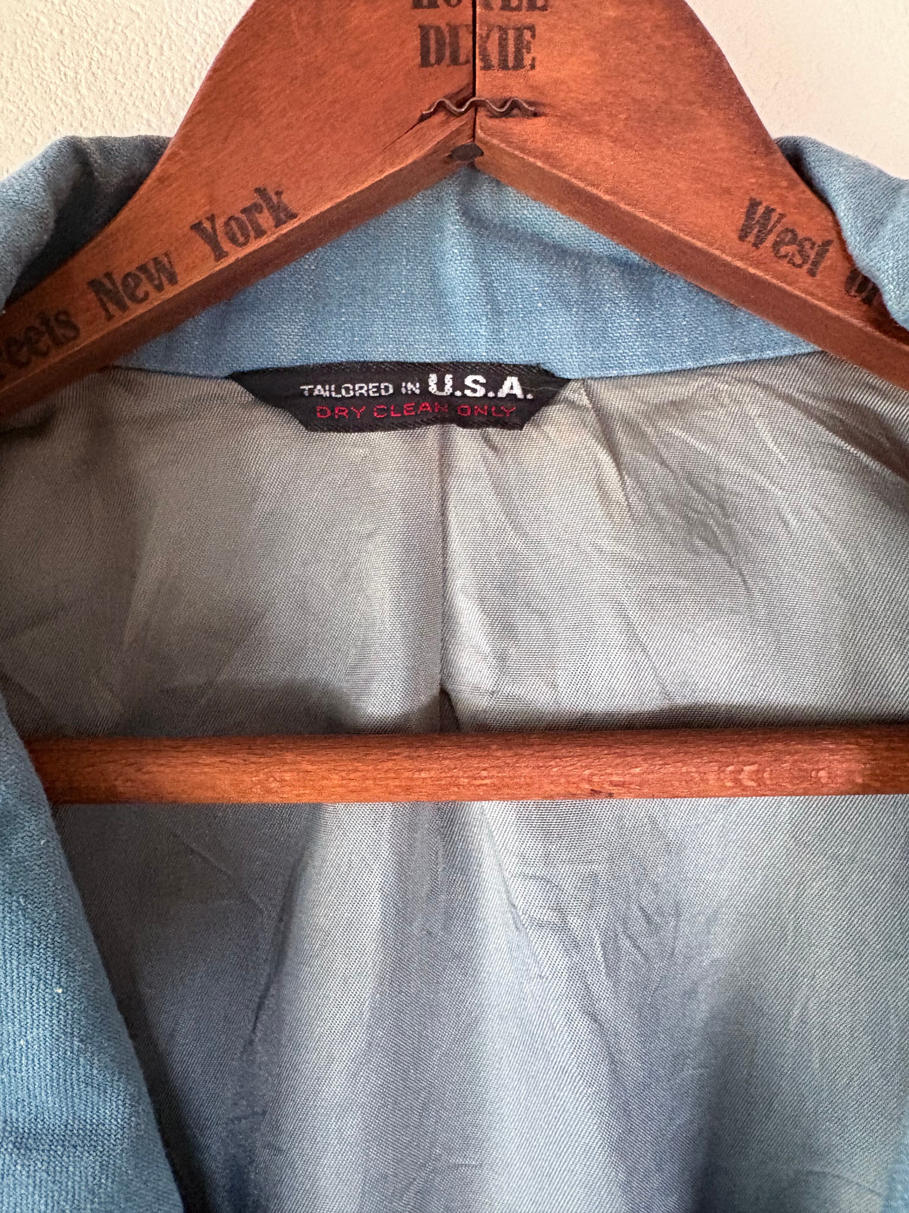 シャンブレーの様な色味のブルーデニムで仕立てられたジャケットになります。