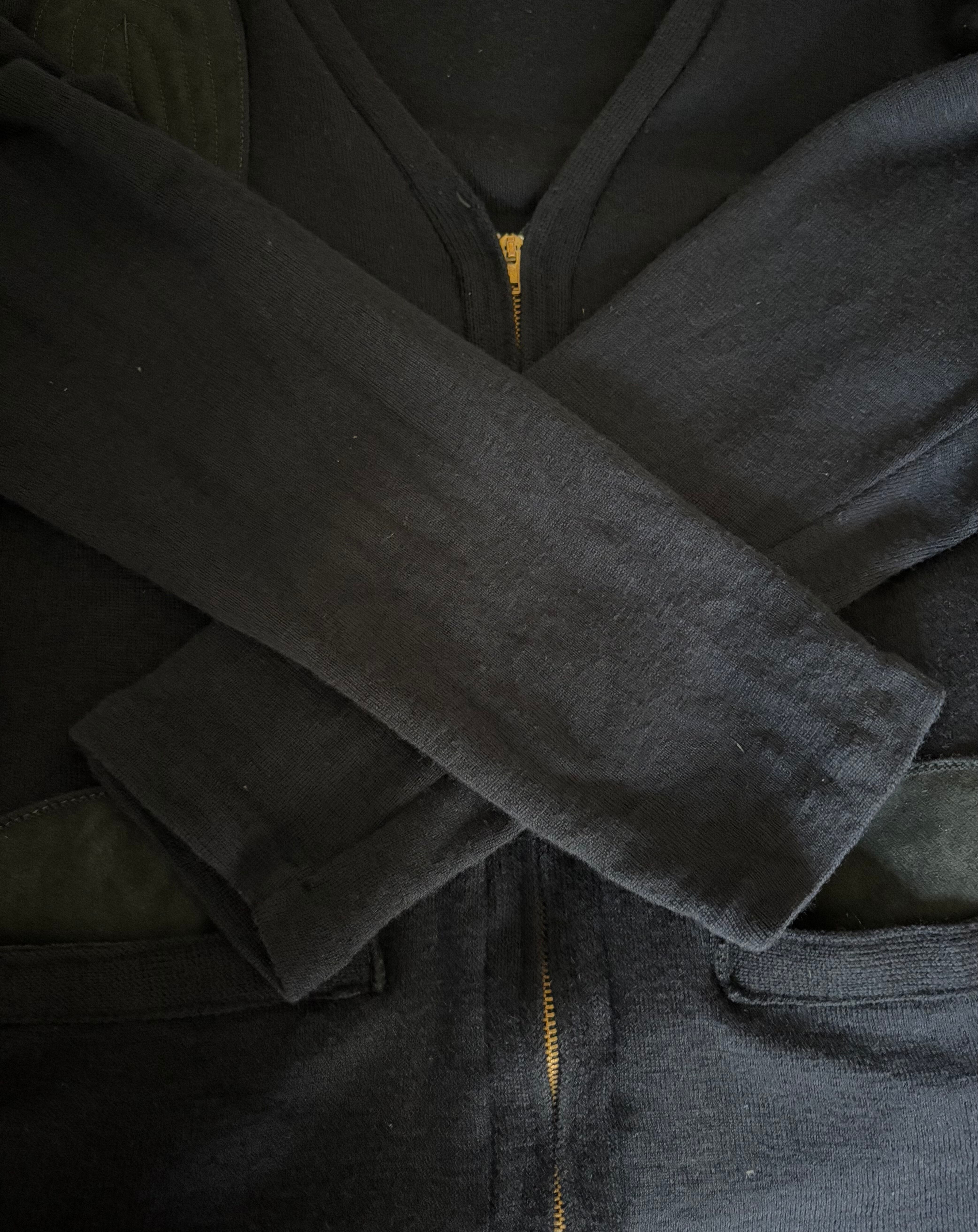 こちらはカーディガンタイプ。所々にバックスキンを使っていて当時の作り込みの良さを感じます。サイズも44で少し縮みはありますが、サイズ感も良いかと思います。