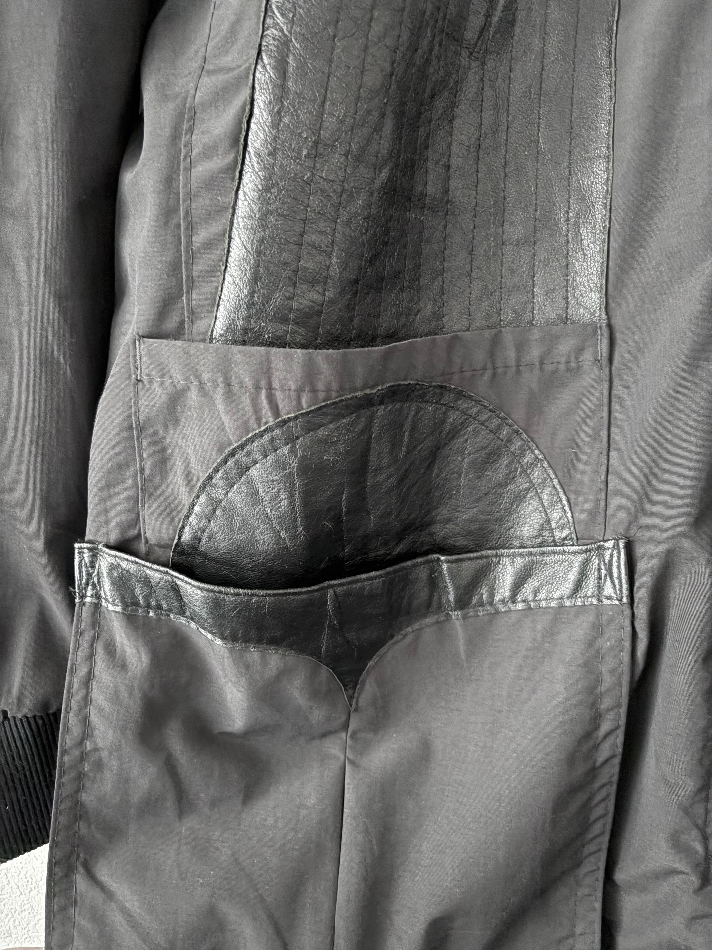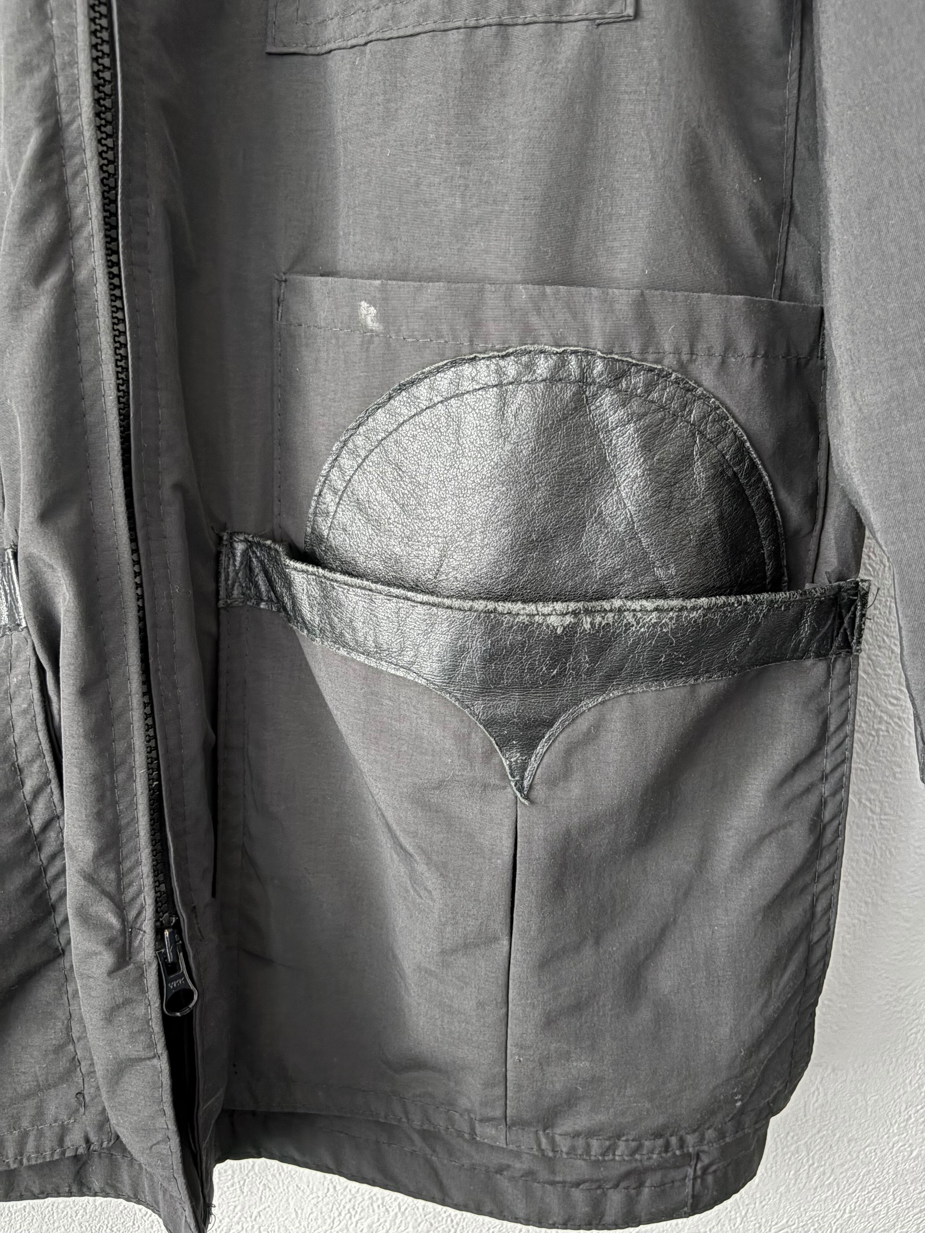 ナイロン素材に同色のレザーパッチが付いているシューティングジャケットです。レザー部分も同色で着用しやすいデザインとなっております。ライナーはジッパーで取り外し可能なので、長い期間楽しめるアイテムです。