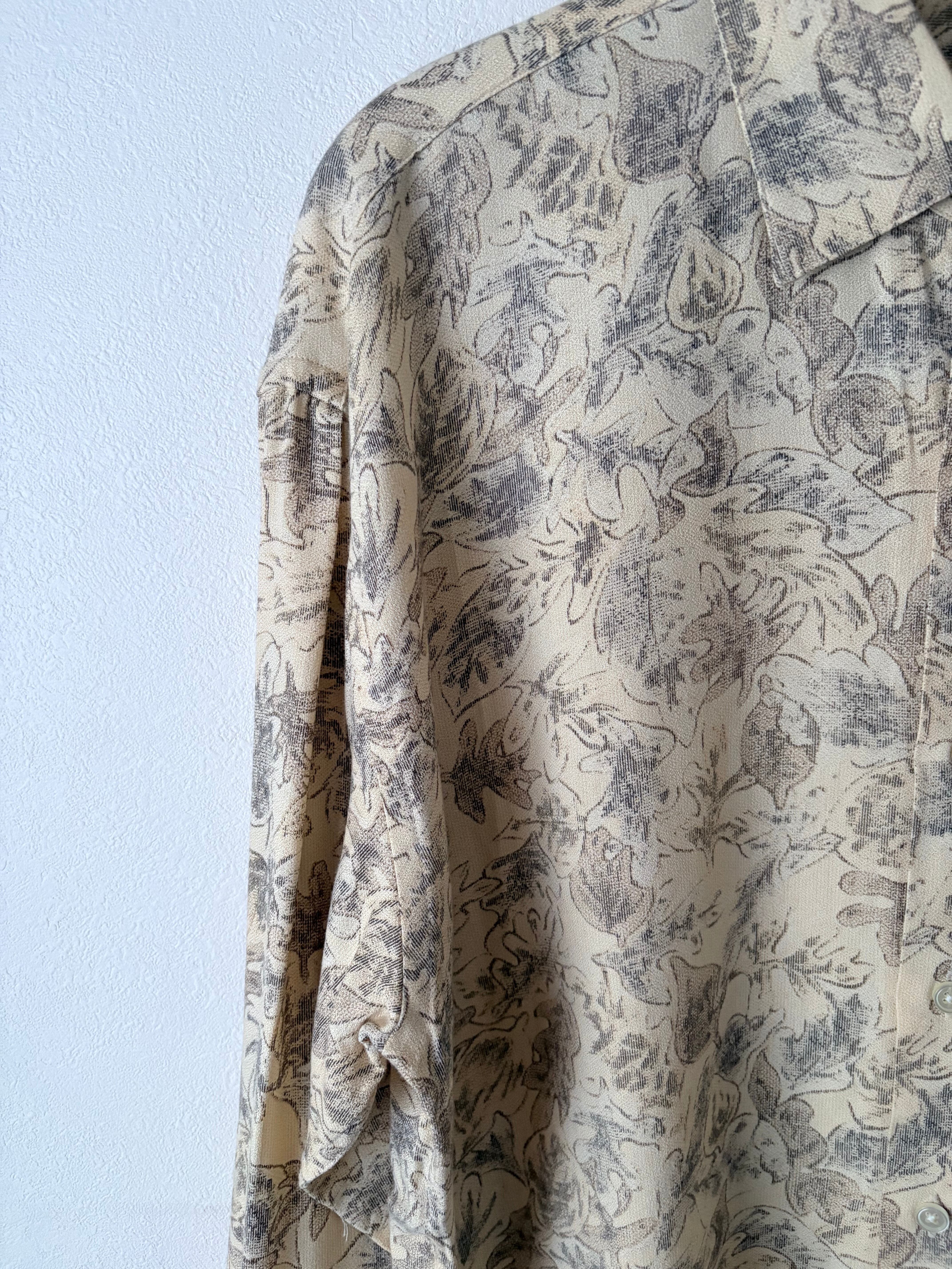 90s PERRY ELLIS All-over pattern RAYON L/S shirt