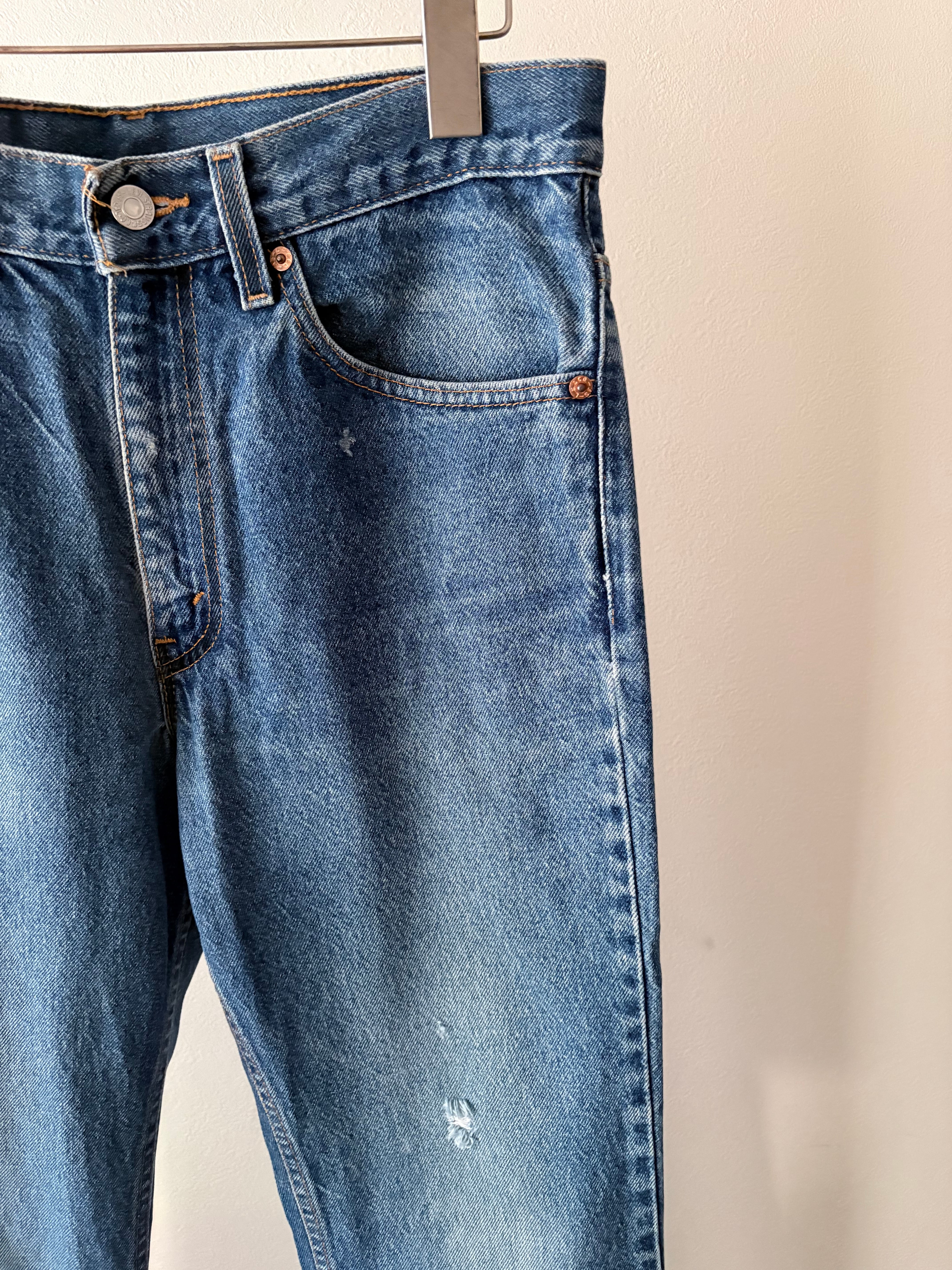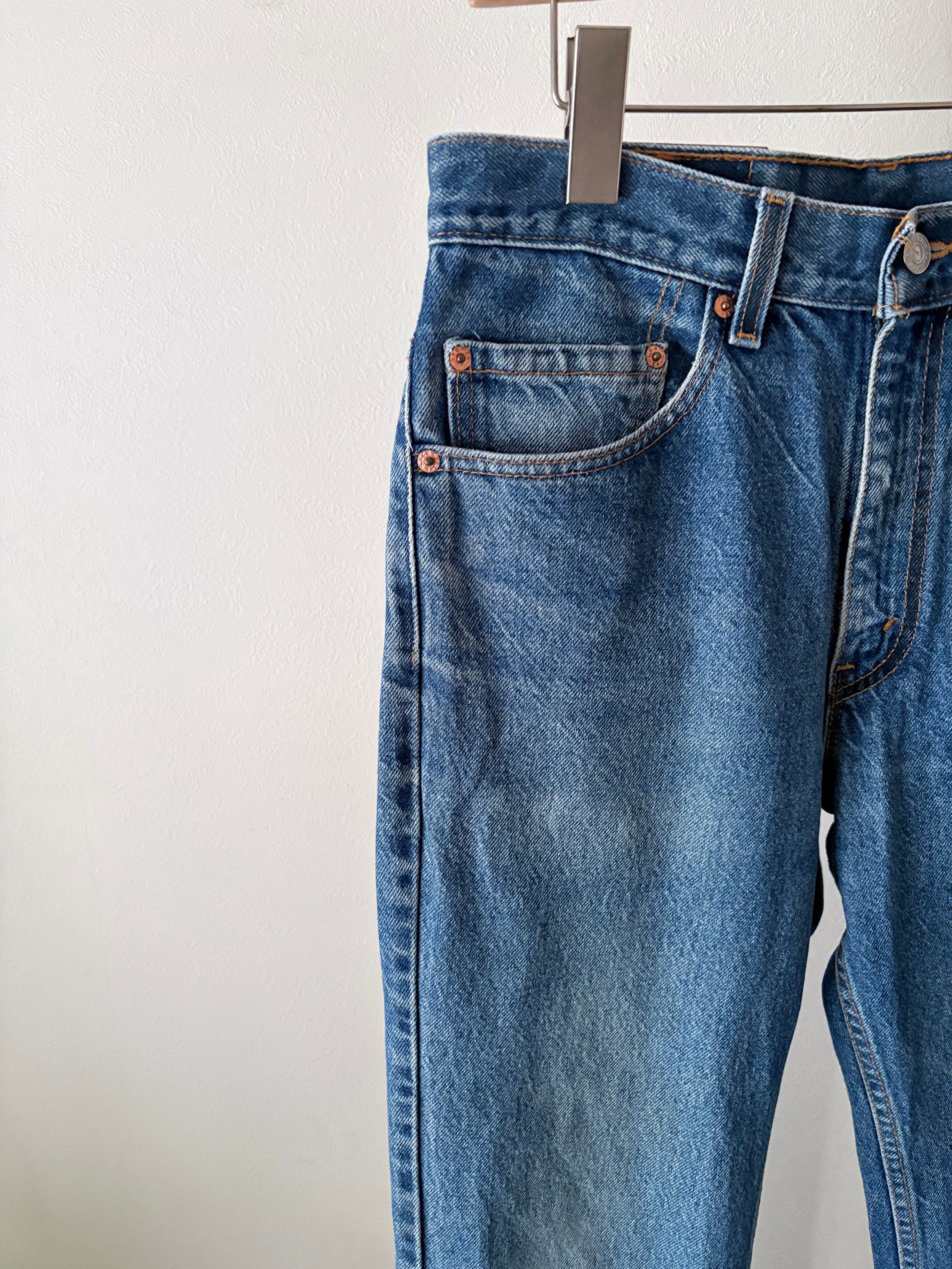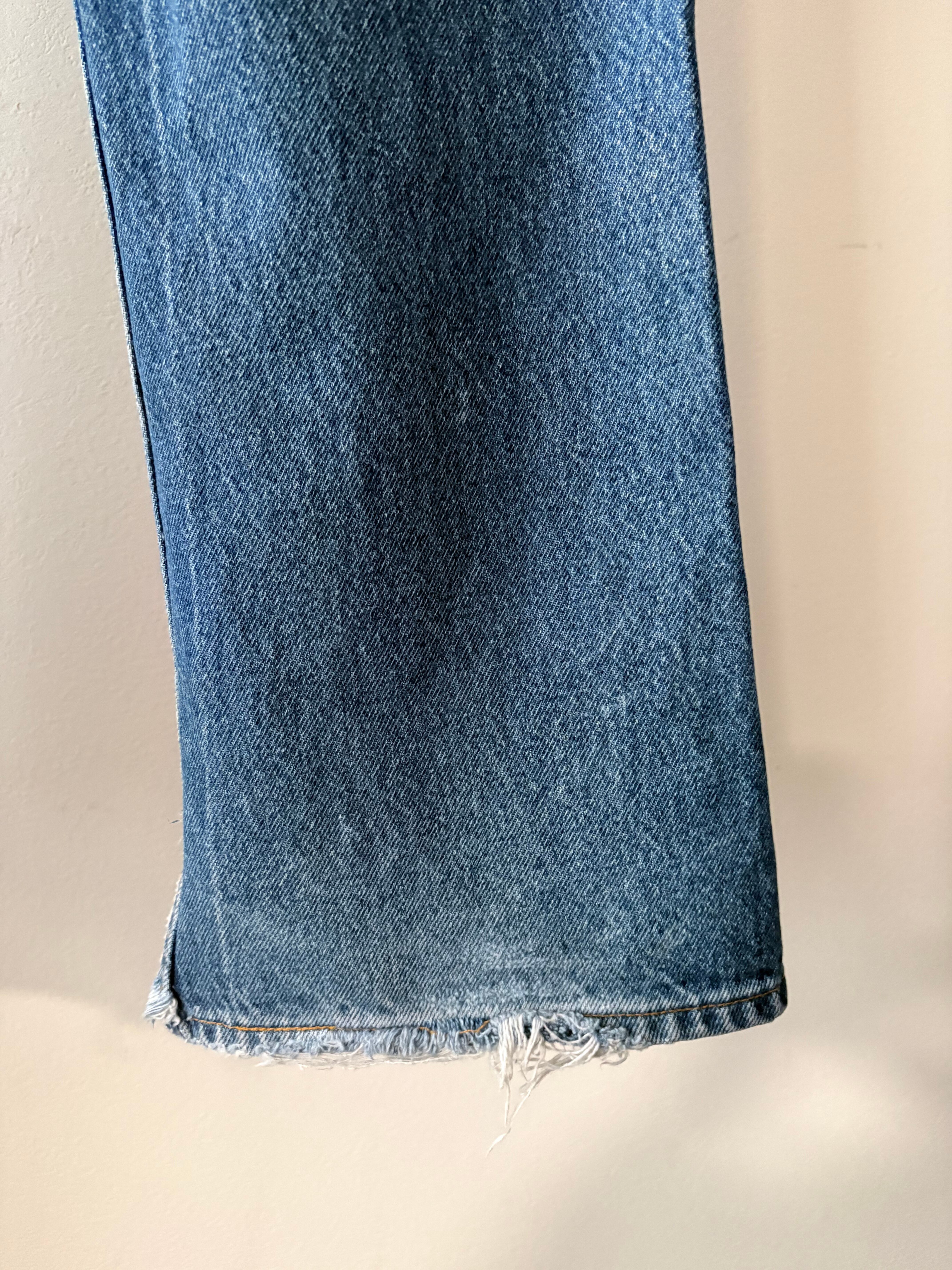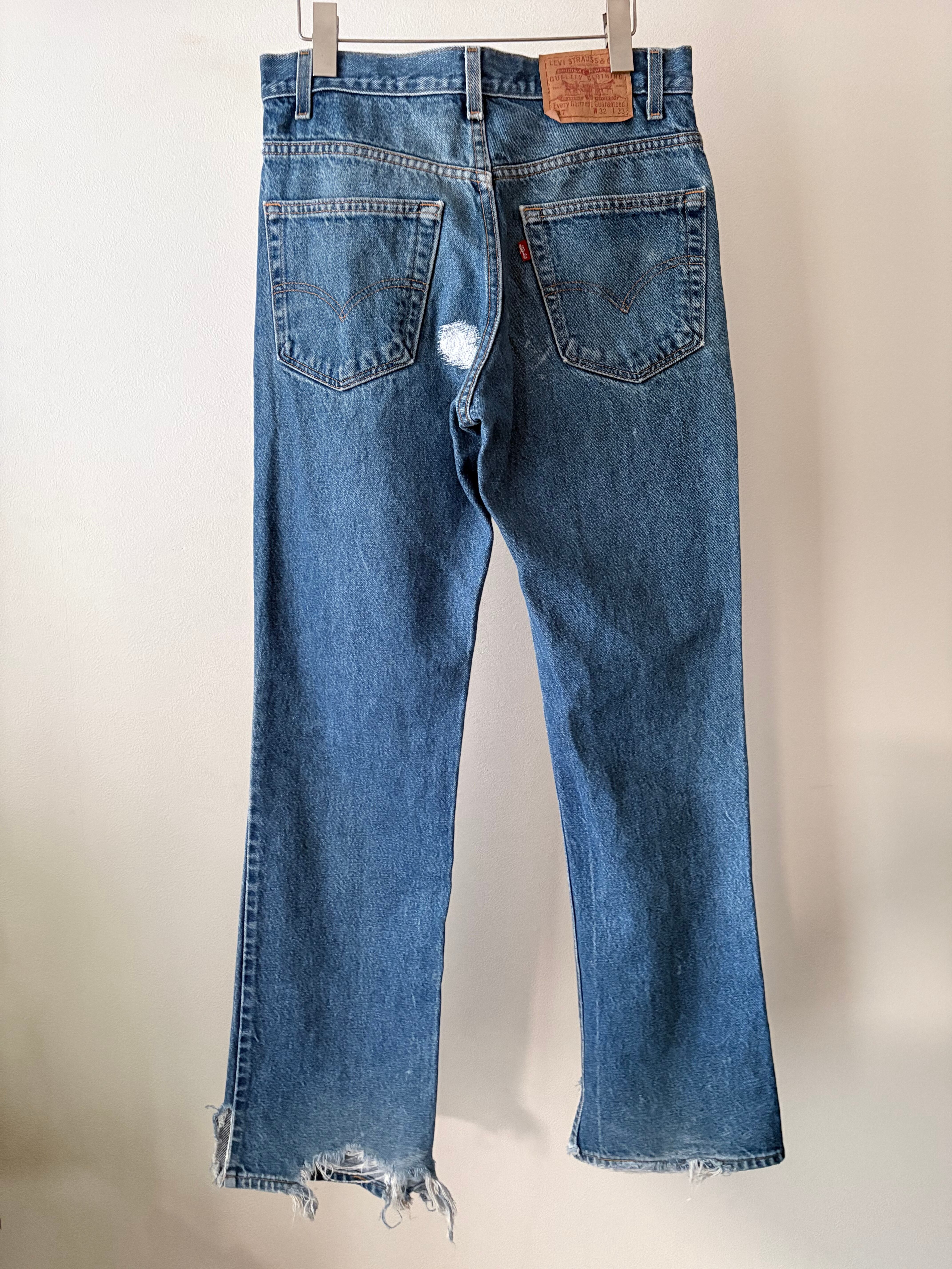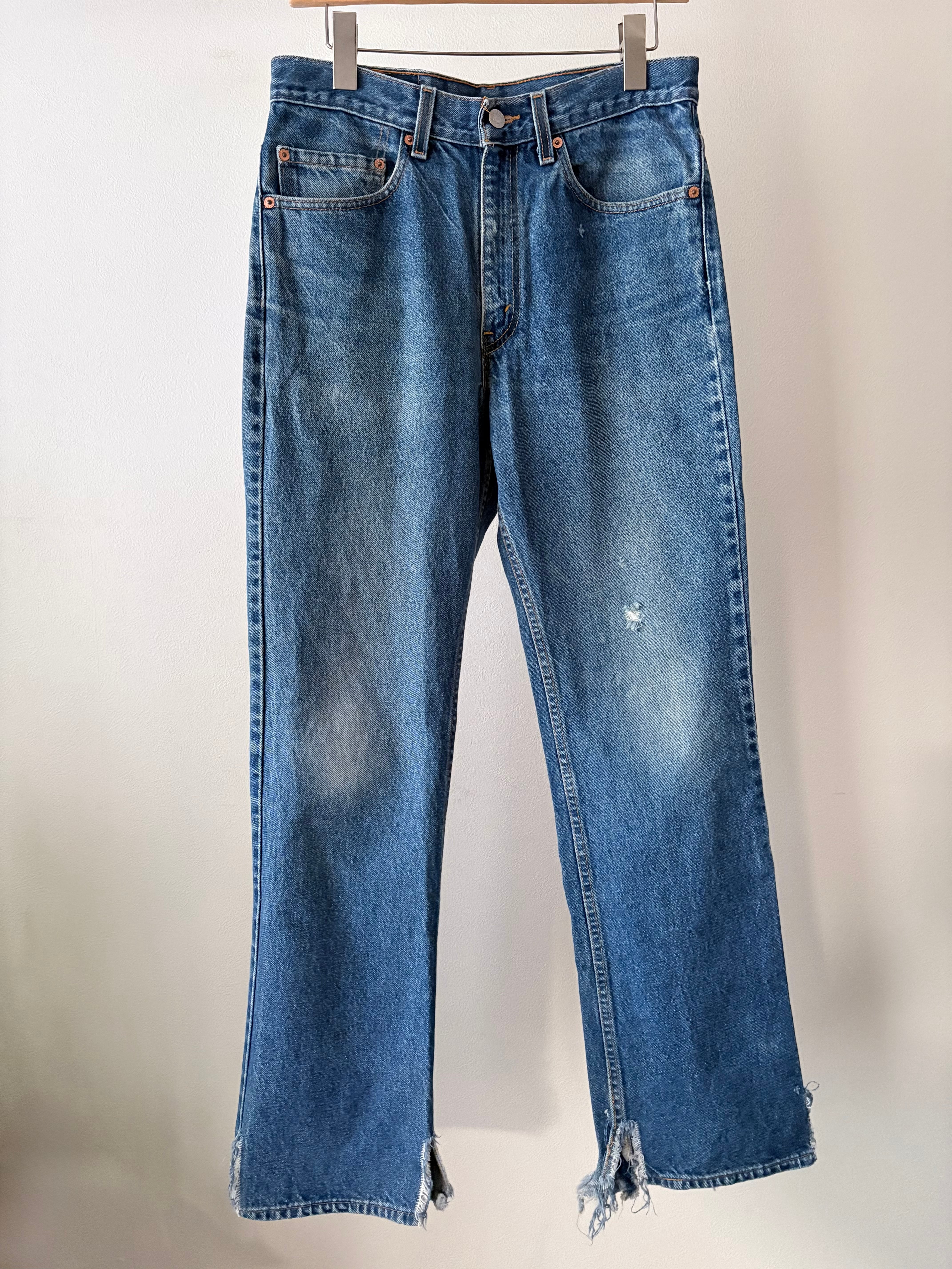 ブーツカットで定番の517。足を綺麗に長く見せてくれるシルエットが特徴です。お尻のリペアや裾がカットされているため、お買い求めやすい価格にしております。アメカジ定番スタイルから少し離れて遊びたい方におすすです。