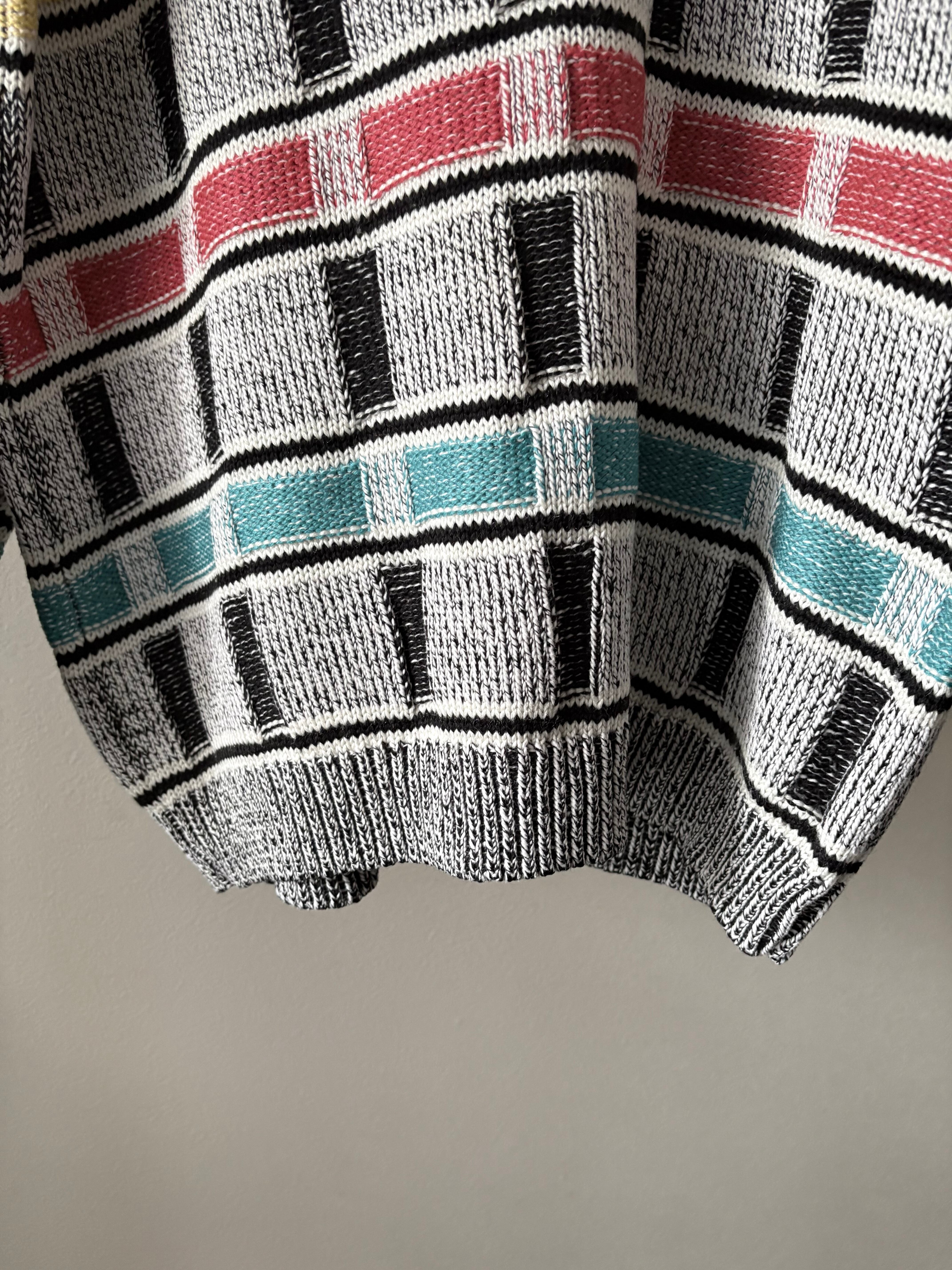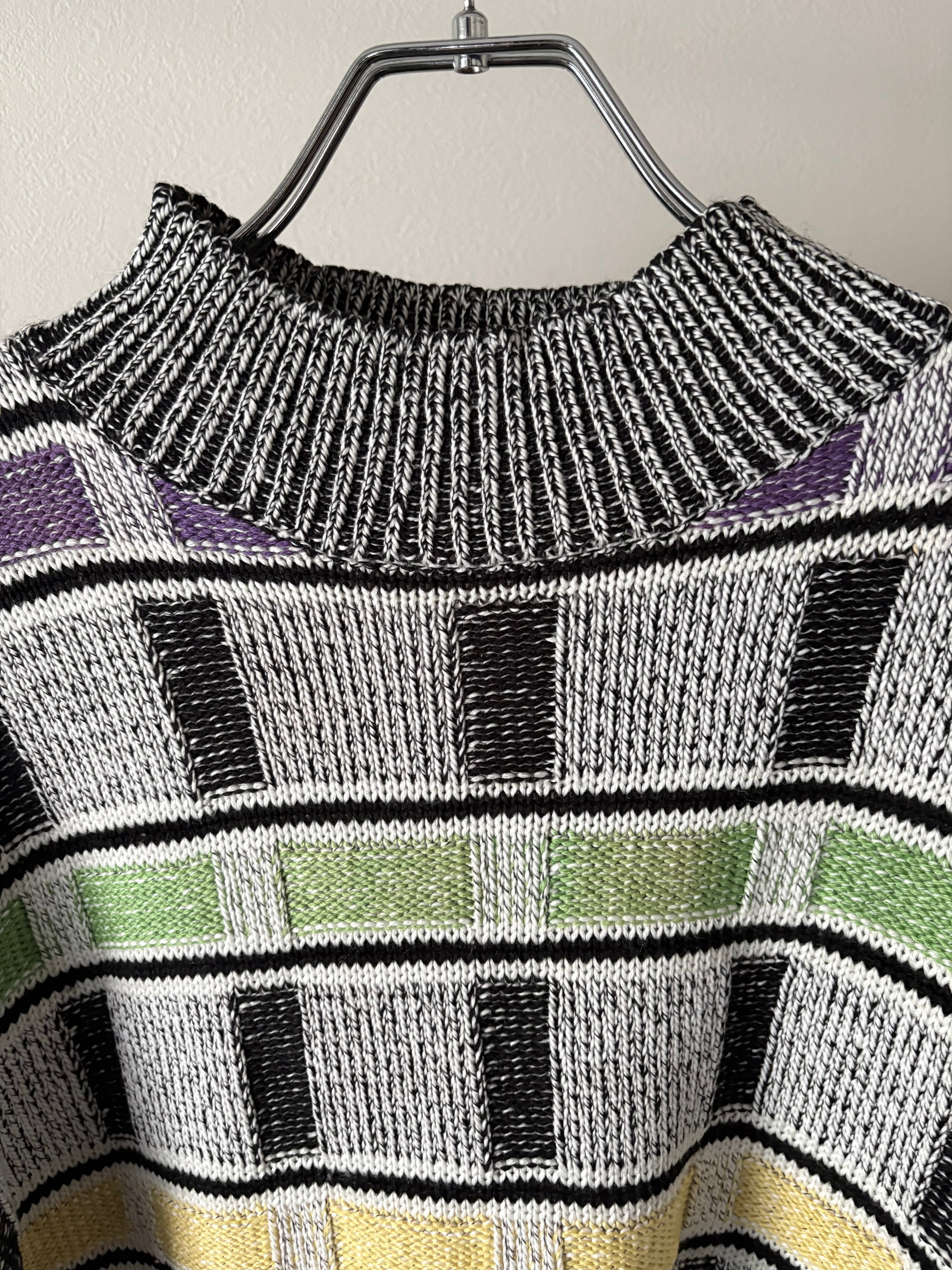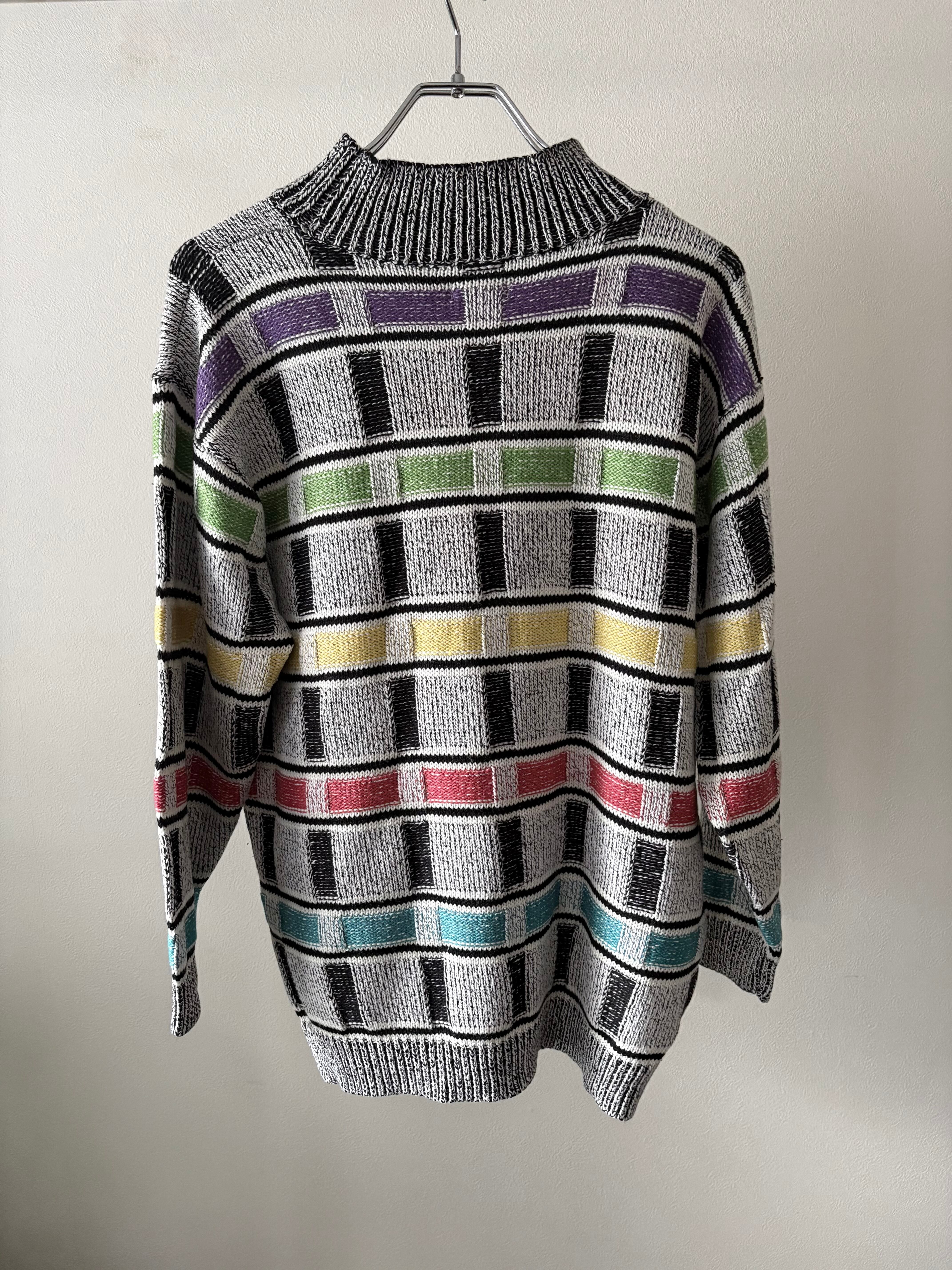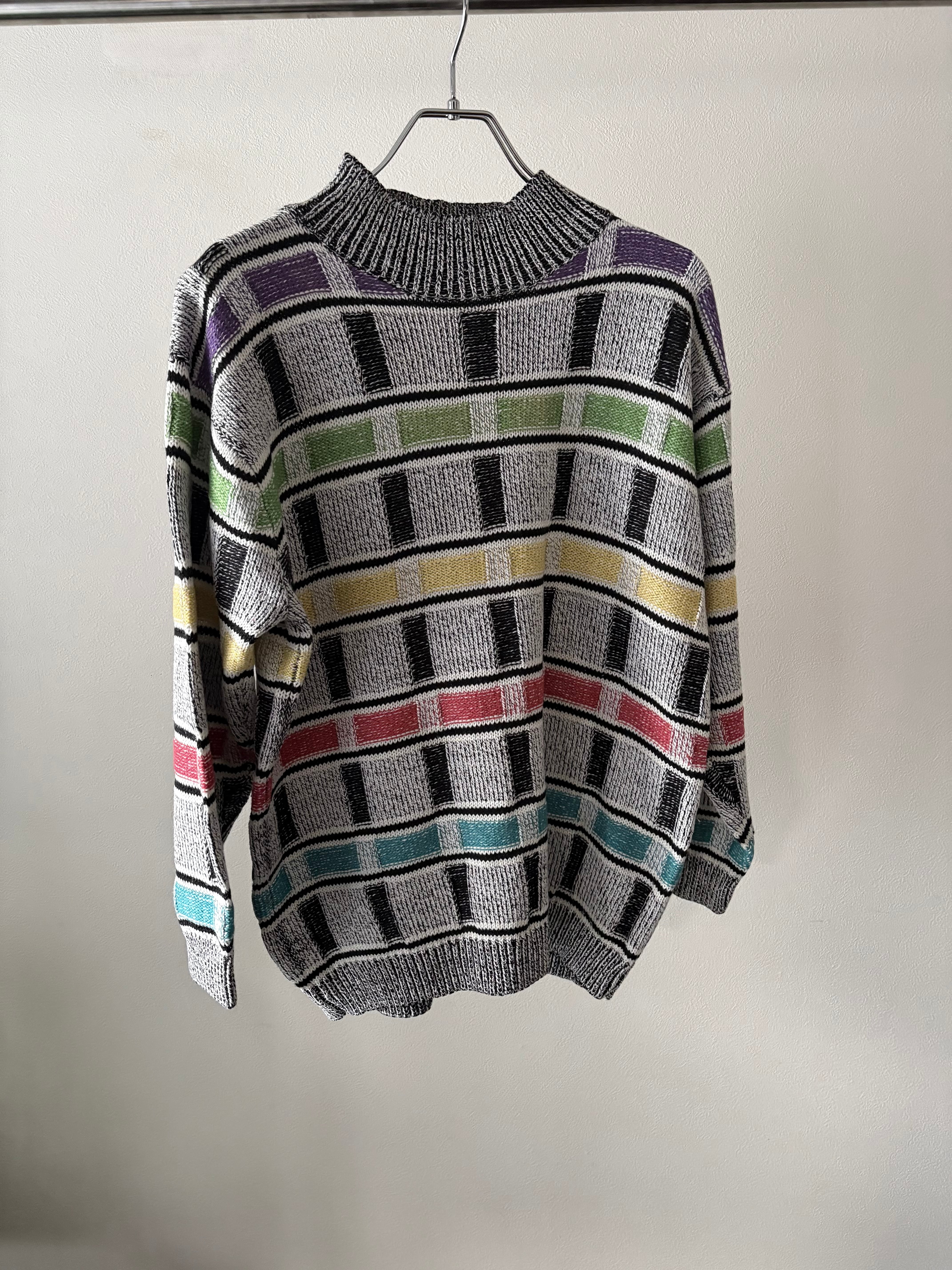 ポップなカラーが目を引くニット。シンプルなアイテムや無骨なアイテムと相性良さそうです。薄めの生地感なので春までしっかり着用可能です。