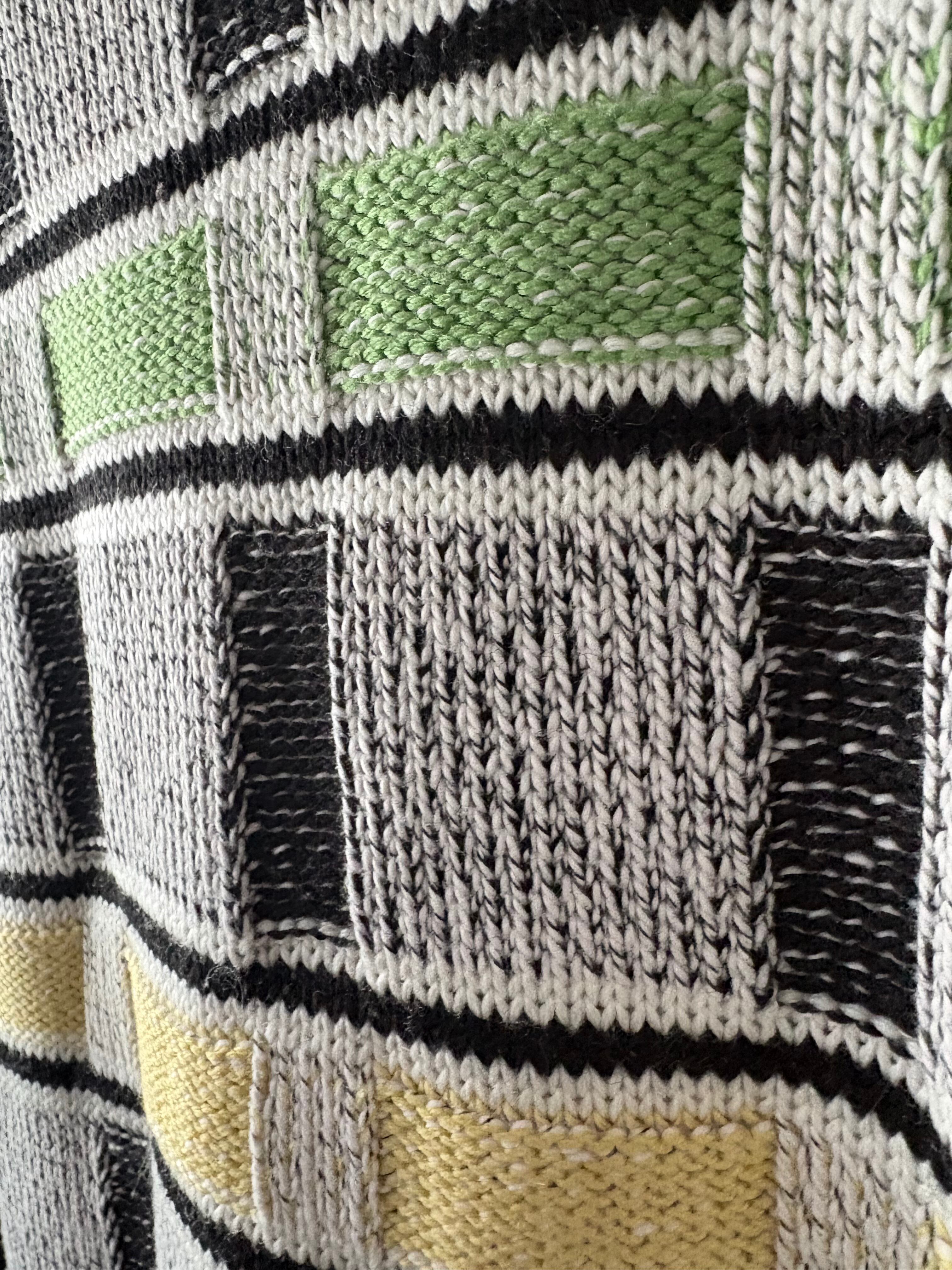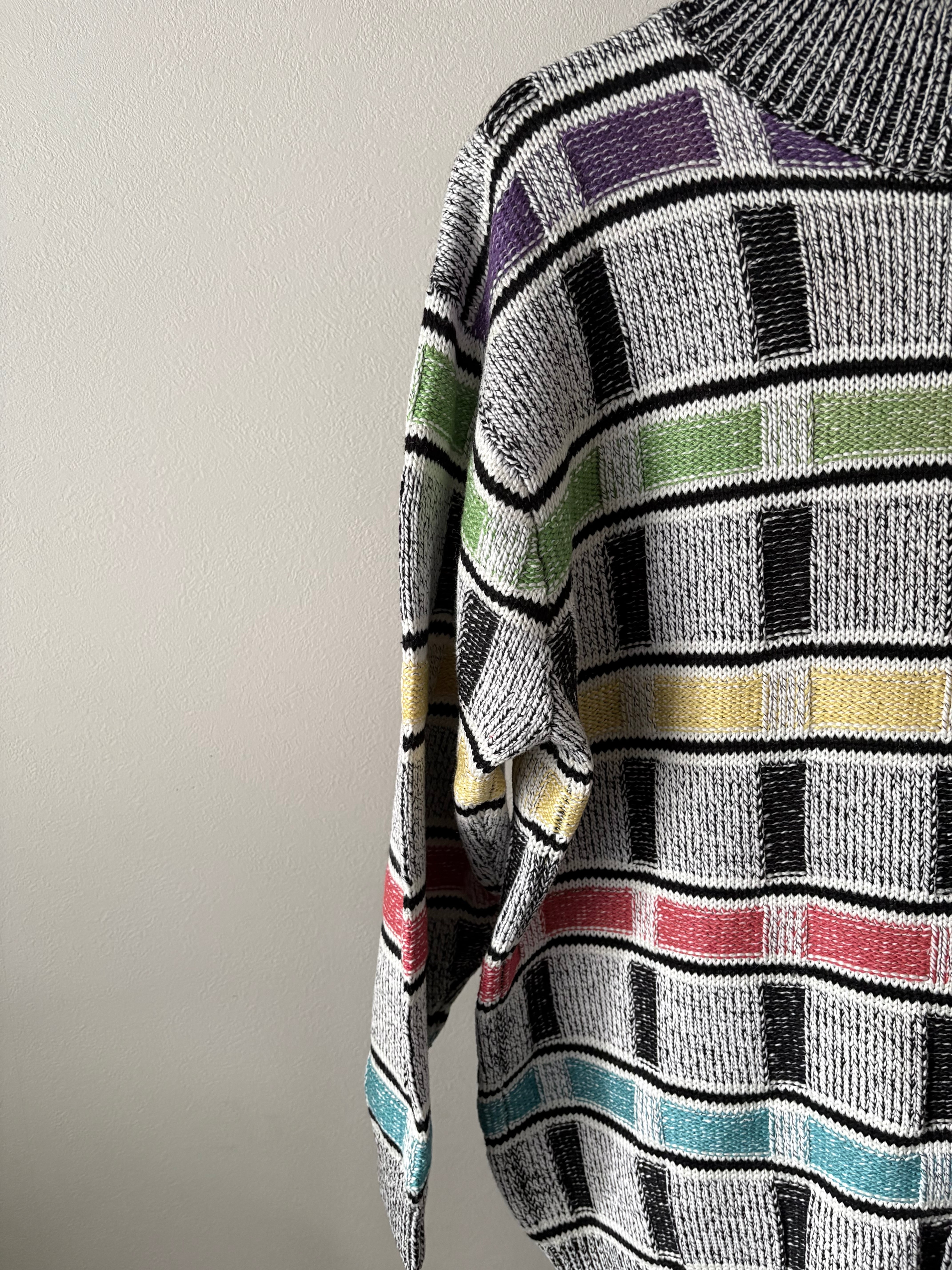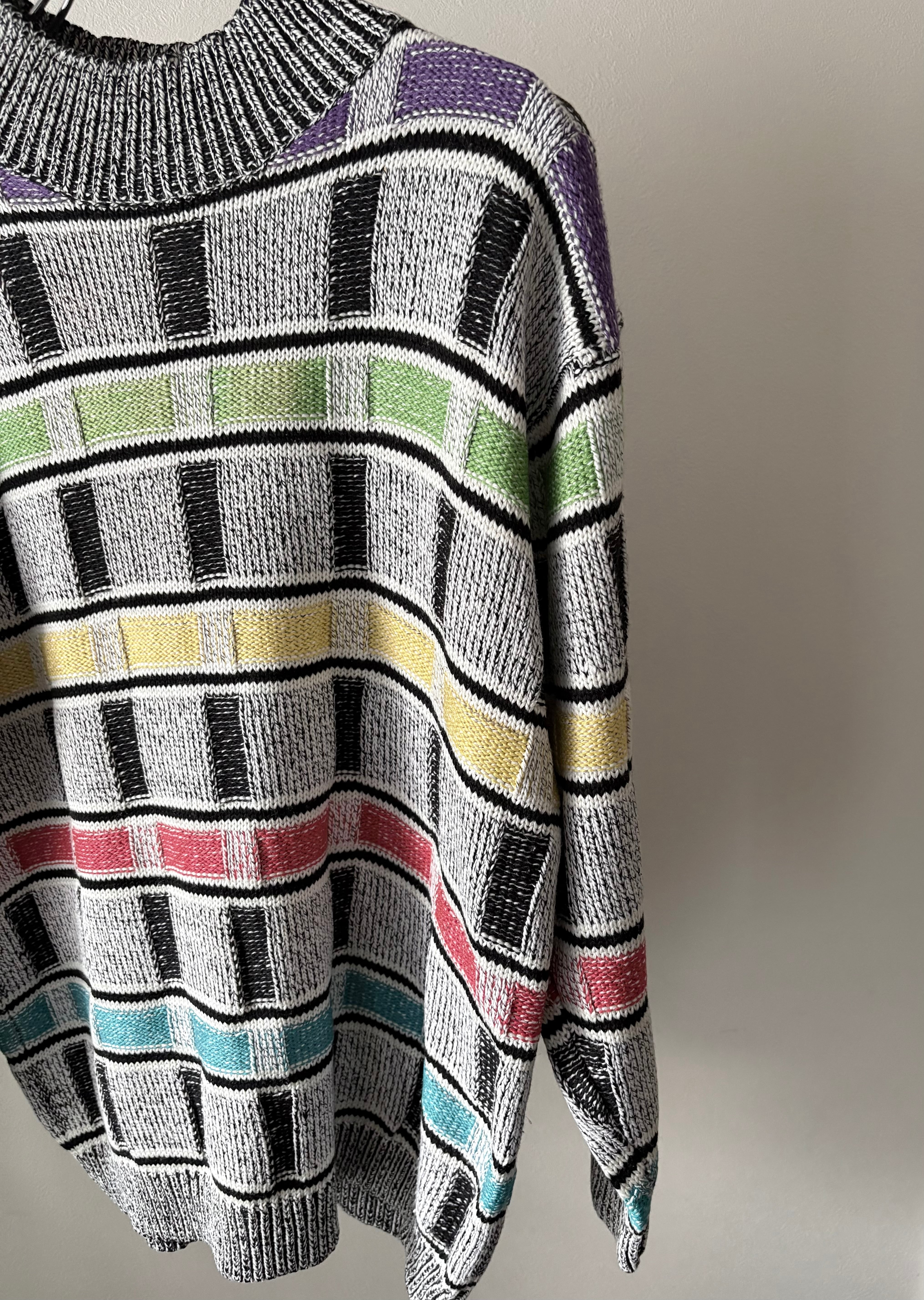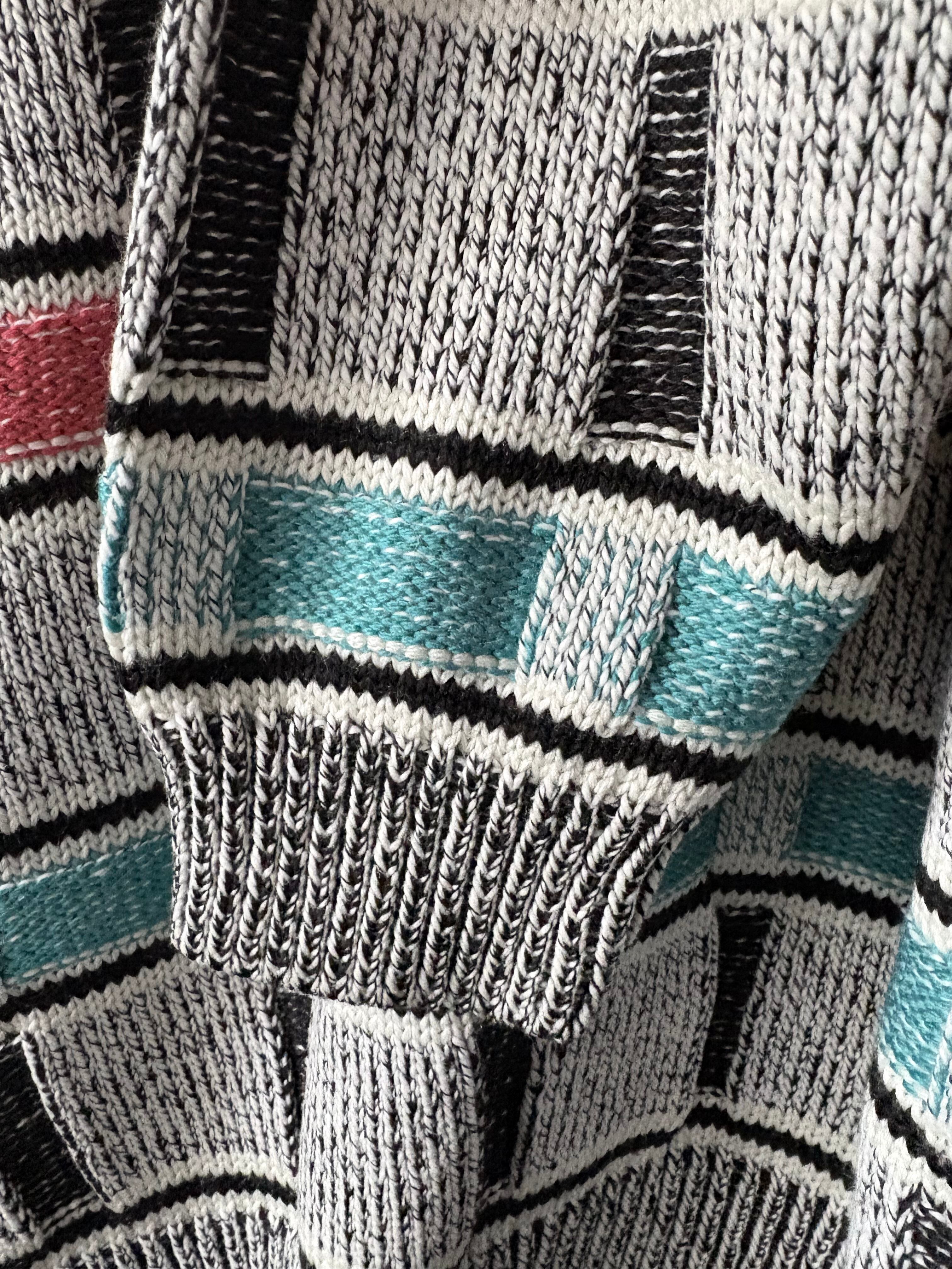 ポップなカラーが目を引くニット。シンプルなアイテムや無骨なアイテムと相性良さそうです。薄めの生地感なので春までしっかり着用可能です。