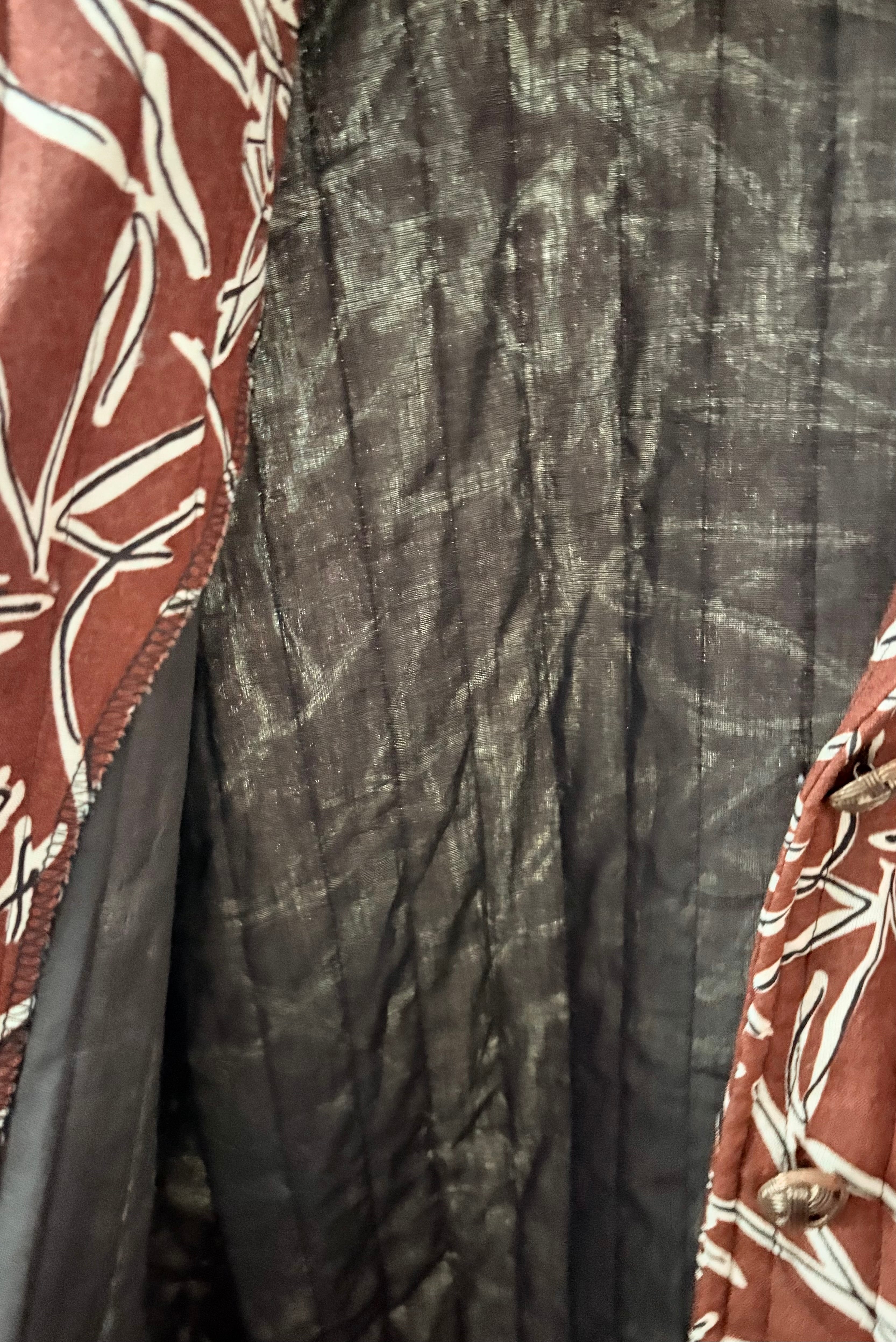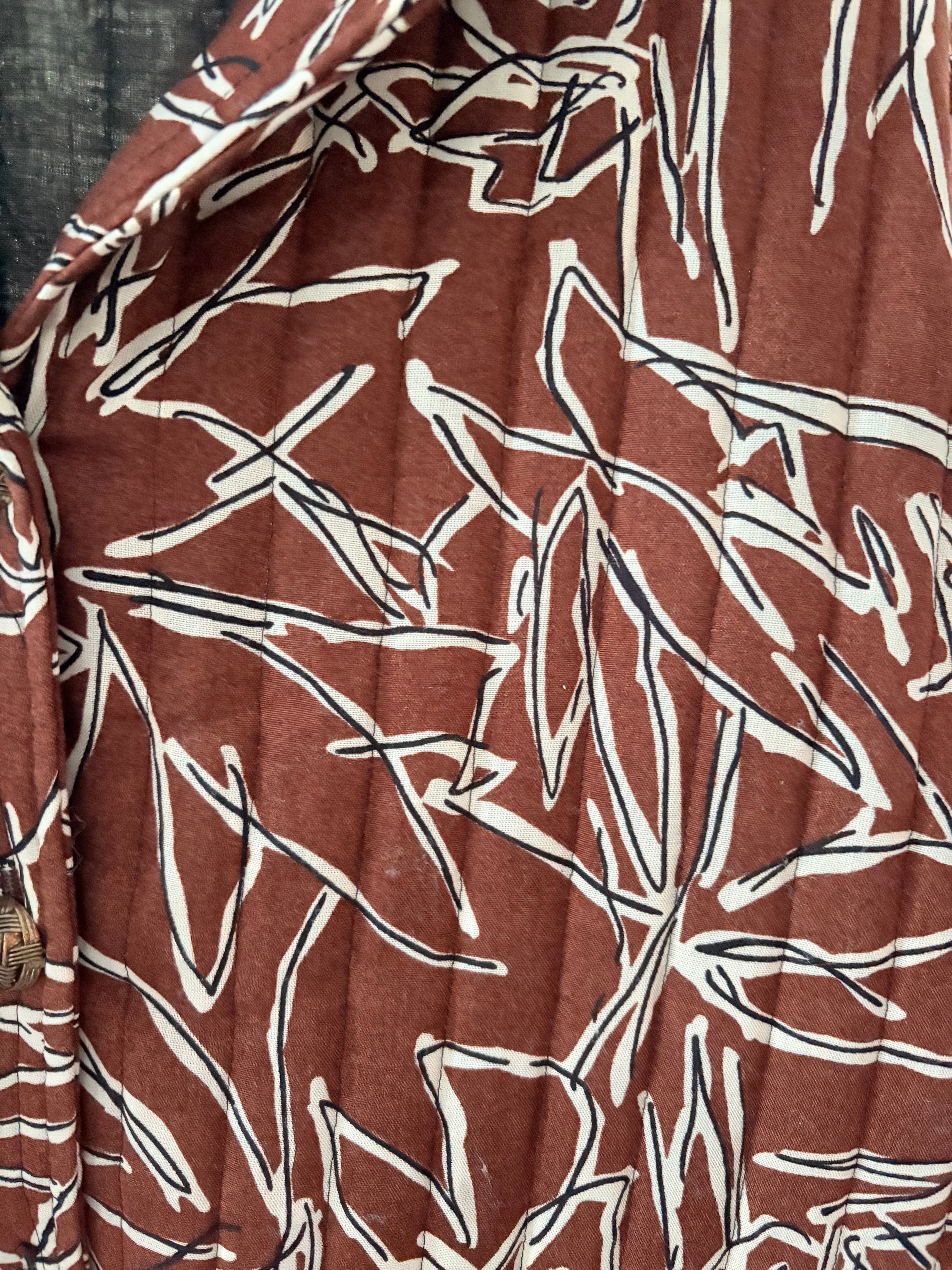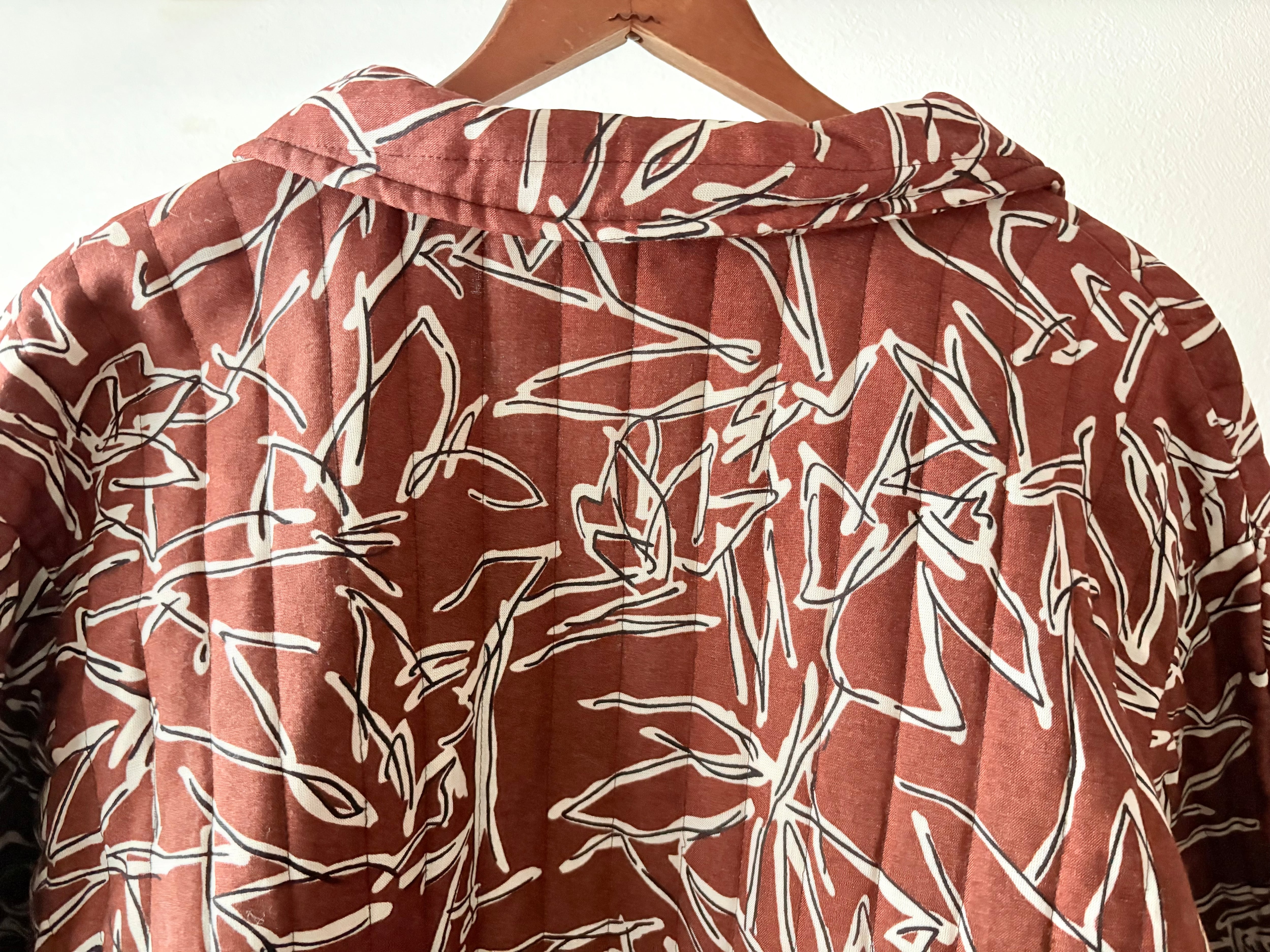 柄が凄く良いカバーオールタイプのジャケットです。キルティングのパターンも良く、ボタンまで細部にこだわりがあります。