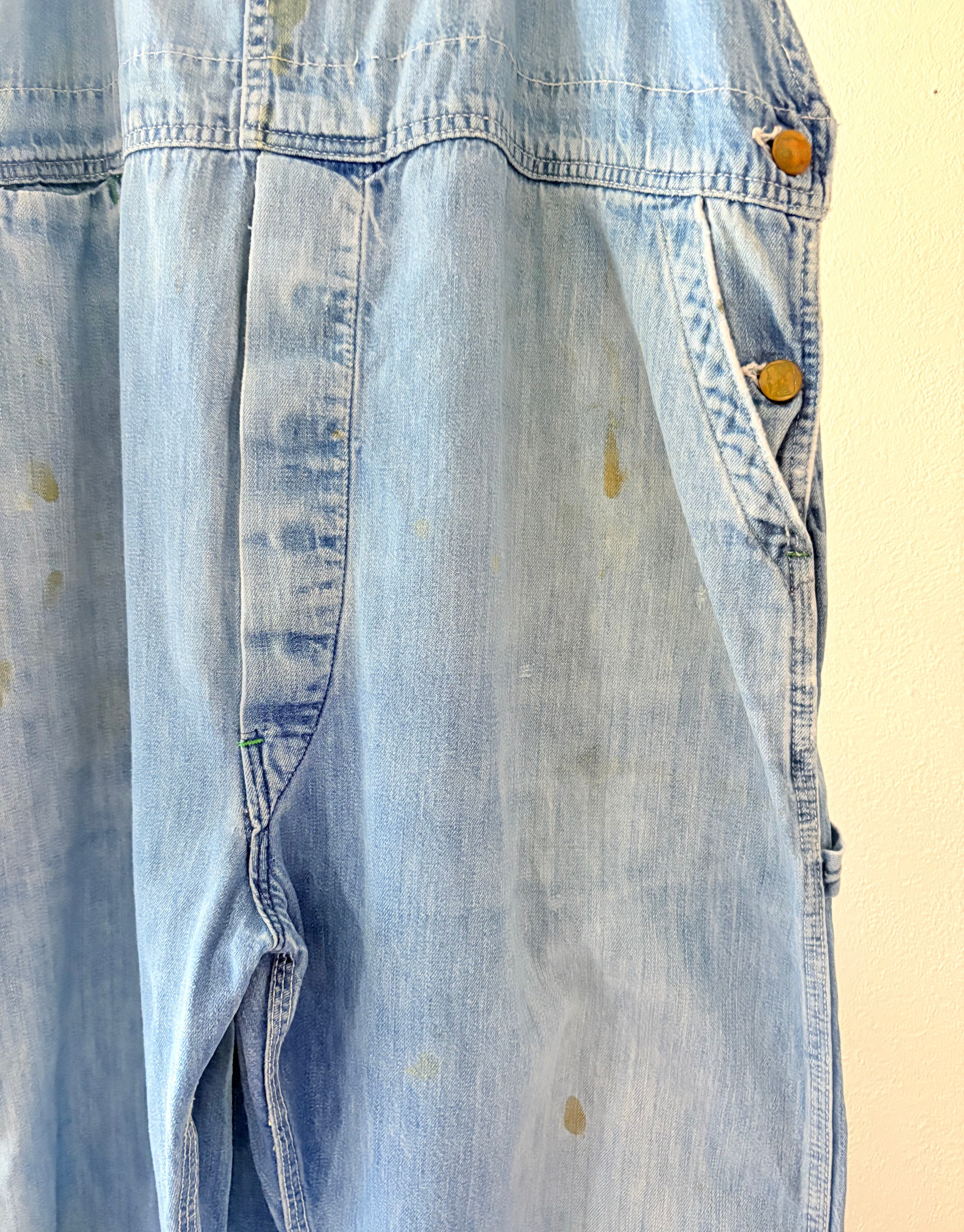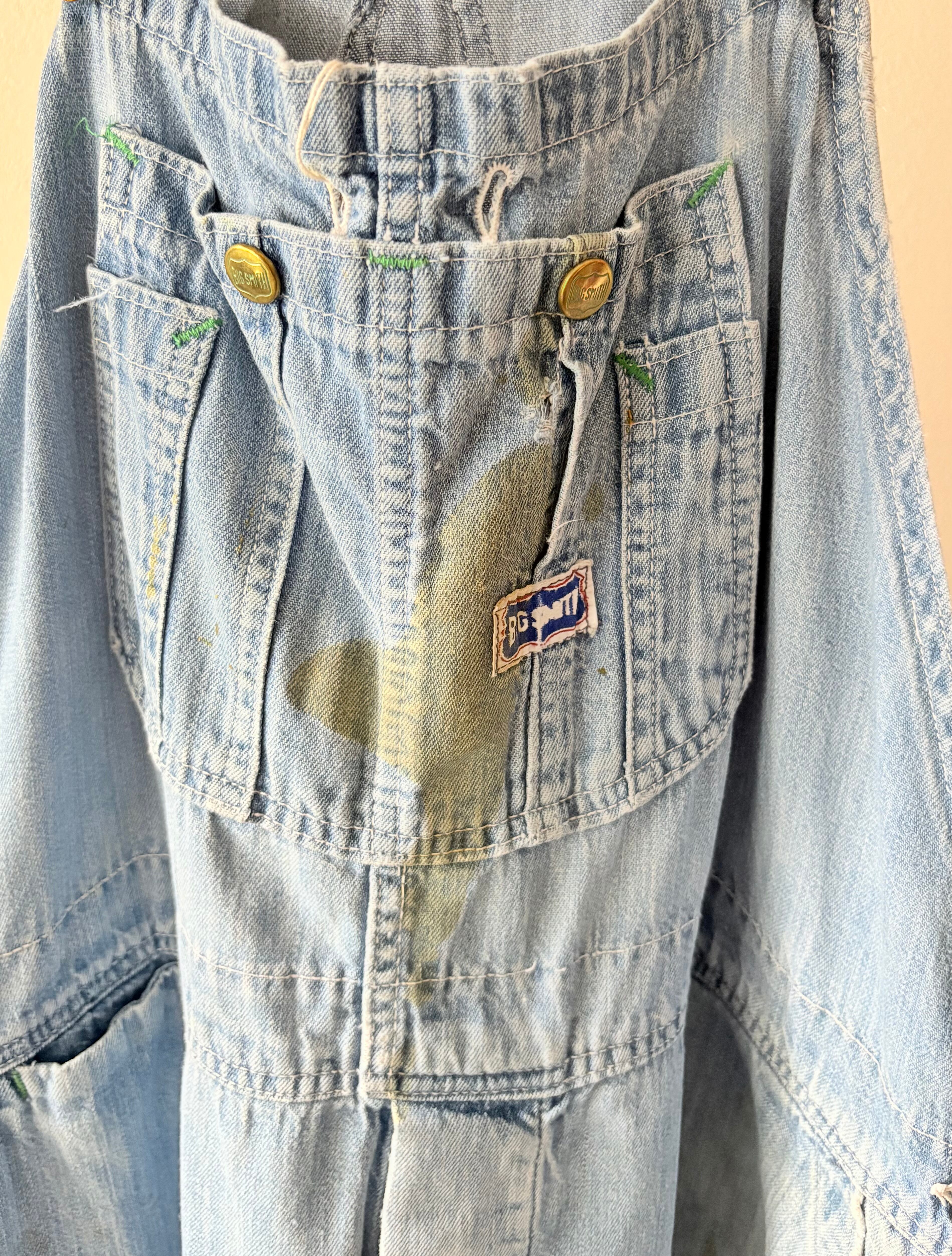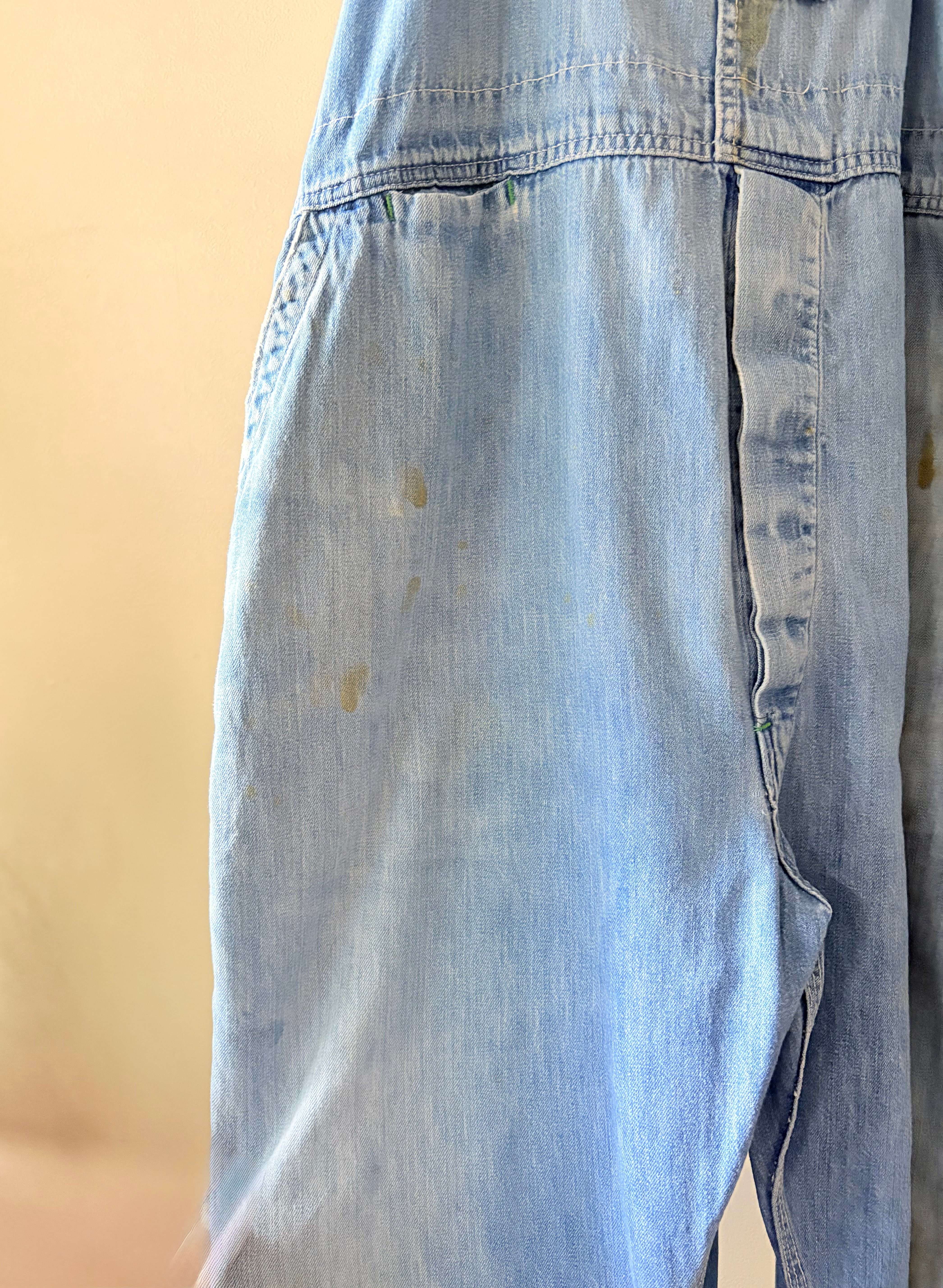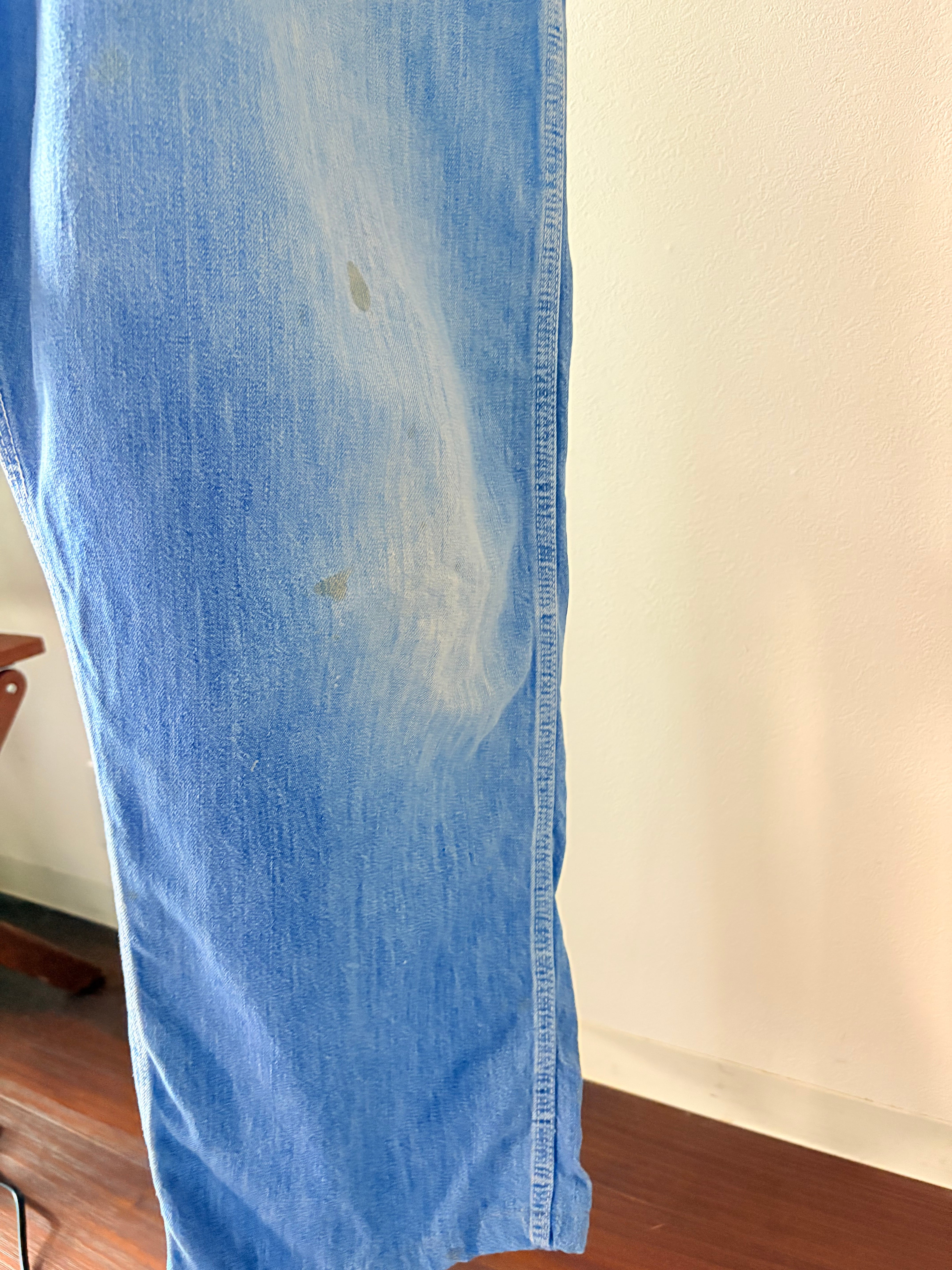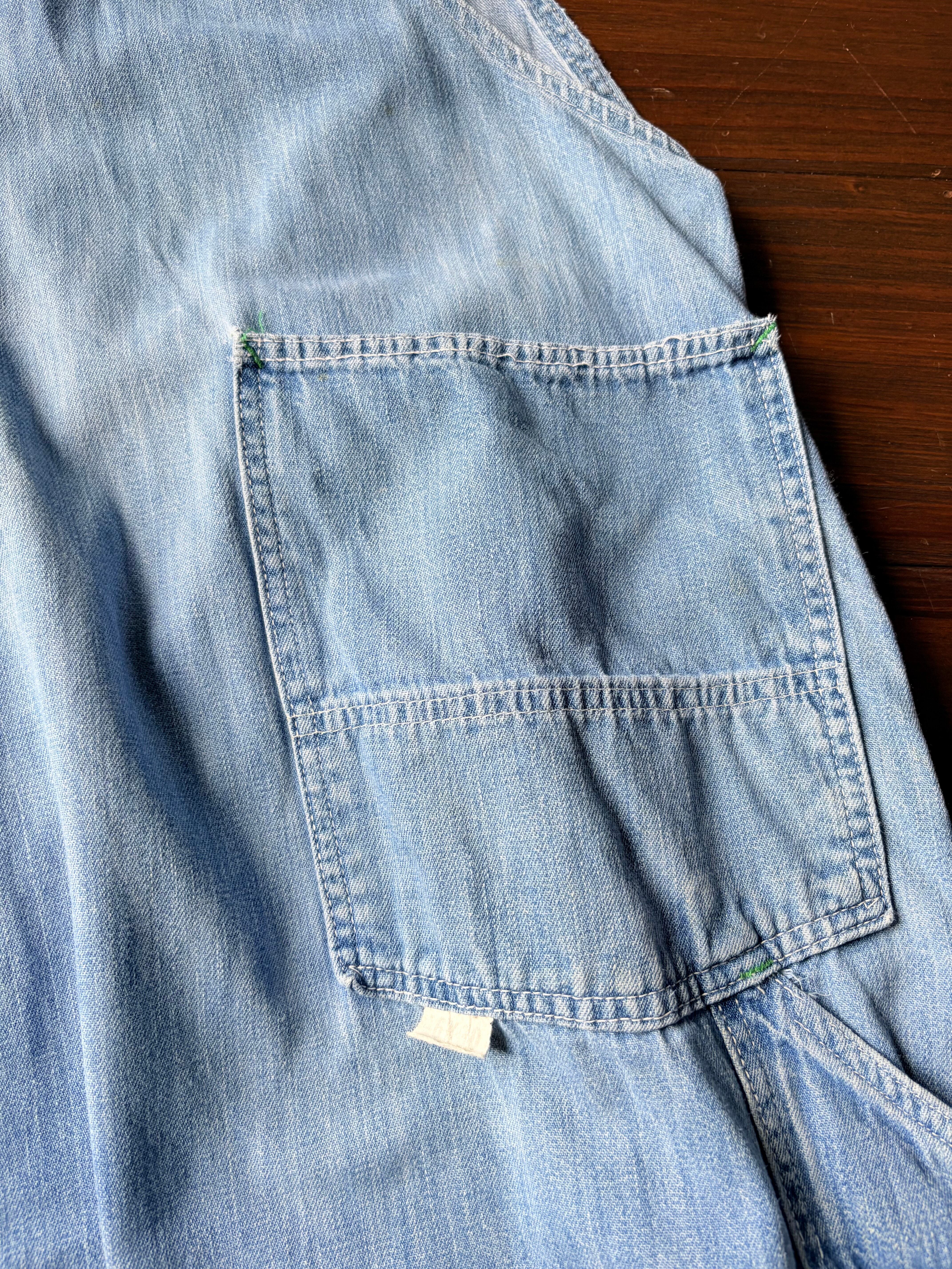 年代は浅いですが、縦落ち具合が素晴らしいです。薄い色のオーバーオールをお探しでサイズの合う方は是非!