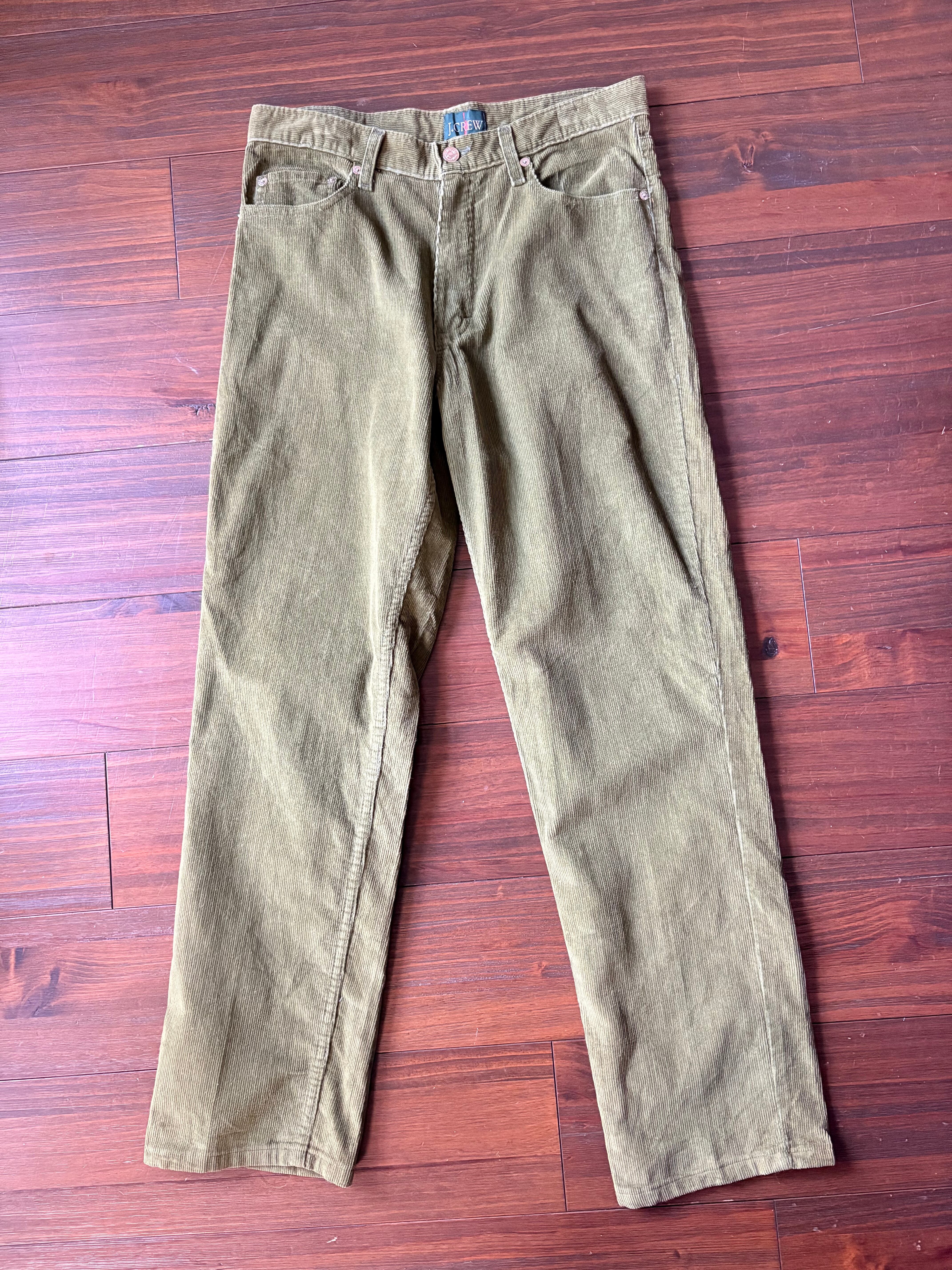 オリーブベースですが、抹茶の様な渋みも少し感じる良い色味のコーデュロイパンツ。