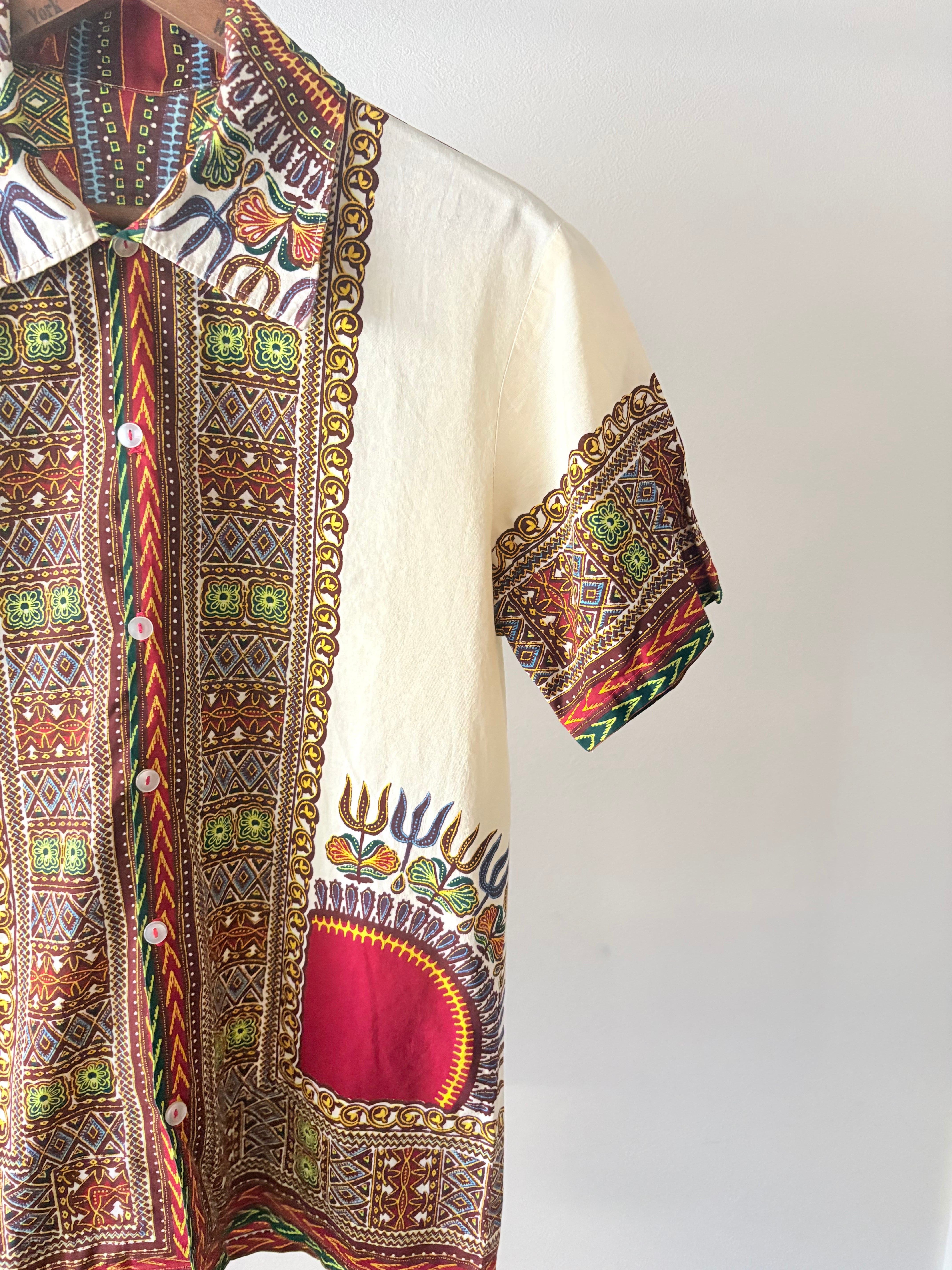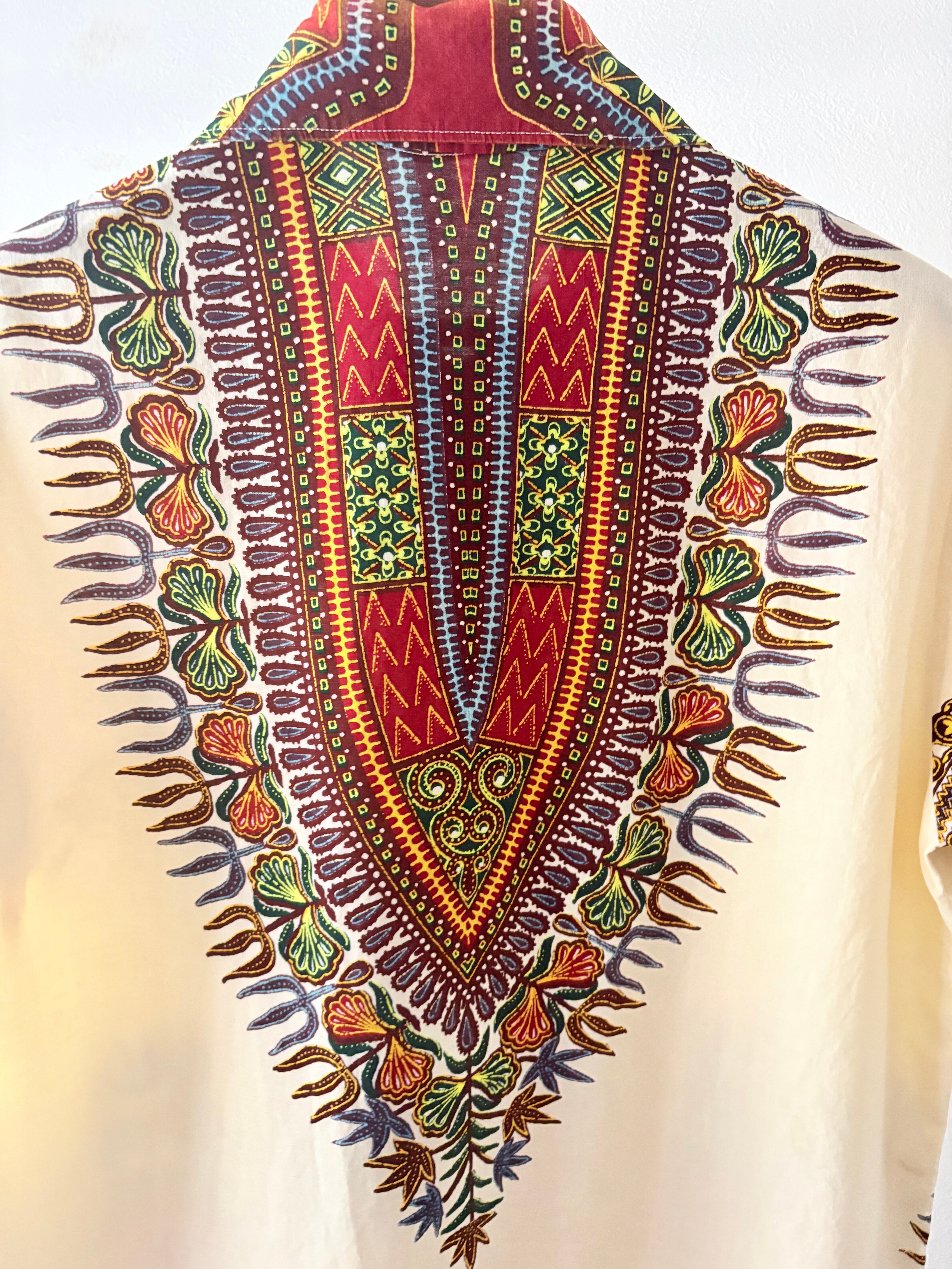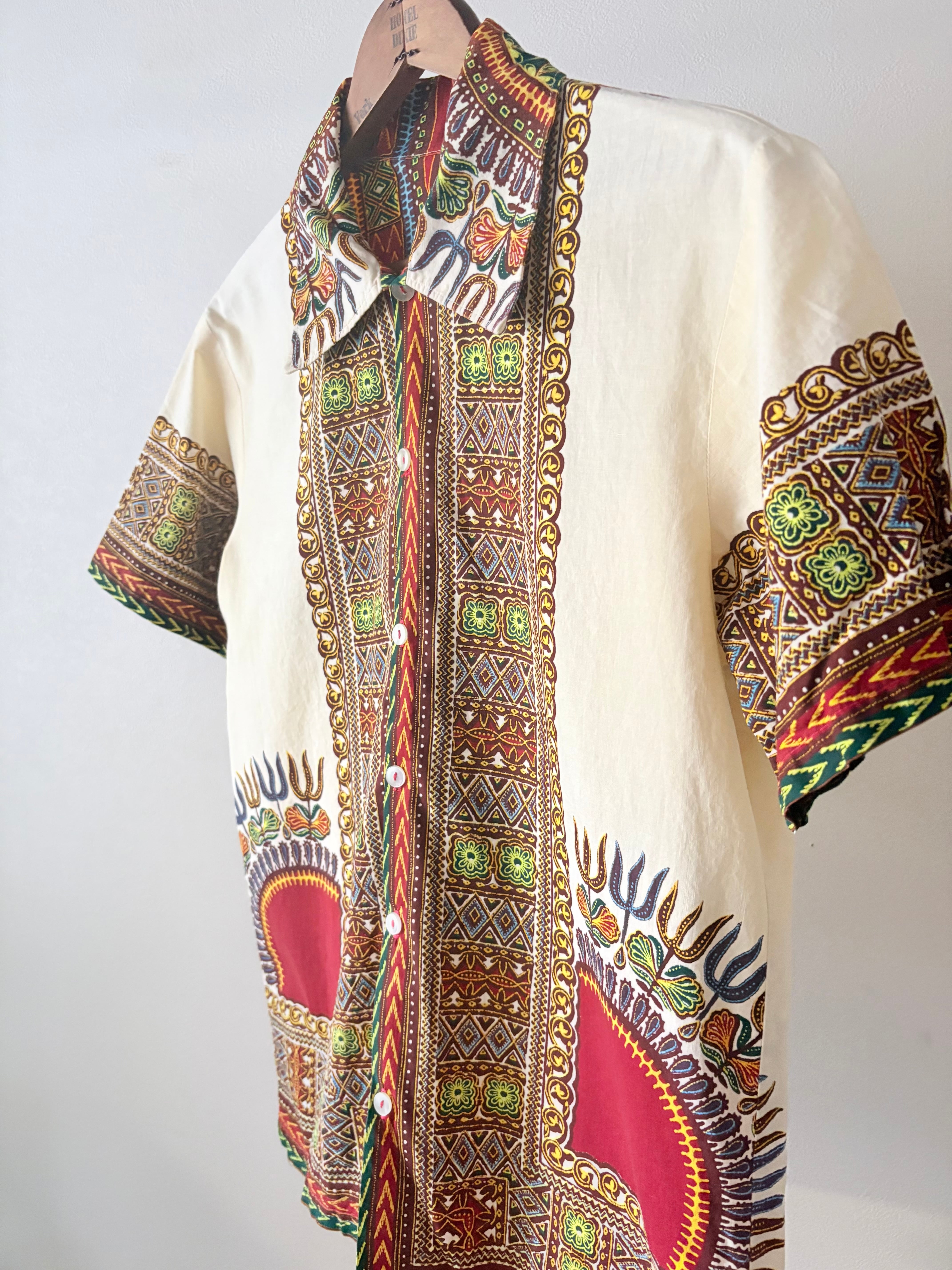 大胆に入るダシキプリント、当時らしいカルチャーの匂いが濃い一着です。