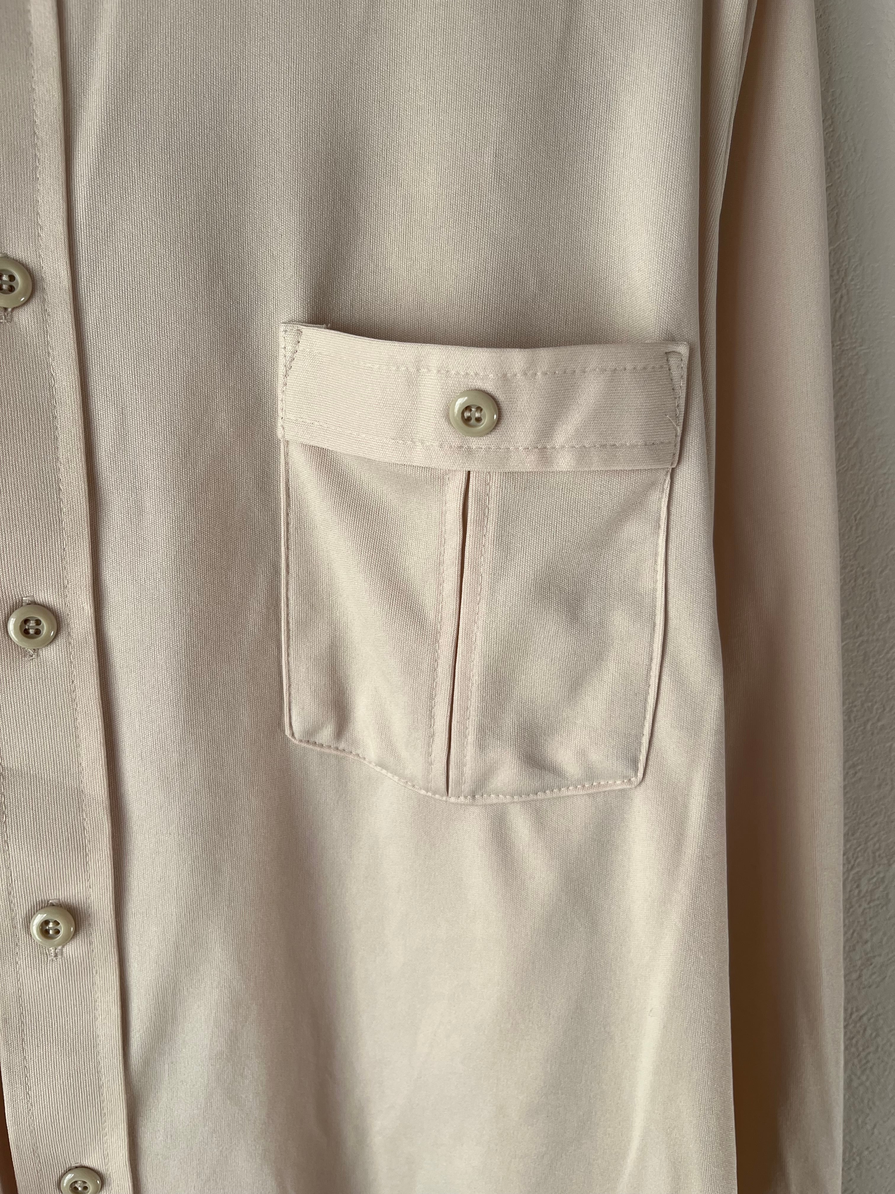 無地で色目も良く、ポリエステルなのでサラッと羽織れる1枚。