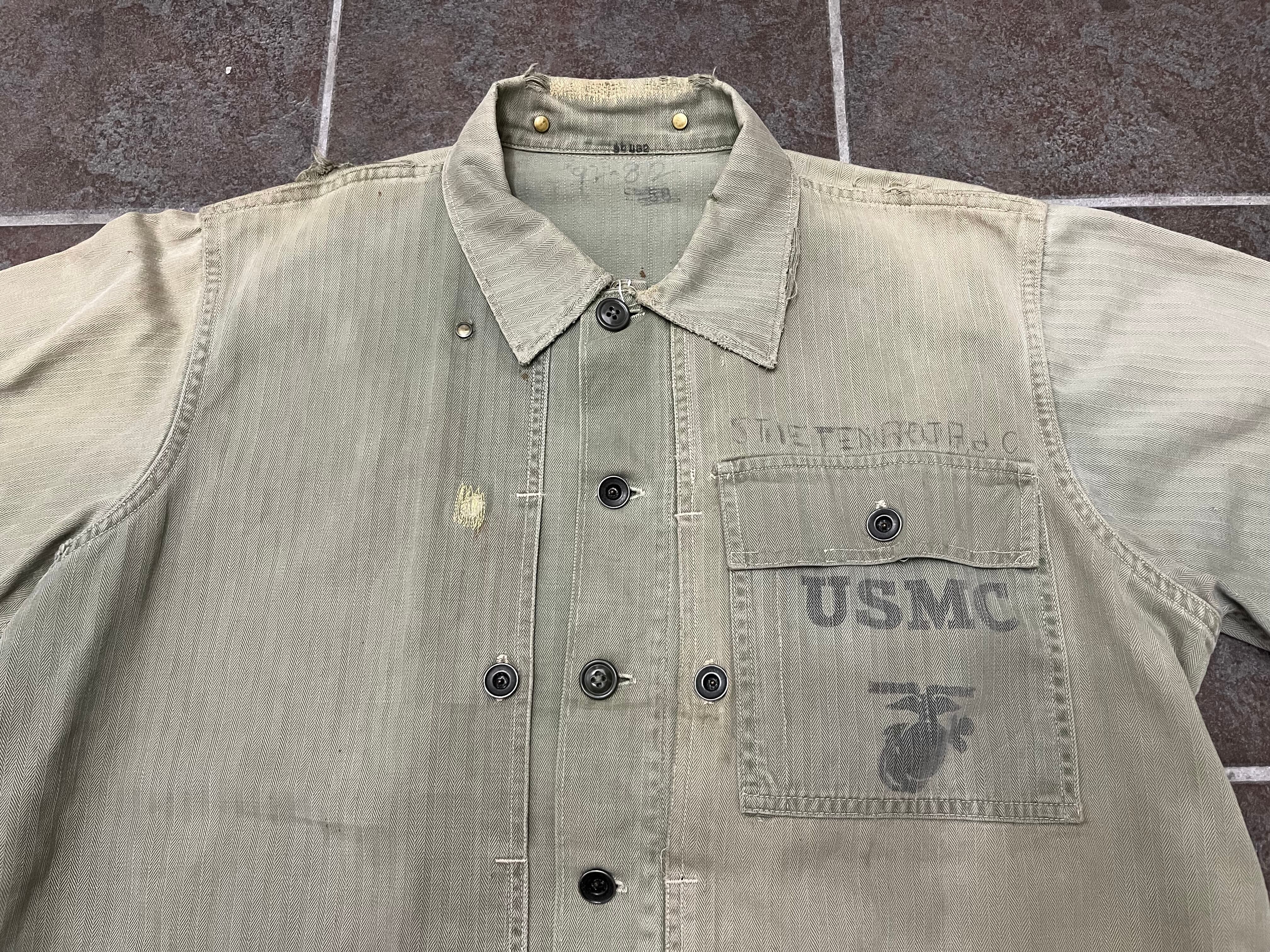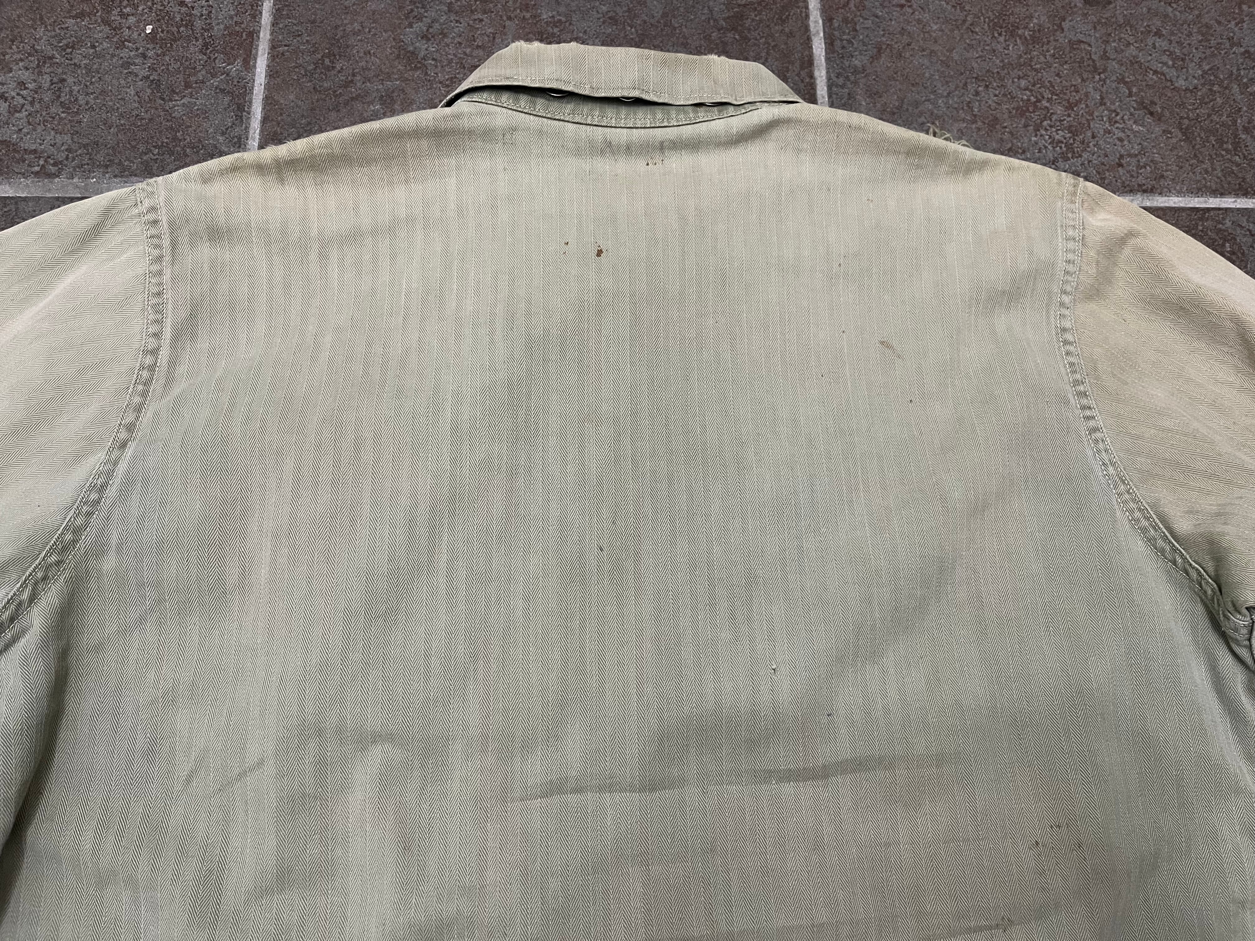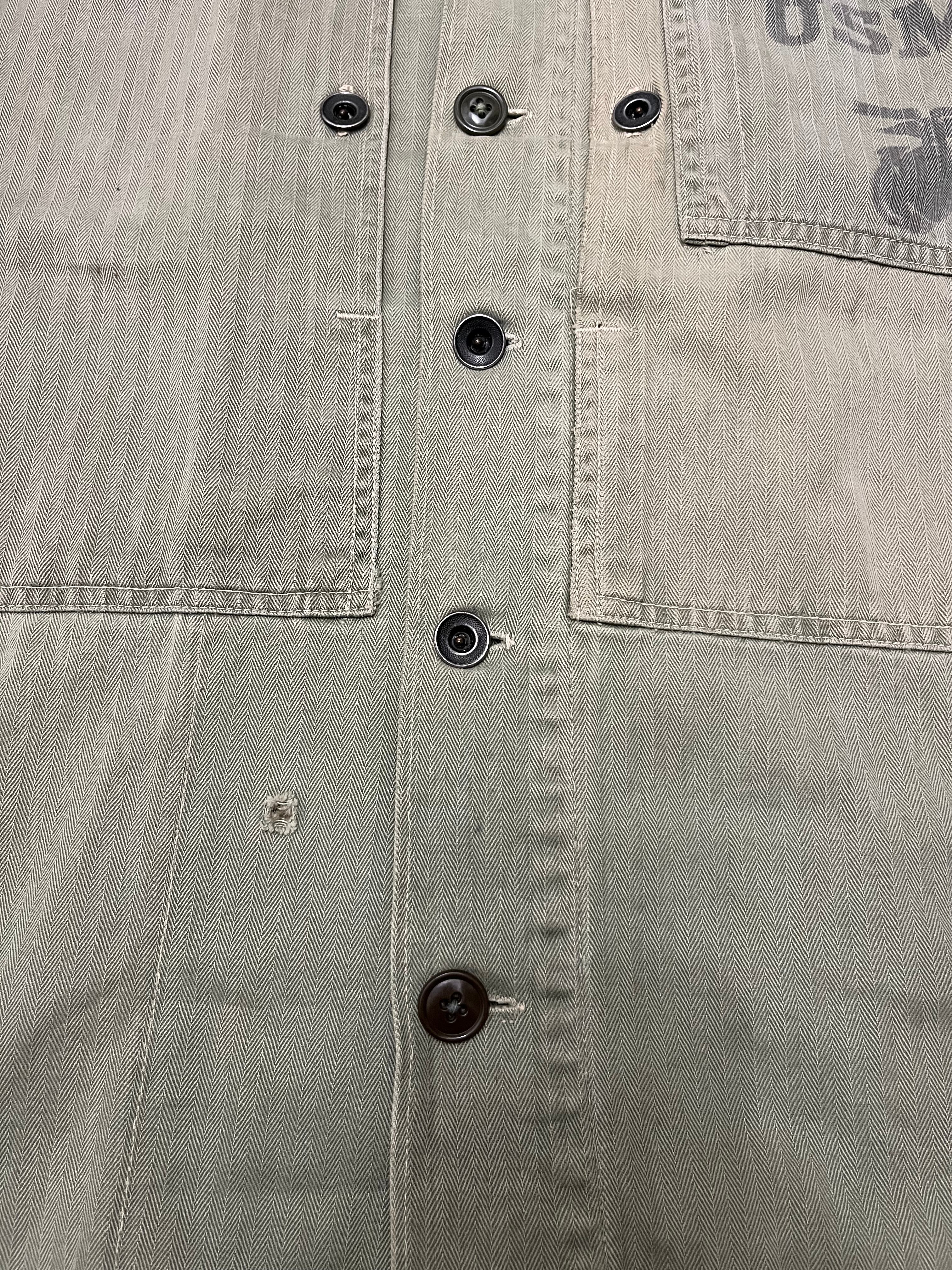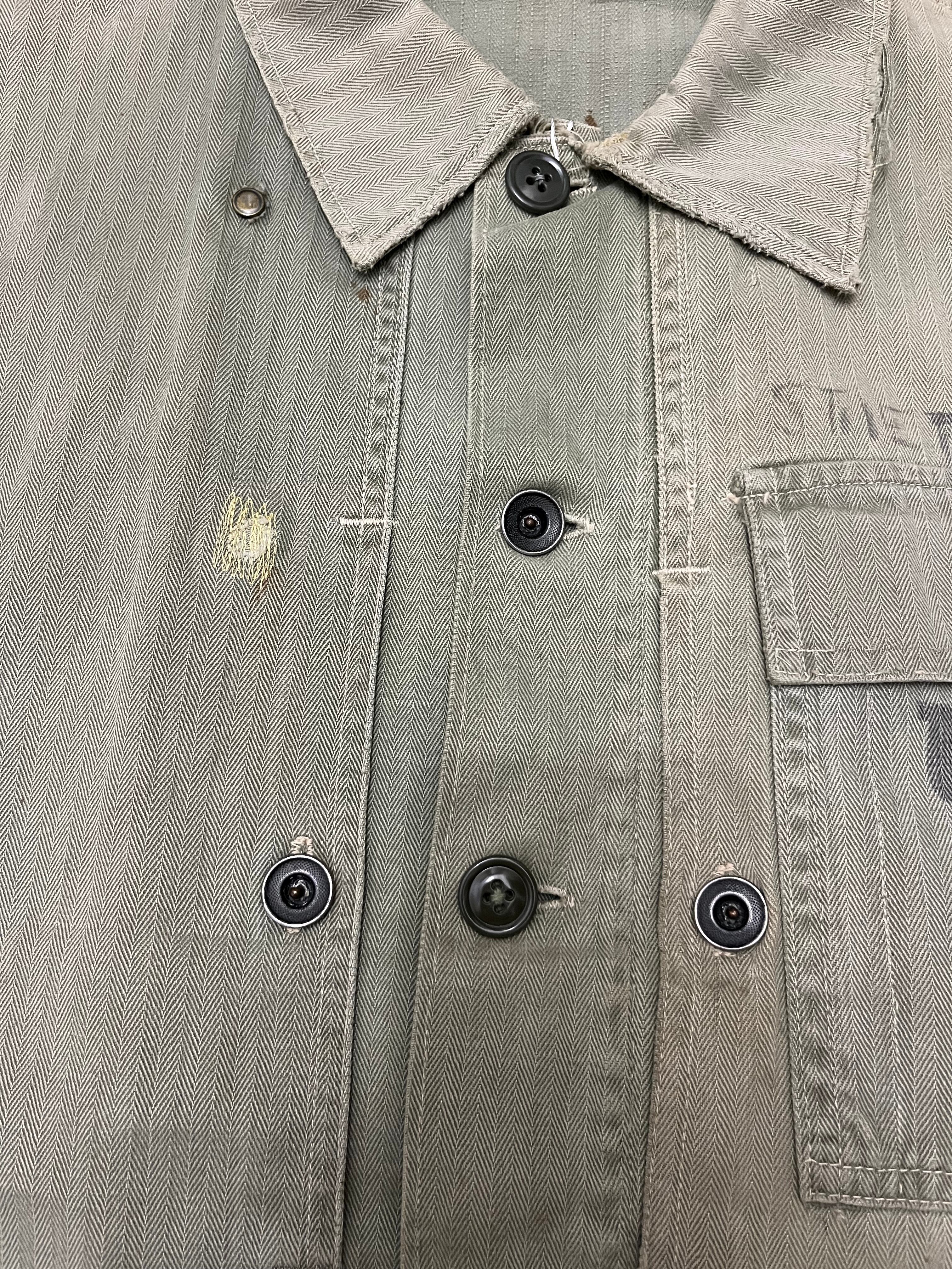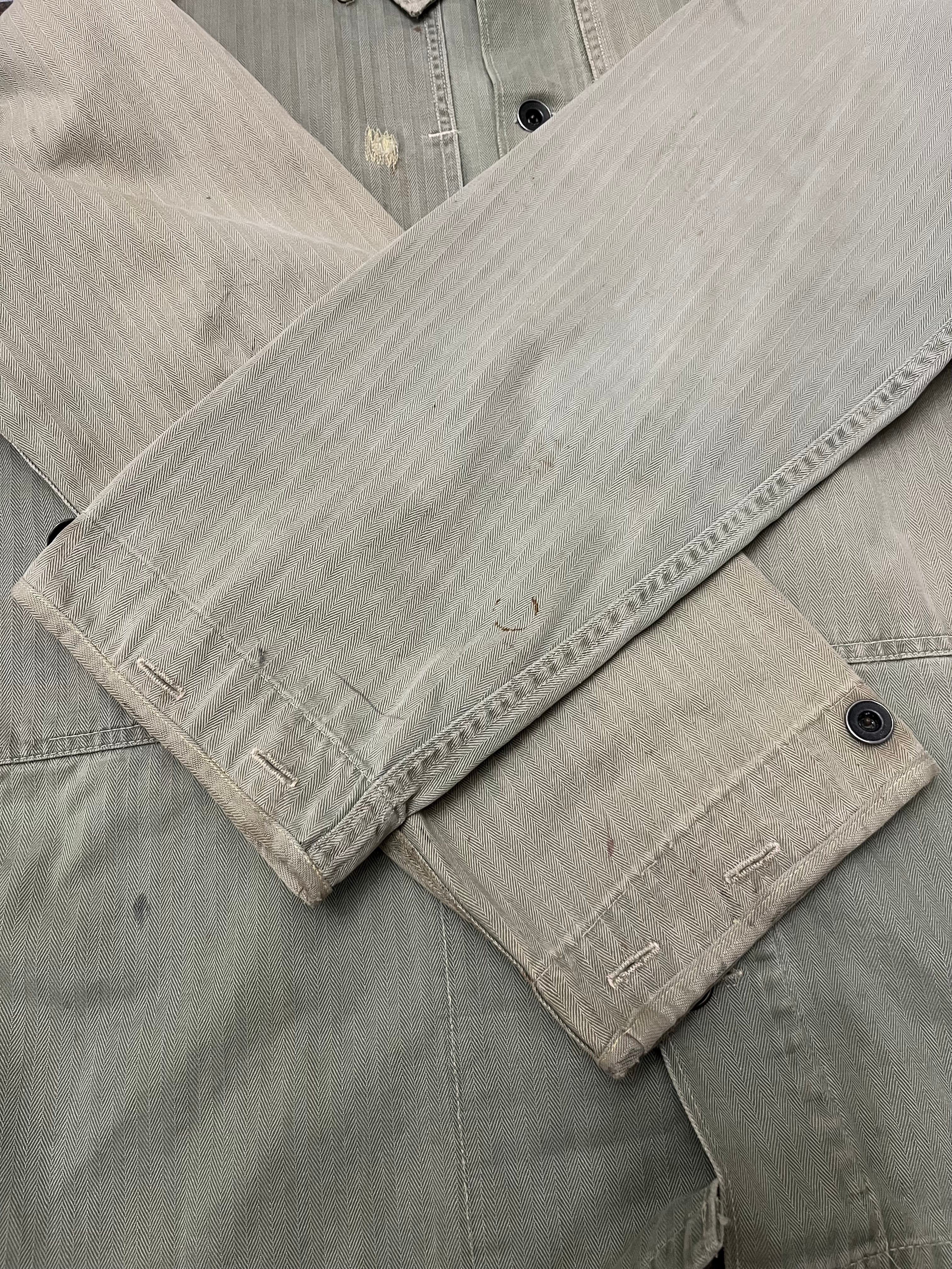 ヴィンテージのミリタリーHBTジャケットの中では説明不要なくらい有名でカッコいいジャケットですよね。ヘリンボーンツイルの雰囲気は抜群。