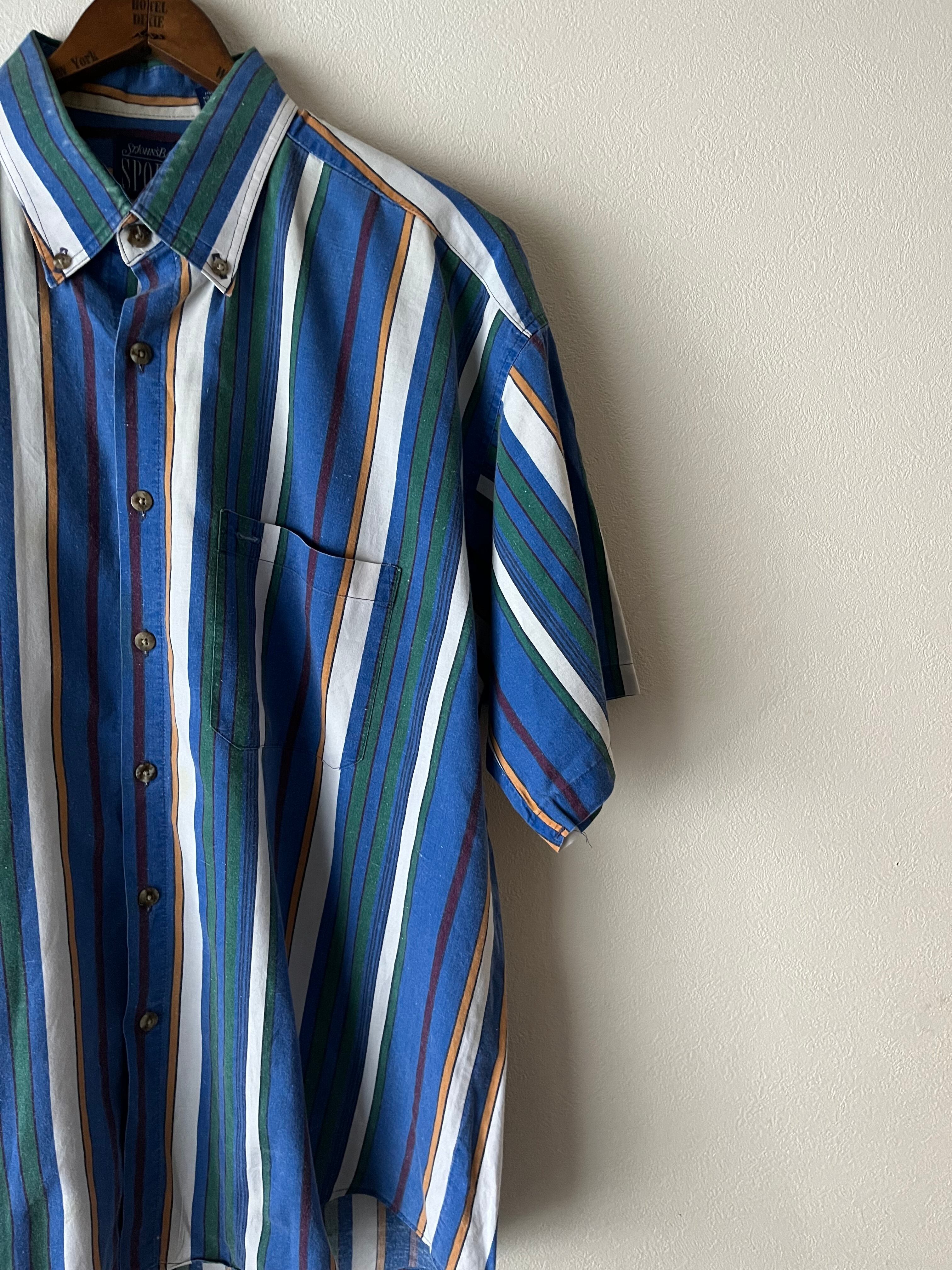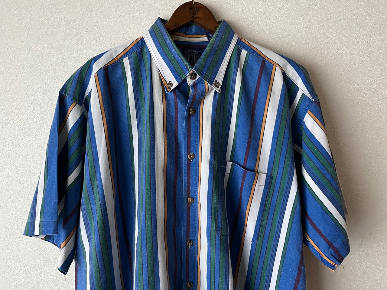 配色の良いストライプ柄。全体的に少しフェードしているので、色味の主張がマイルドになっています。身幅が広いので一枚で着ても上に羽織っても合わせやすいシルエットです。