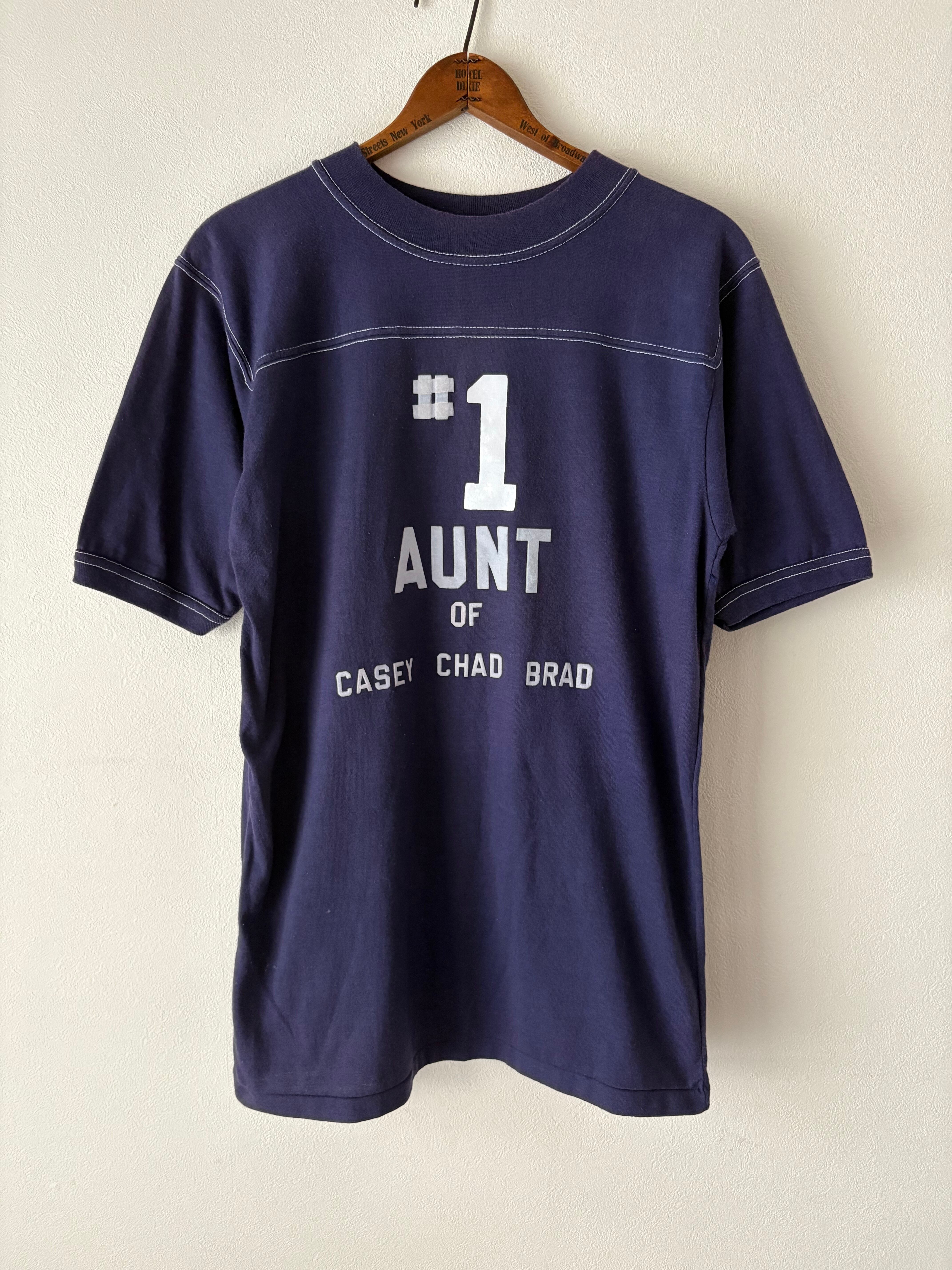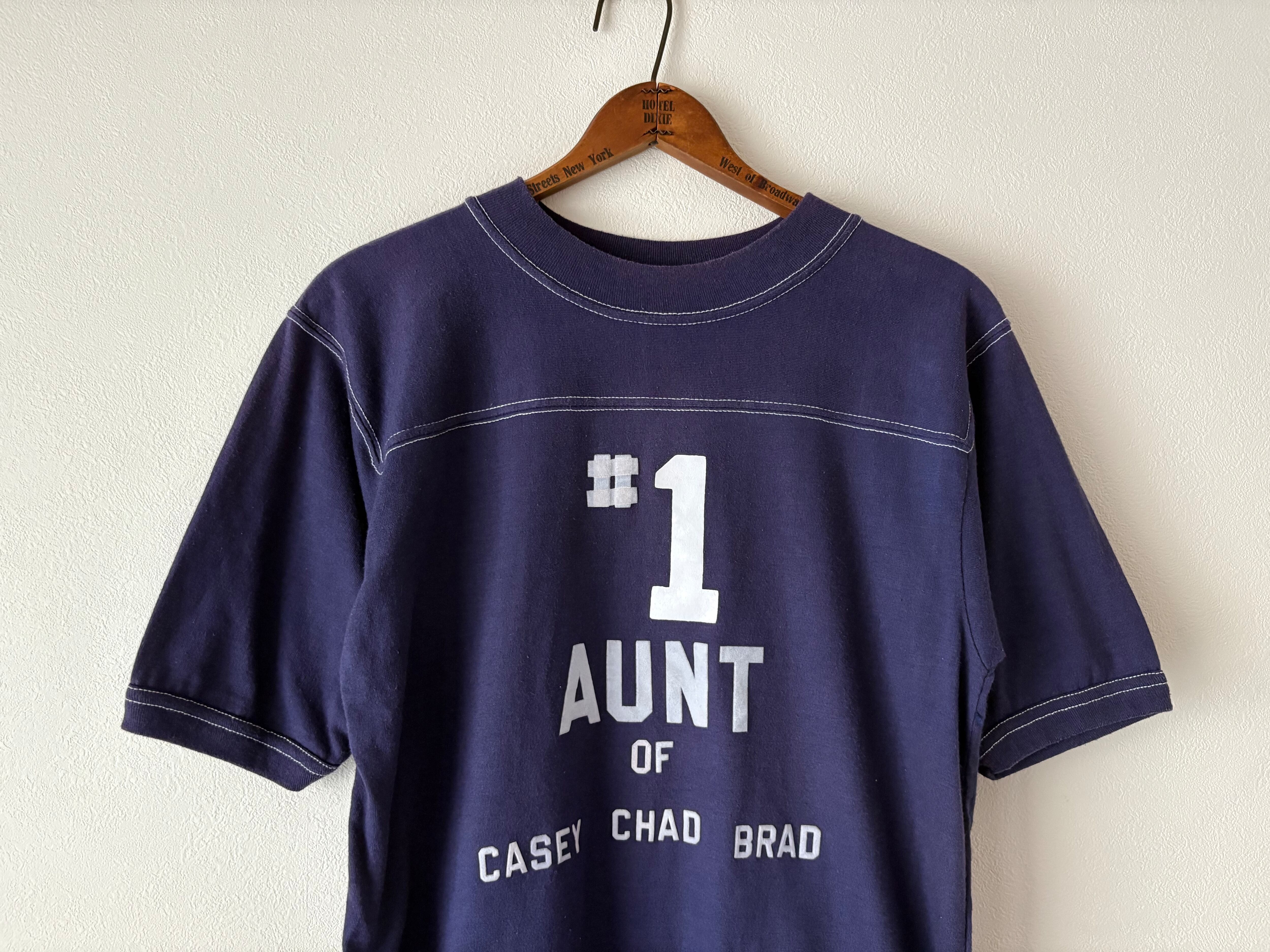 80s DOWNER WEAR 4段プリント フットボールTシャツ